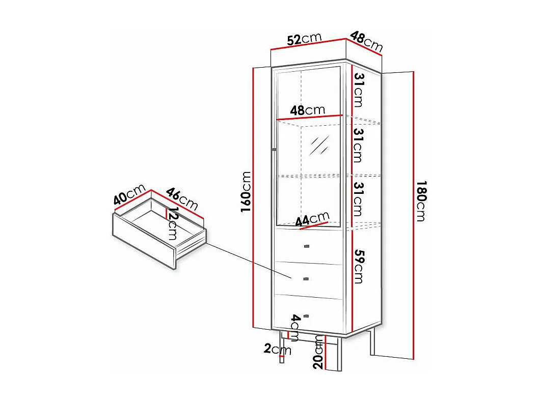Étagère Comfivo 416, Avec des portes|Fermé|Avec tiroirs, Stratifié|Verre, 180x52x48cm