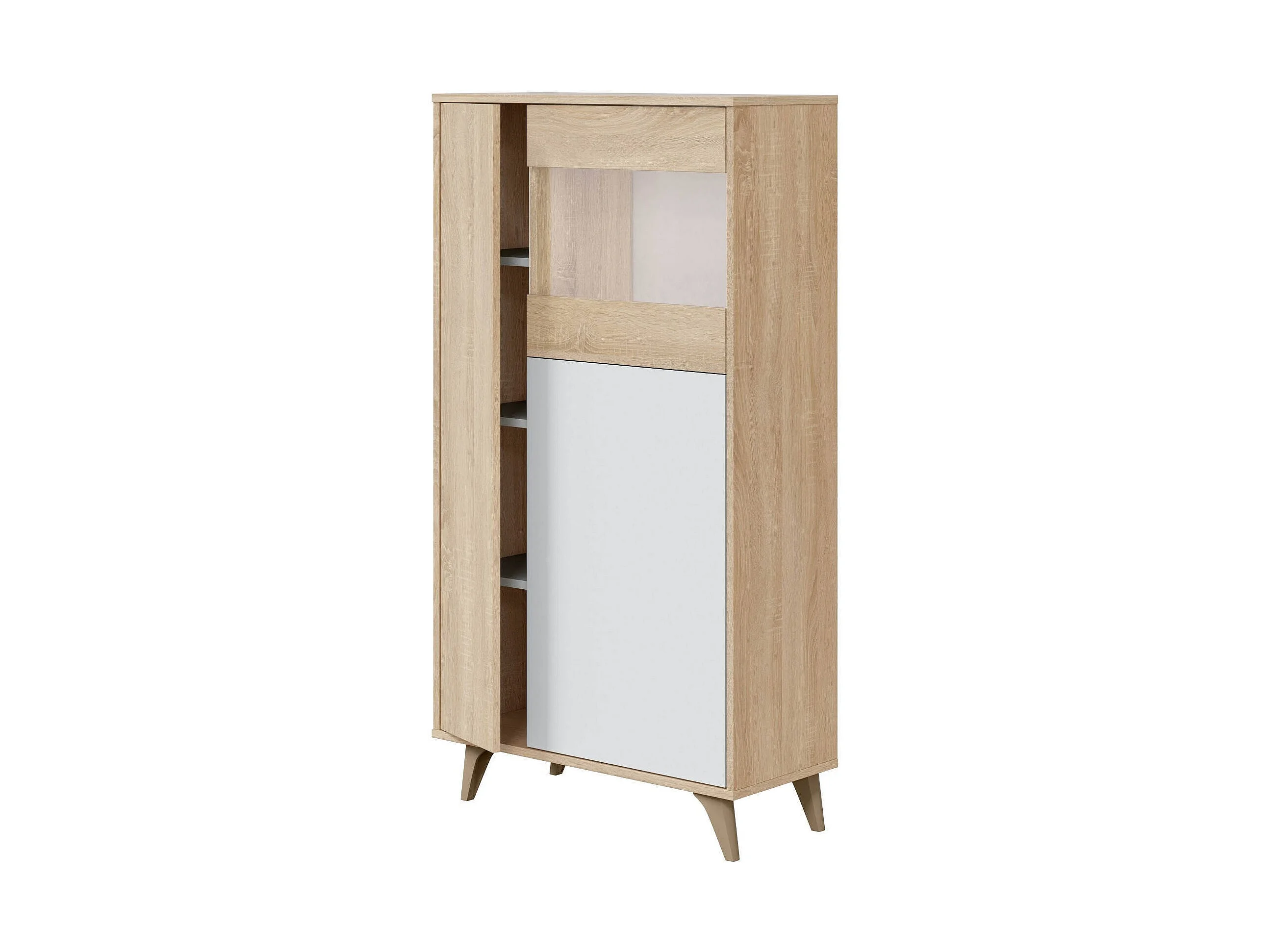 Vitrine Daceved, Vitrine moderne avec 3 portes, Buffet pour salon ou salon, Buffet haut avec étagères, 77x33h142 cm, Chêne et Blanc