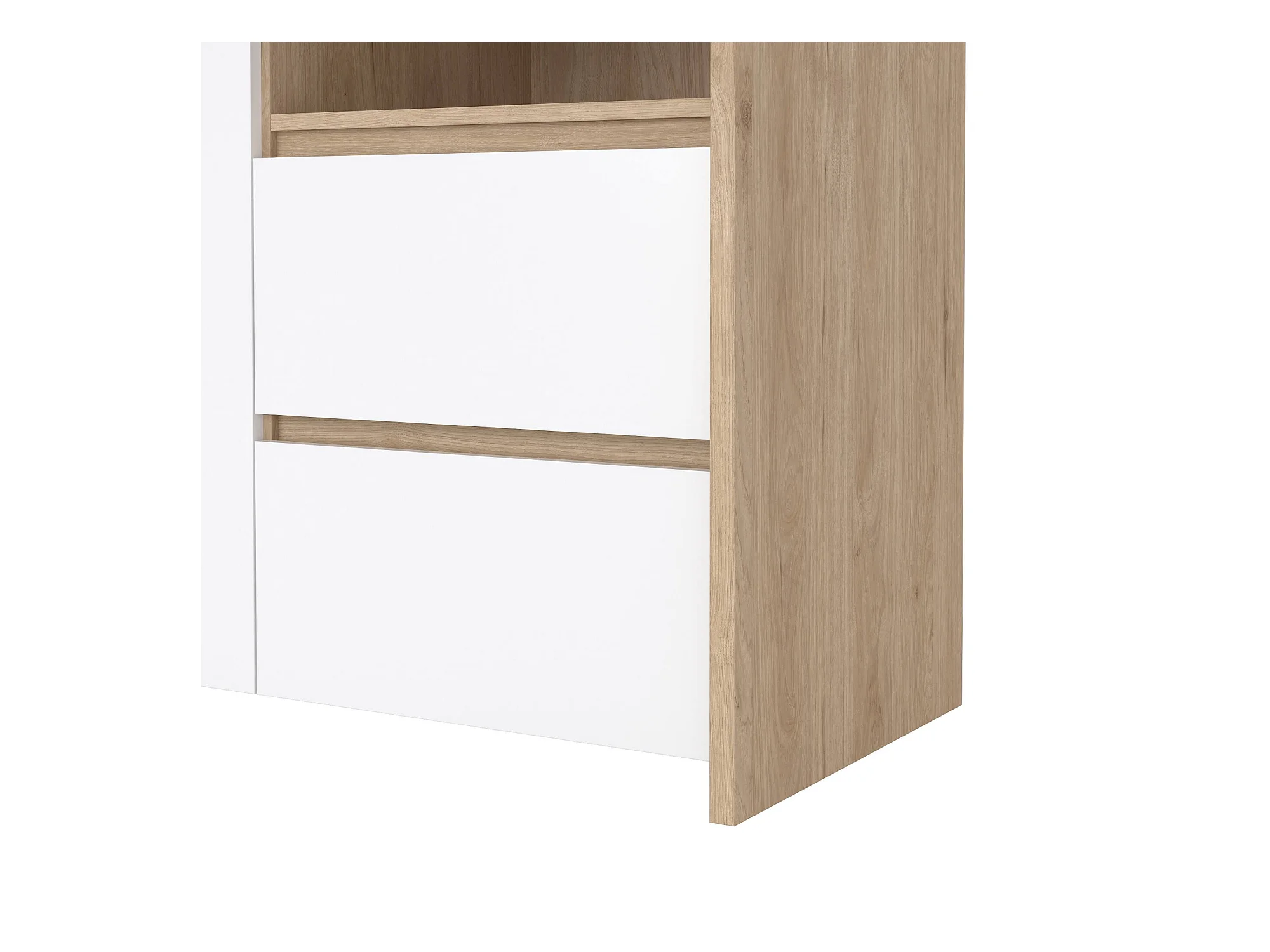 Vitrine Dvecin, Buffet d'exposition, Vitrine polyvalente, Buffet de salon, 100x48 h170 cm, Chêne clair et Blanc