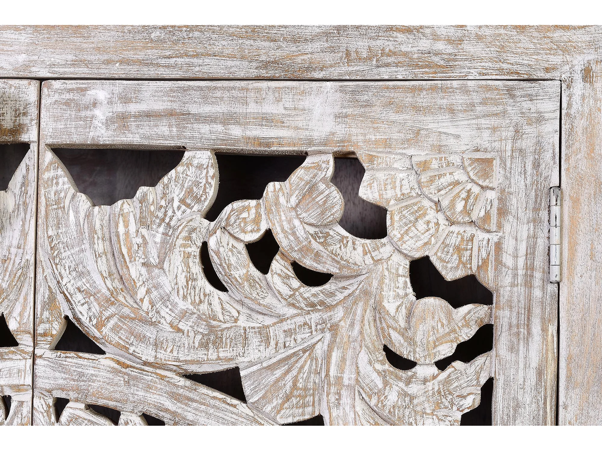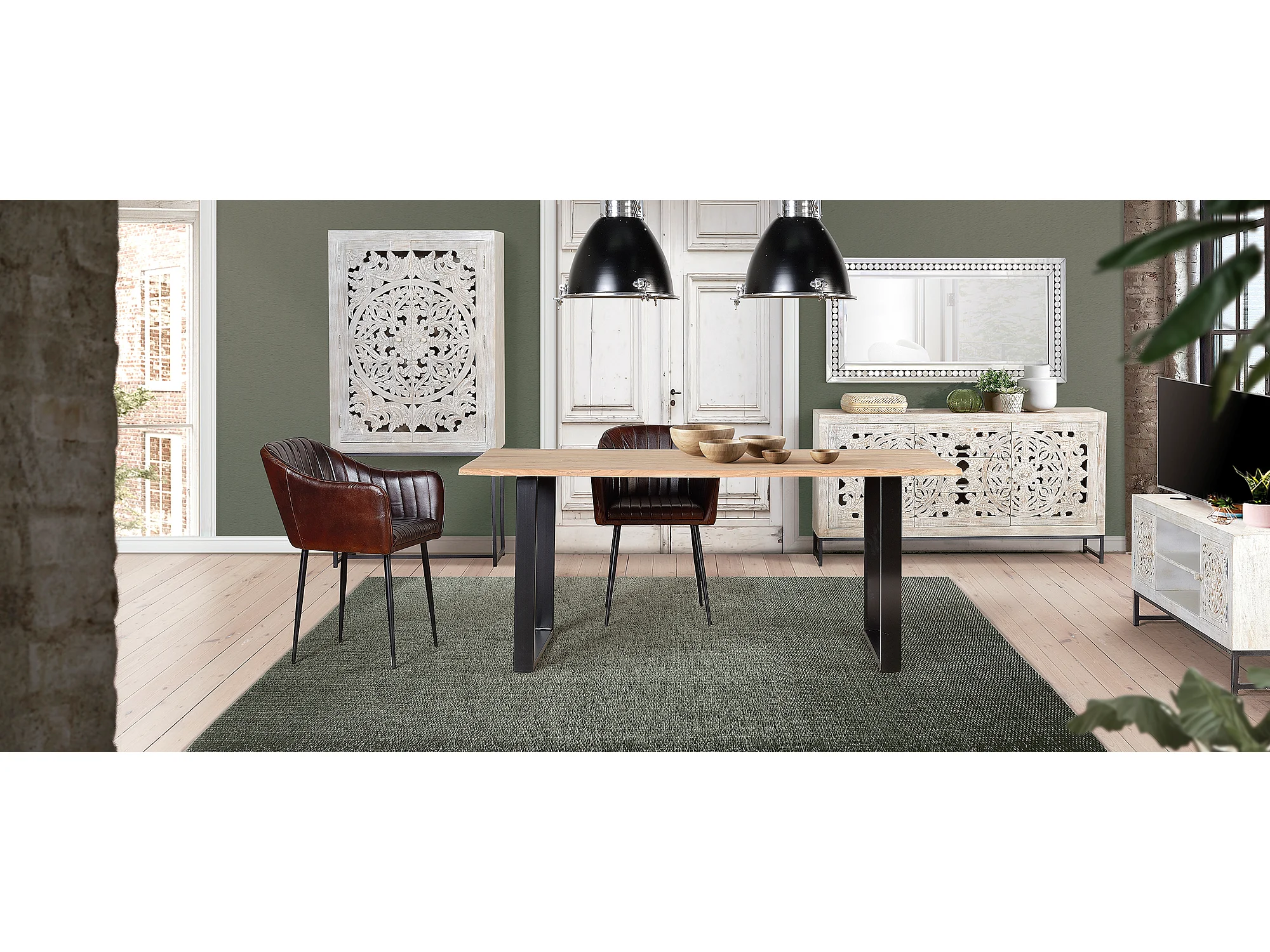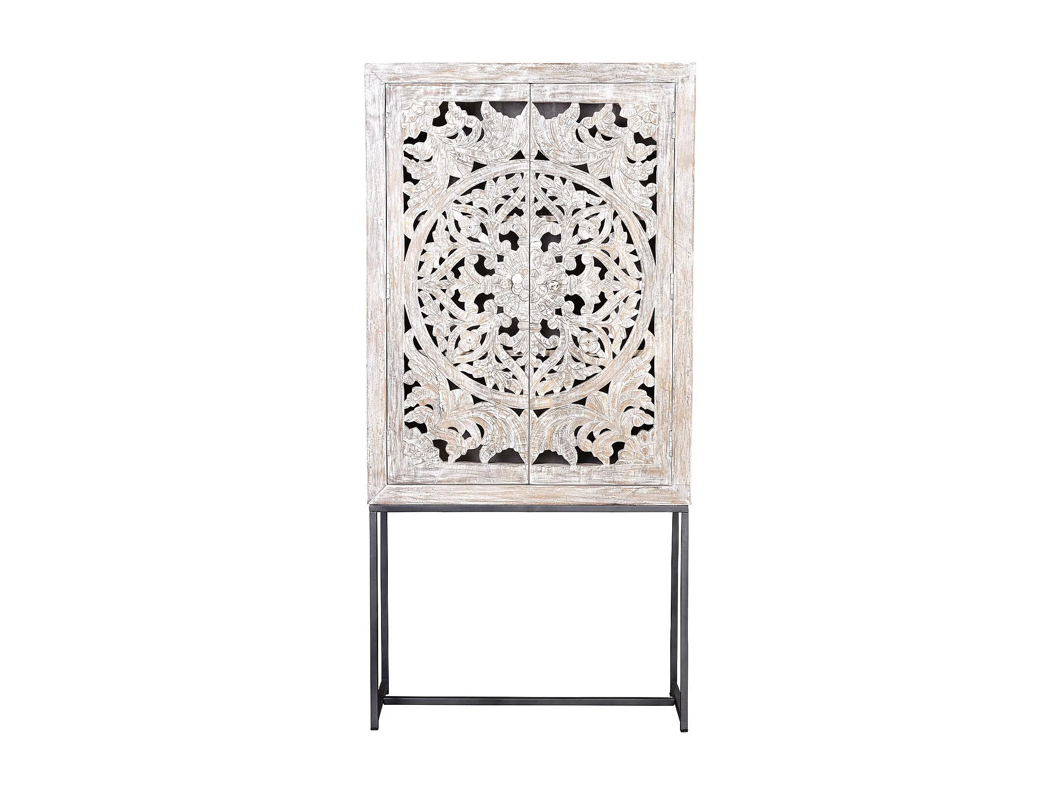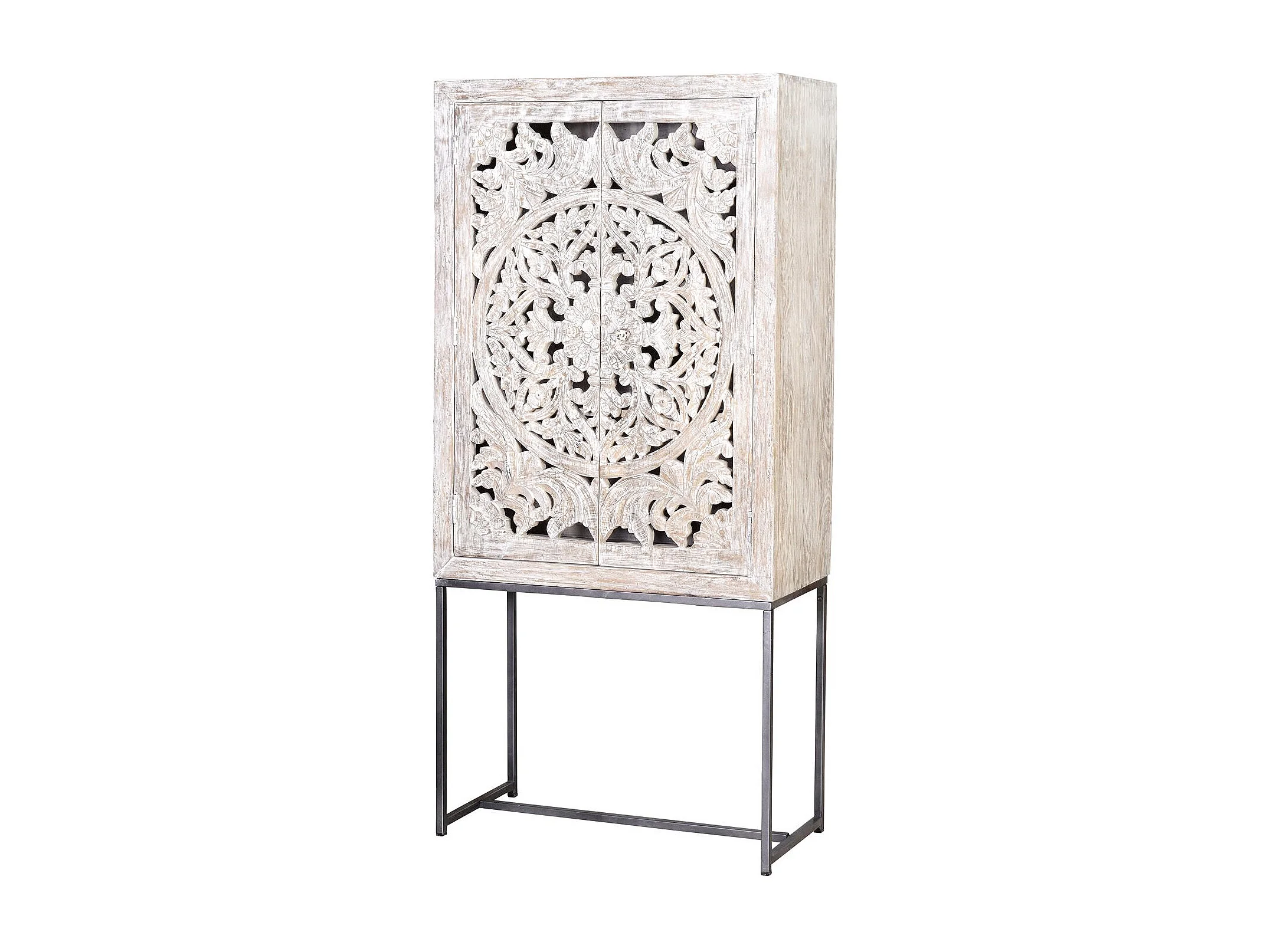 Vitrine en manguier, pieds métal blanc et gris vieilli