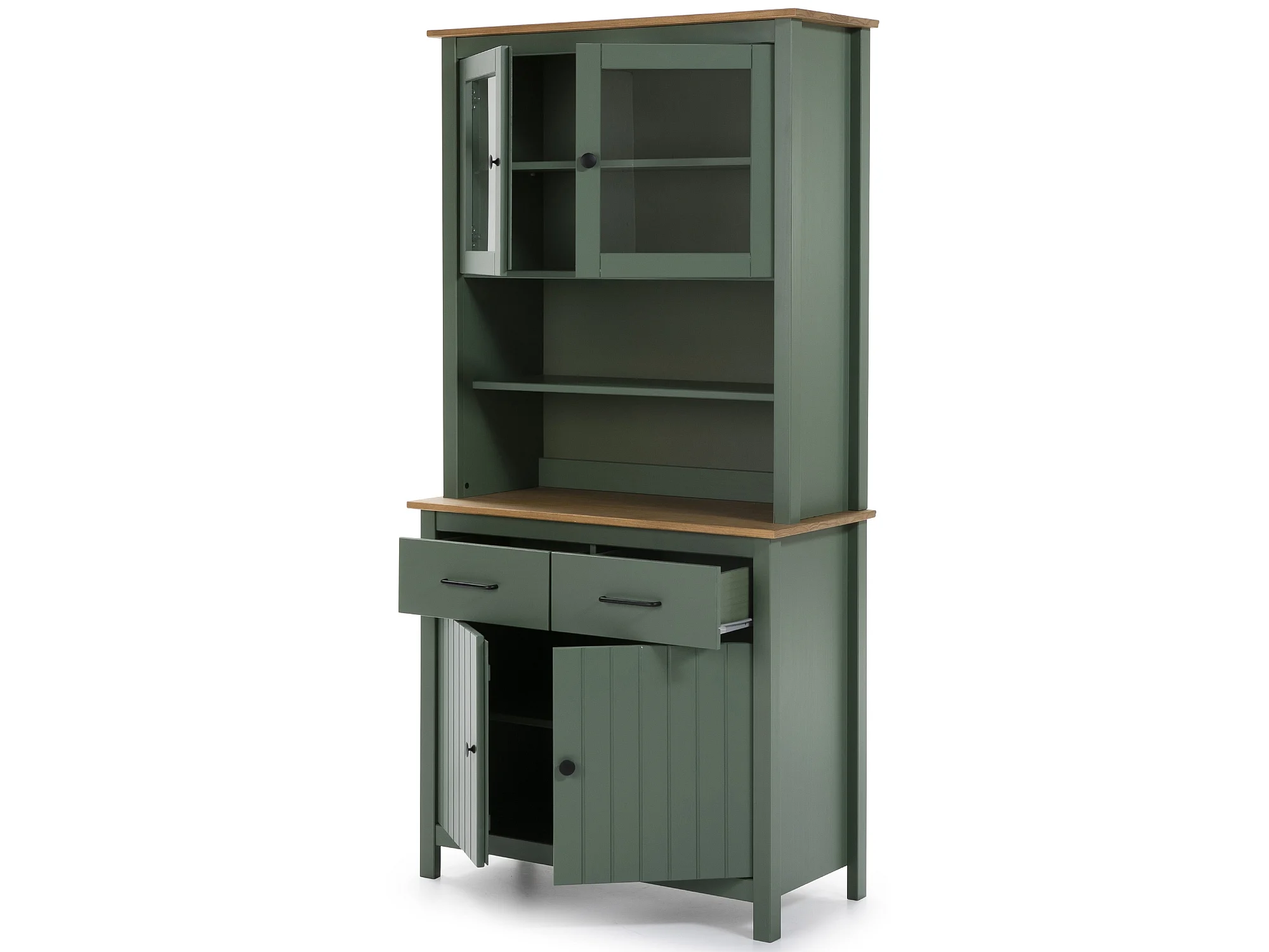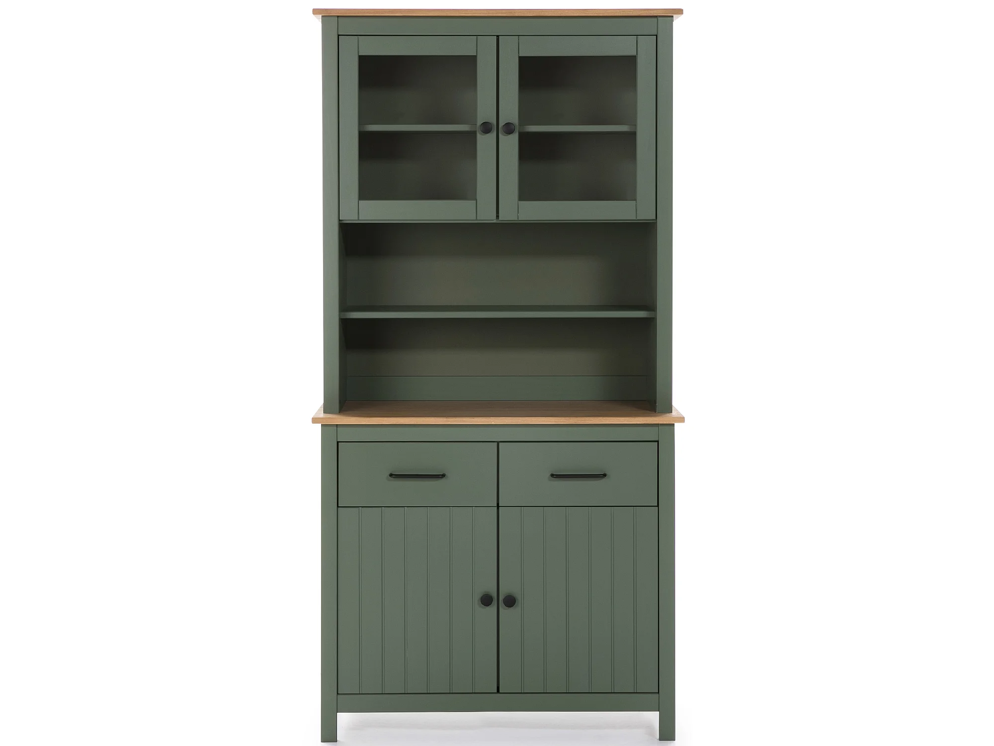 Vitrine en pin massif décor ciré chêne et vert, meuble de rangement - Longueur 90 x Profondeur 40 x Hauteur 180 cm