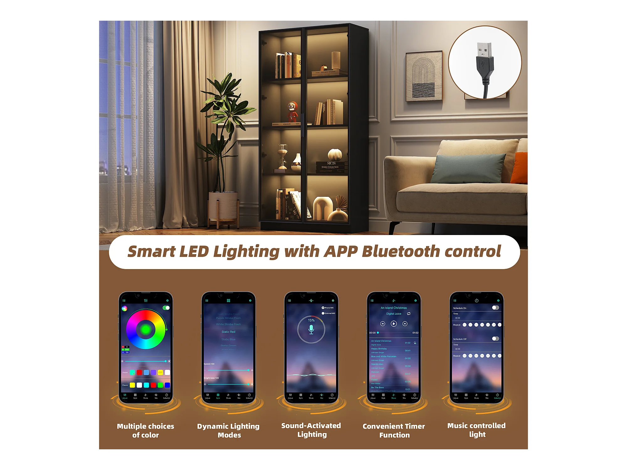 Vitrine en verre 160x40x160 cm - avec Leds - rangement à 4 portes avec étagères mobiles - aggloméré - noir