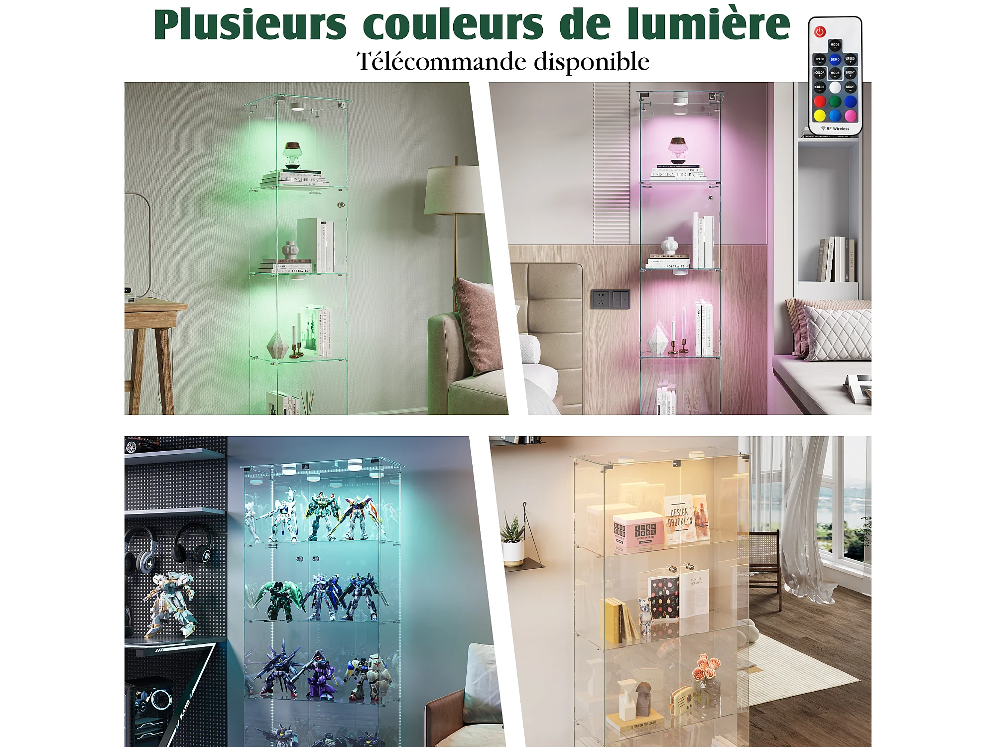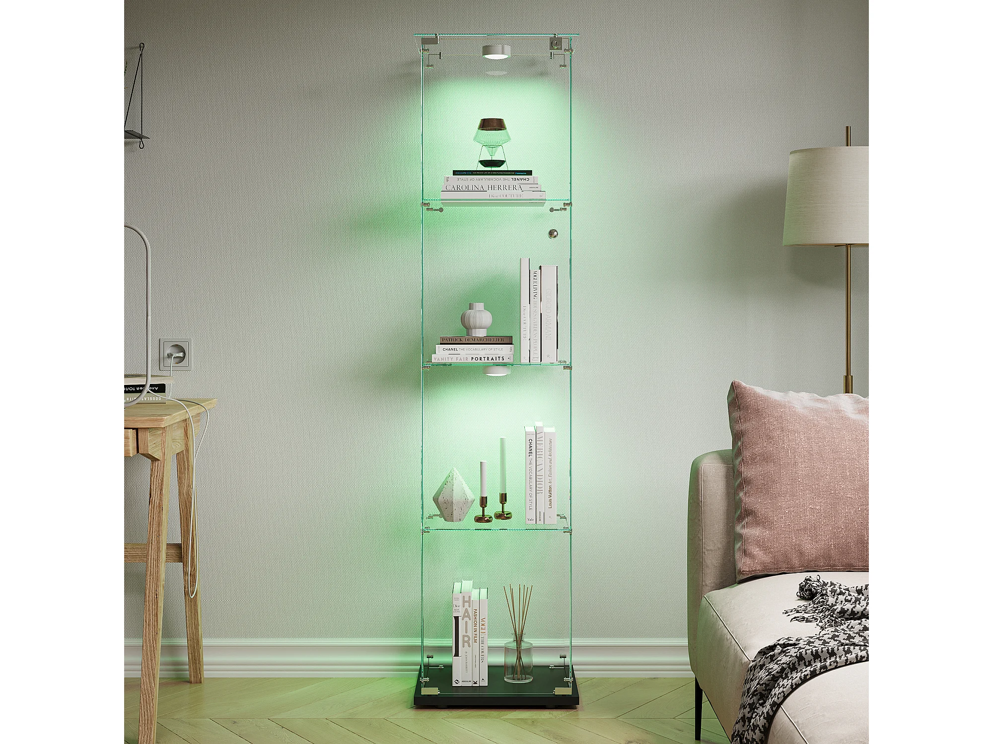 Vitrine en Verre – 5 Étagères, Portes Doubles, Vitrine de Salon