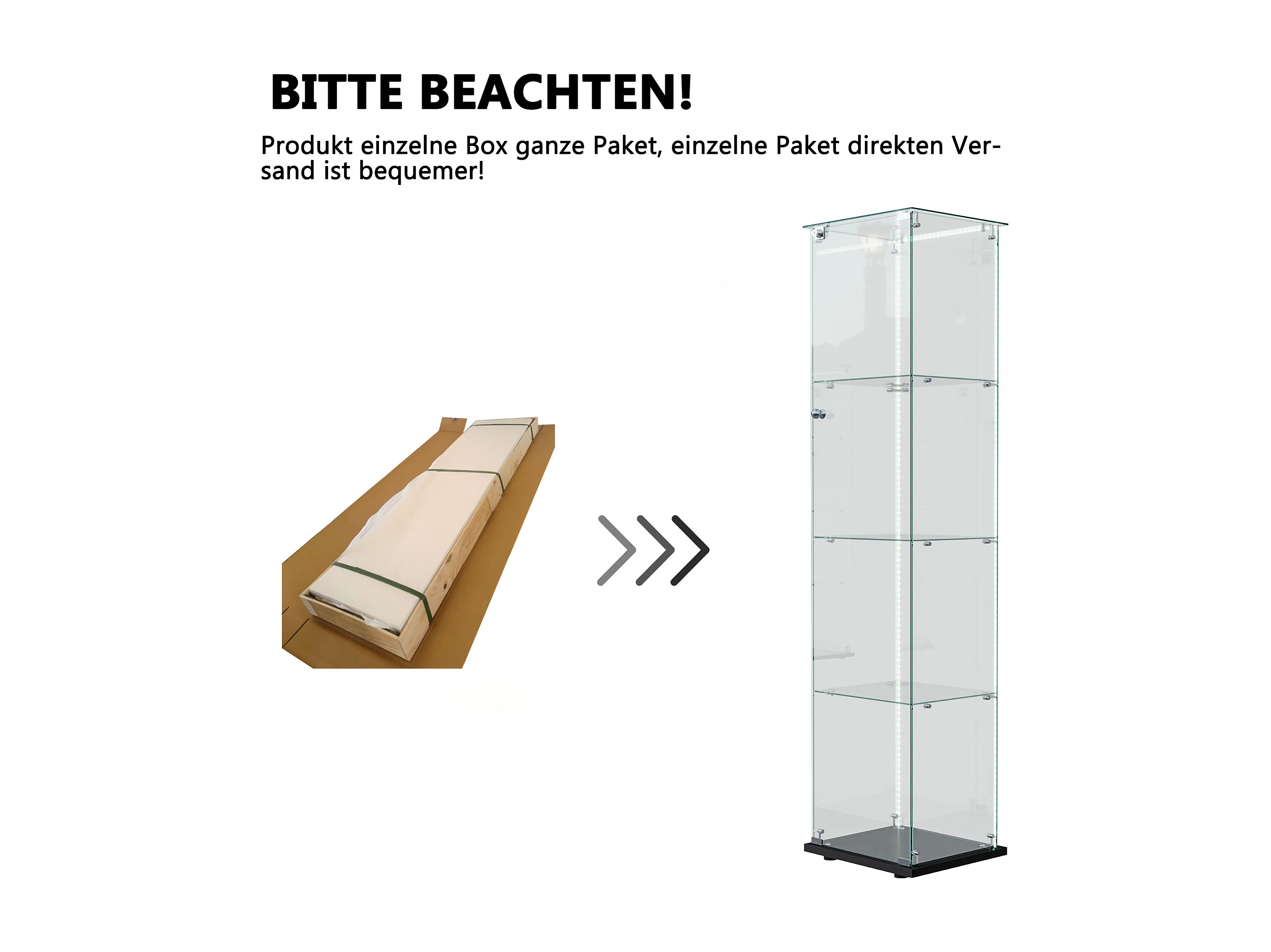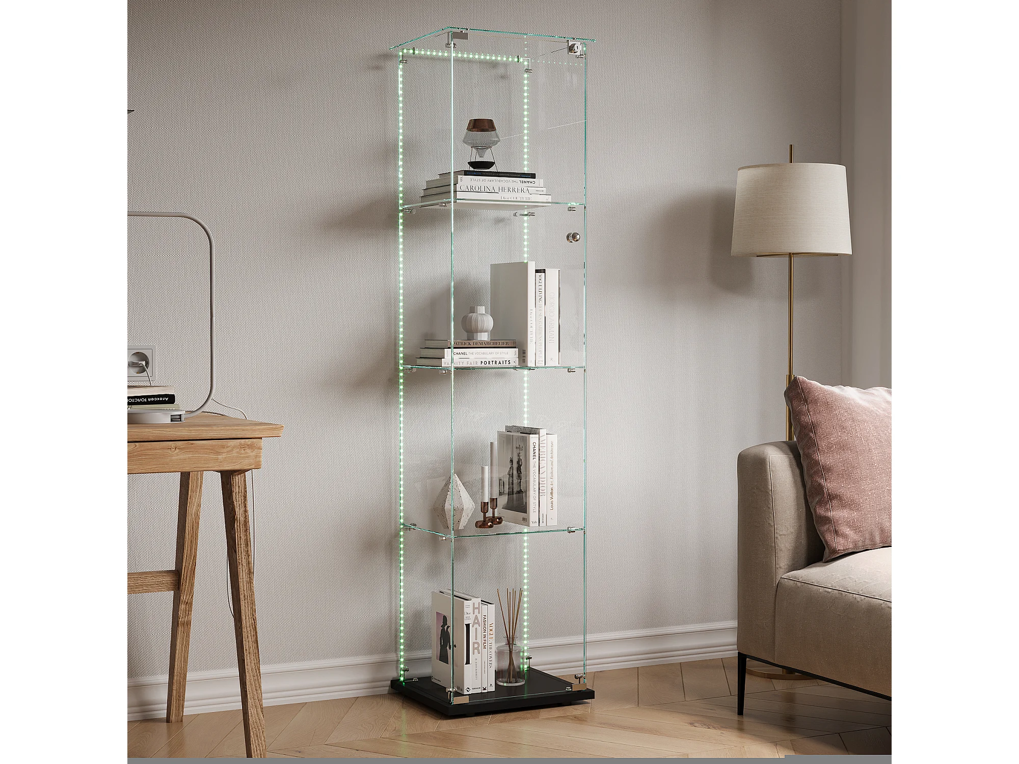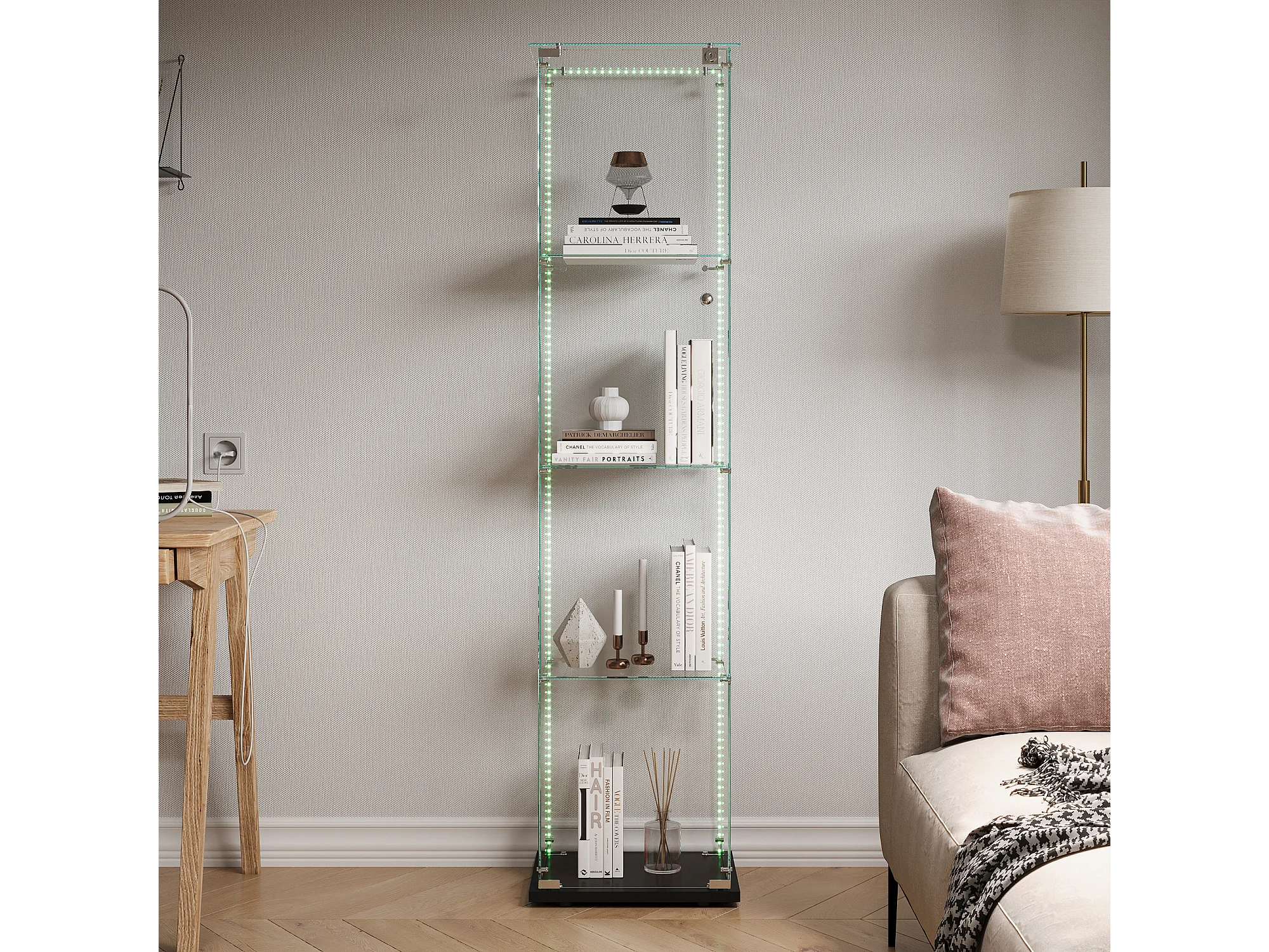 Vitrine en verre à 4 étagères avec éclairage LED - 163 x 39 x 35 cm - Vitrine étroite - noir