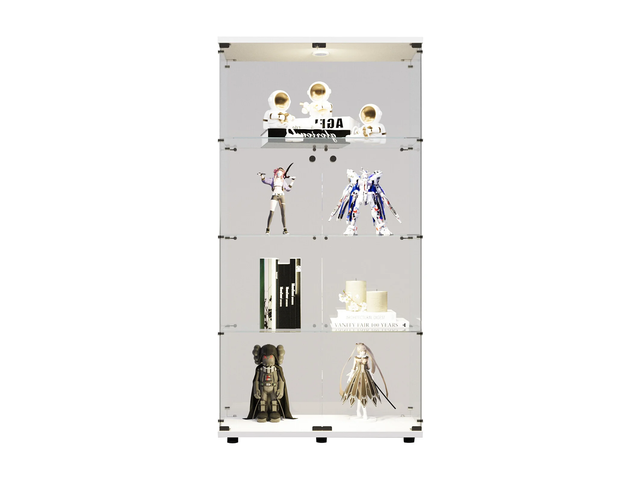 Vitrine en verre à deux portes, verre avec 4 étagères en ESG, avec serrure, éclairage LED - 80 x 36 x 163 cm, blanc