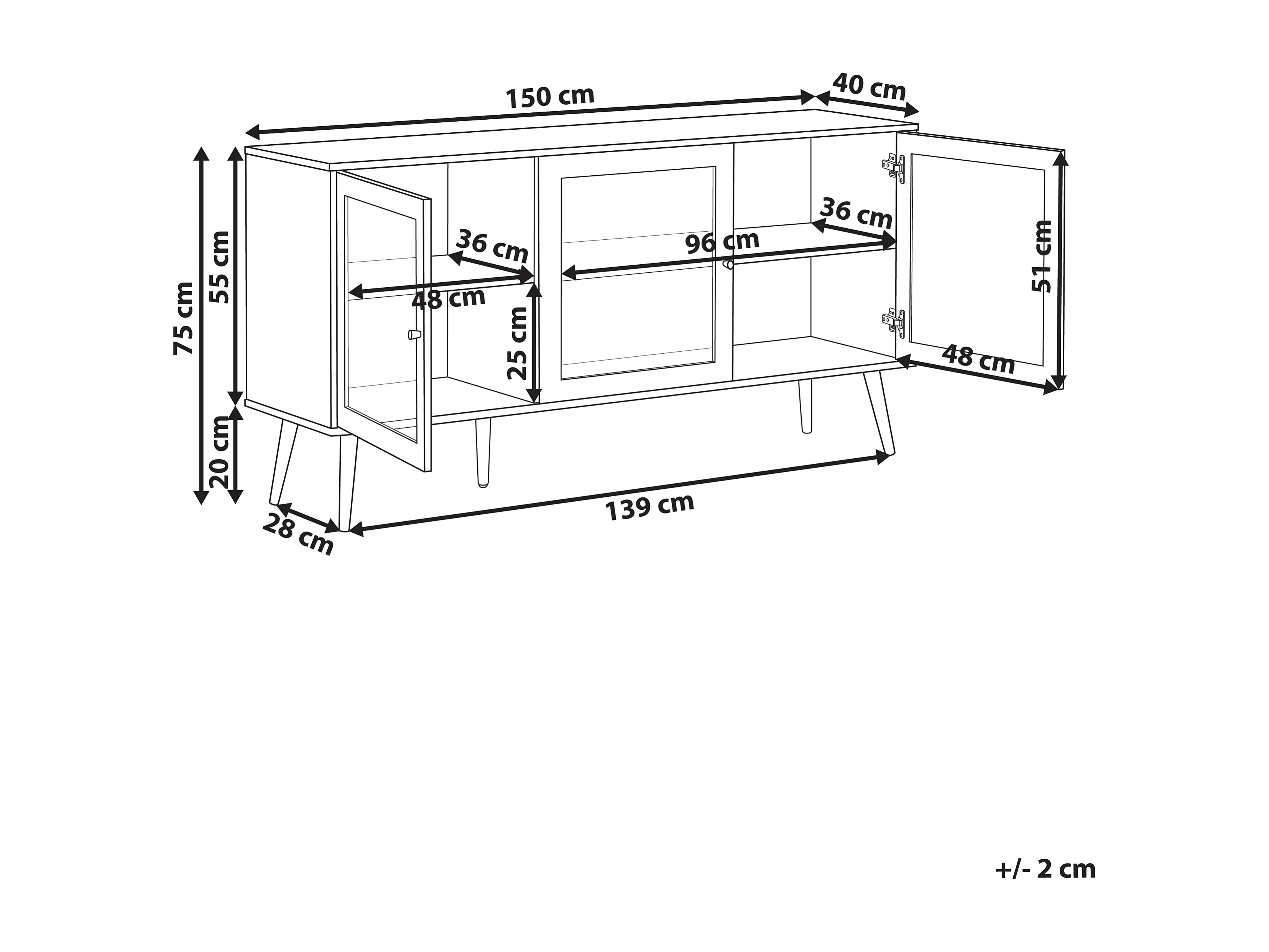 Buffet avec vitrine en verre ALBANY 150 cm Marron clair