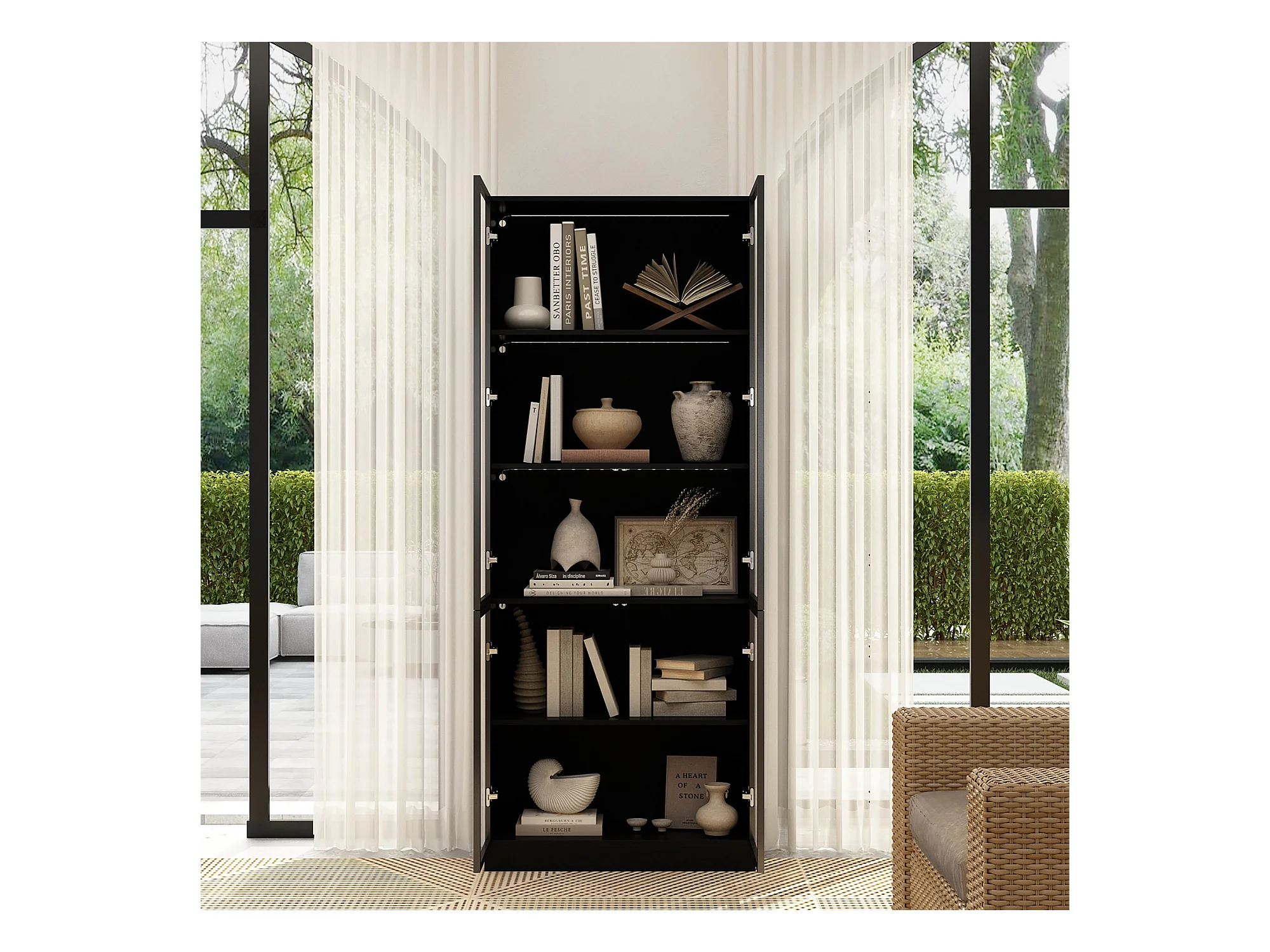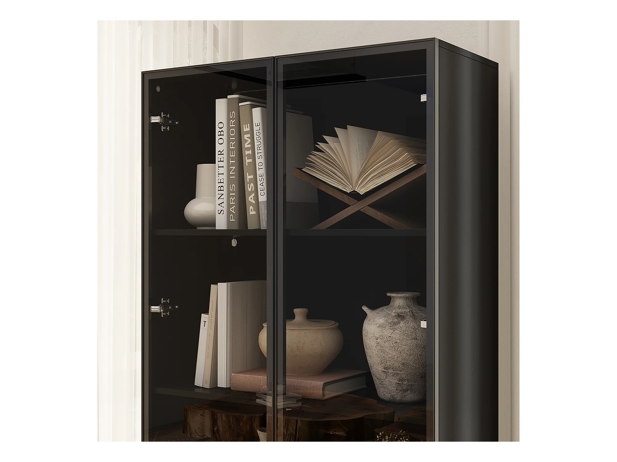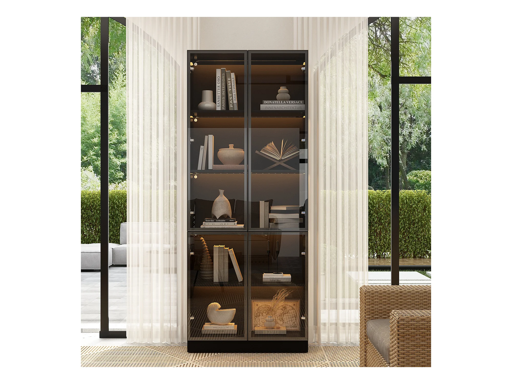 Vitrine en verre avec LED 2 portes en verre trempé Bibliothèque Buffet de cuisine 6 étagères Noir 50x23x175.5cm