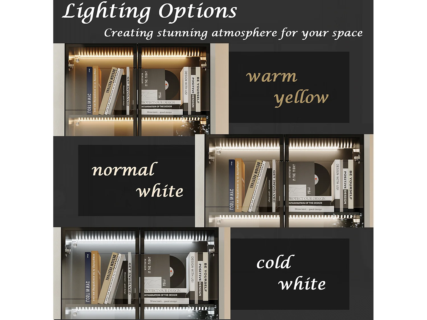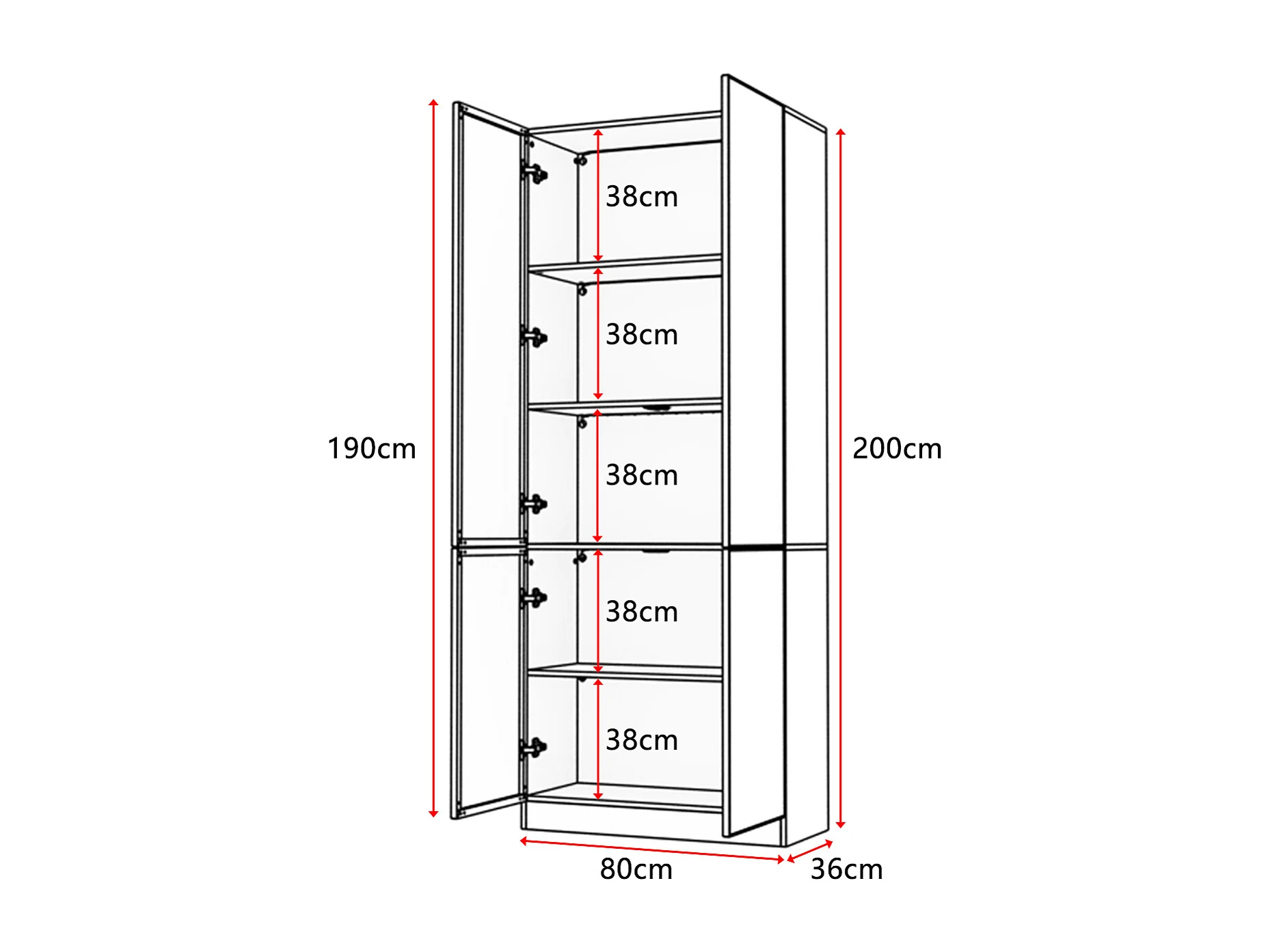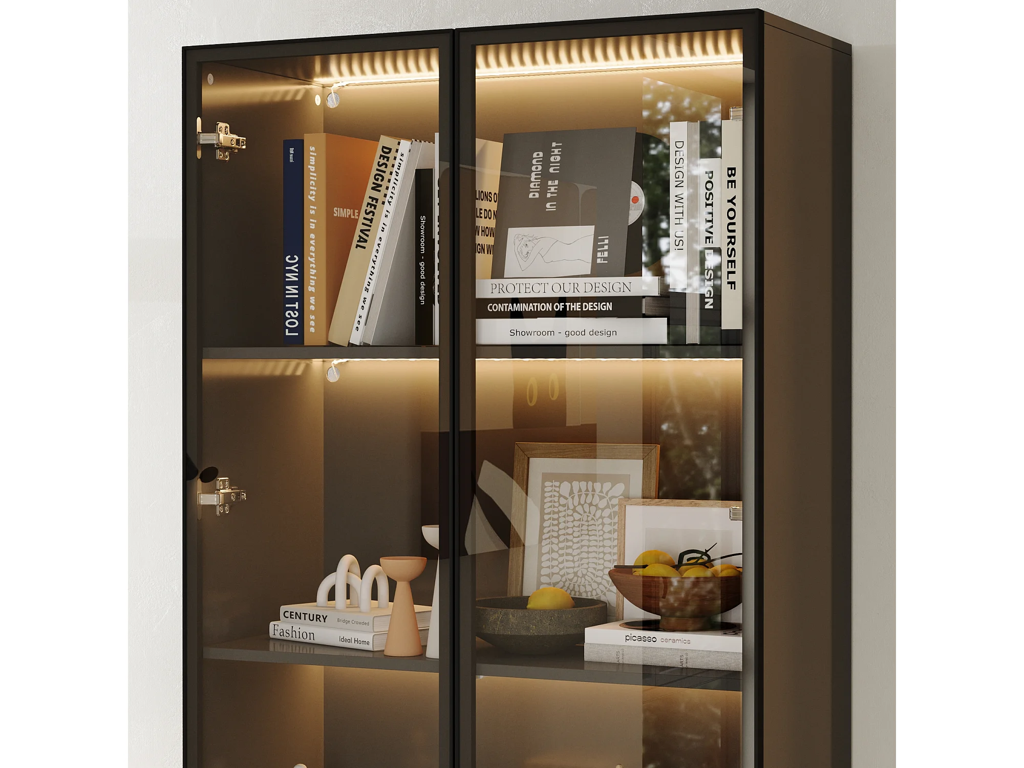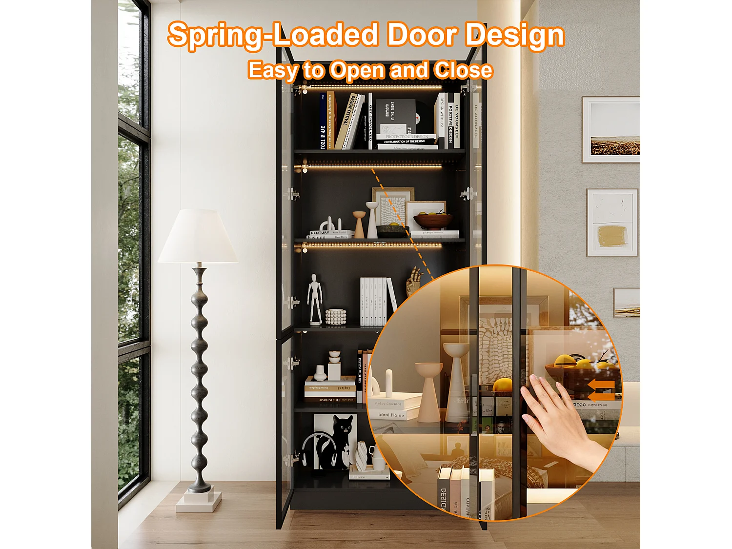 Vitrine avec LED 3 couleurs - 2 portes et à 5 niveaux - push to open, 80x36x200cm, Noir