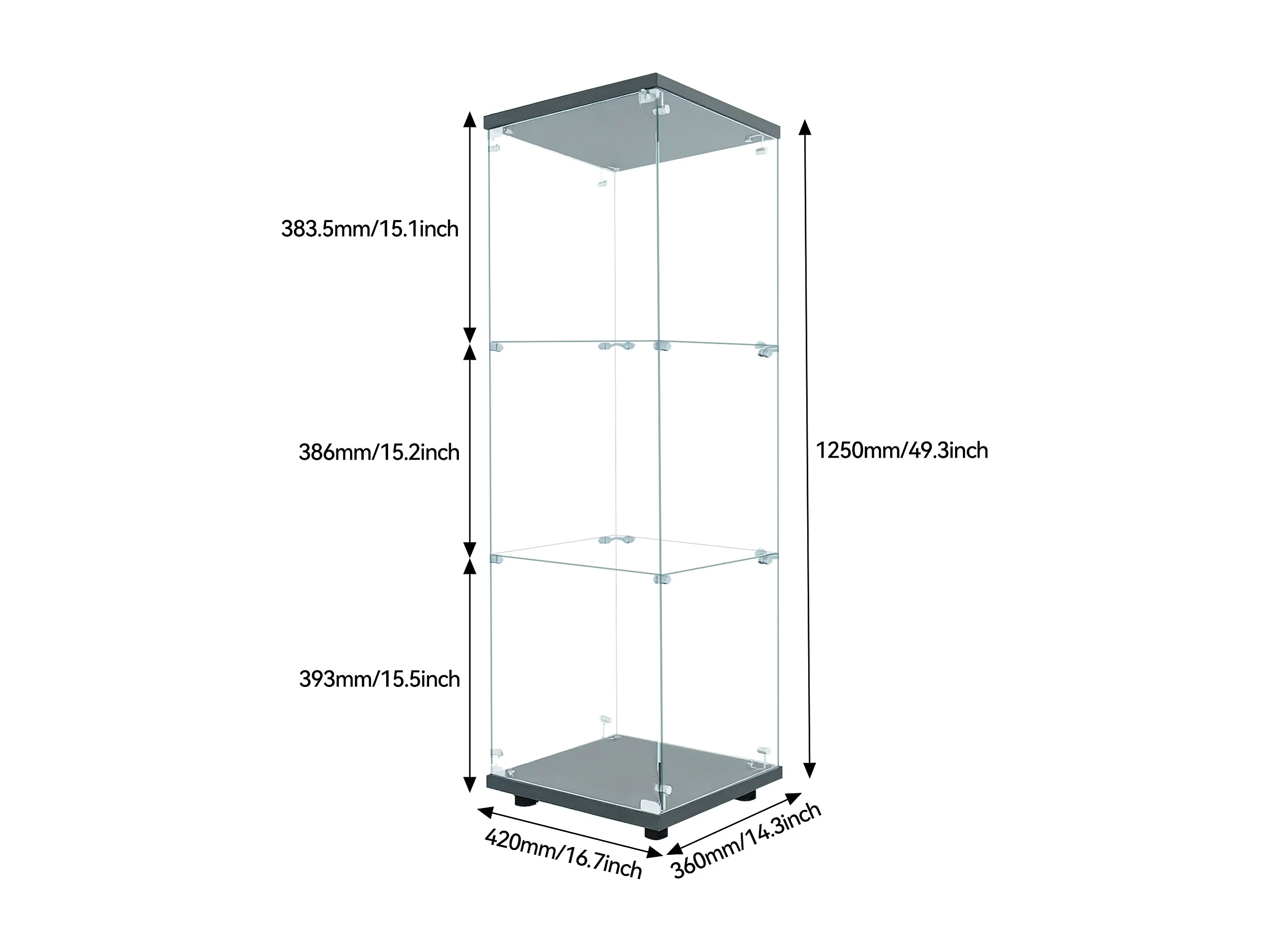 Vitrine en verre avec LED, Armoire pour collection serrure, Dispositif anti-basculement, verre trempé, 1 portes, 3 étages, 42x36x125, Noir