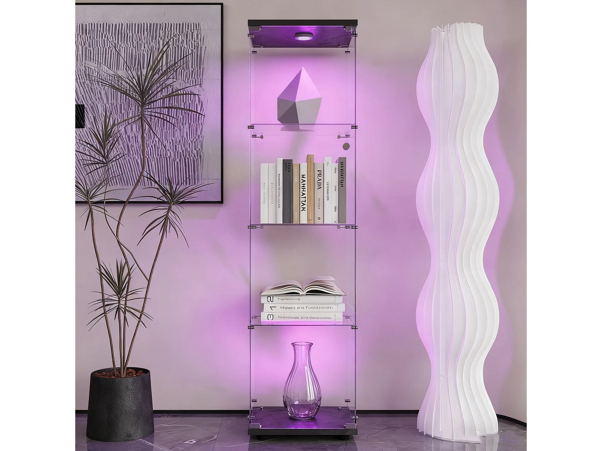Vitrine en verre avec LED et serrure - Armoire pour collection avec 4 étages - pour magasin et bureau or Chambre et Salon - 44 x 14 x 165 cm - noir