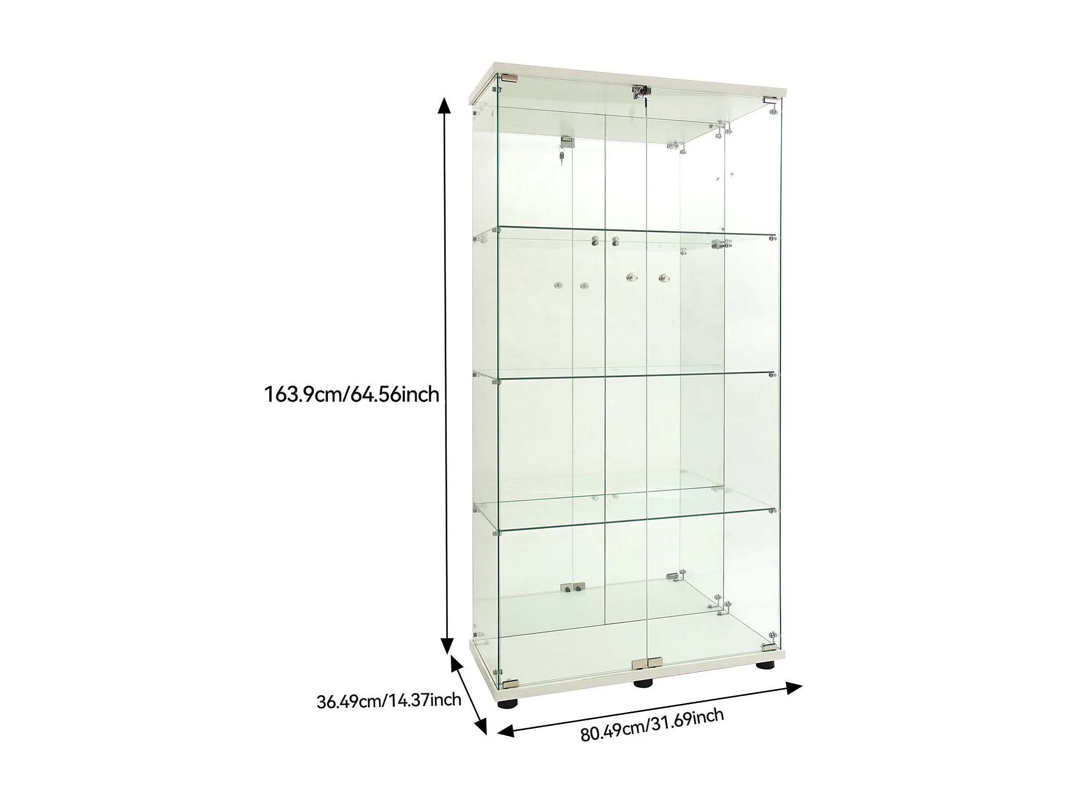 Vitrine en Verre avec LED et Serrure, Armoire Vitrine Salon en Verre avec 2 Portes et Etagères,blanc