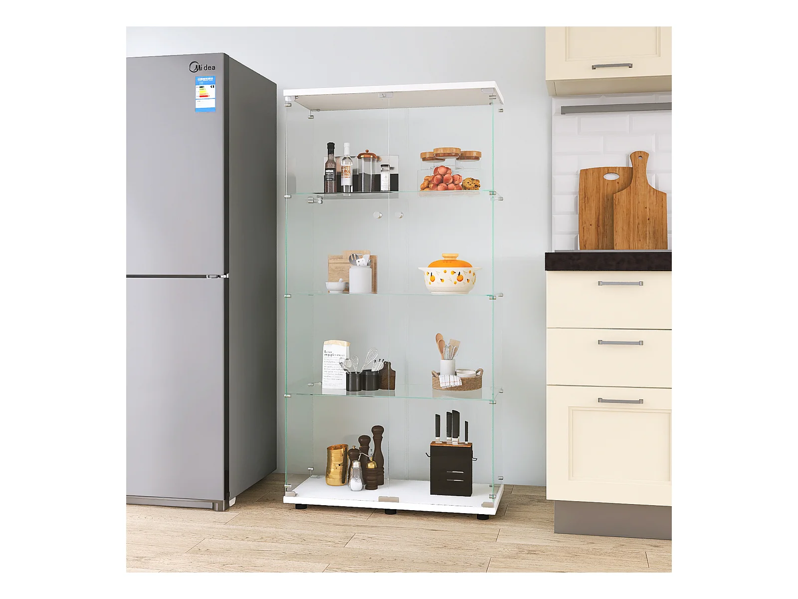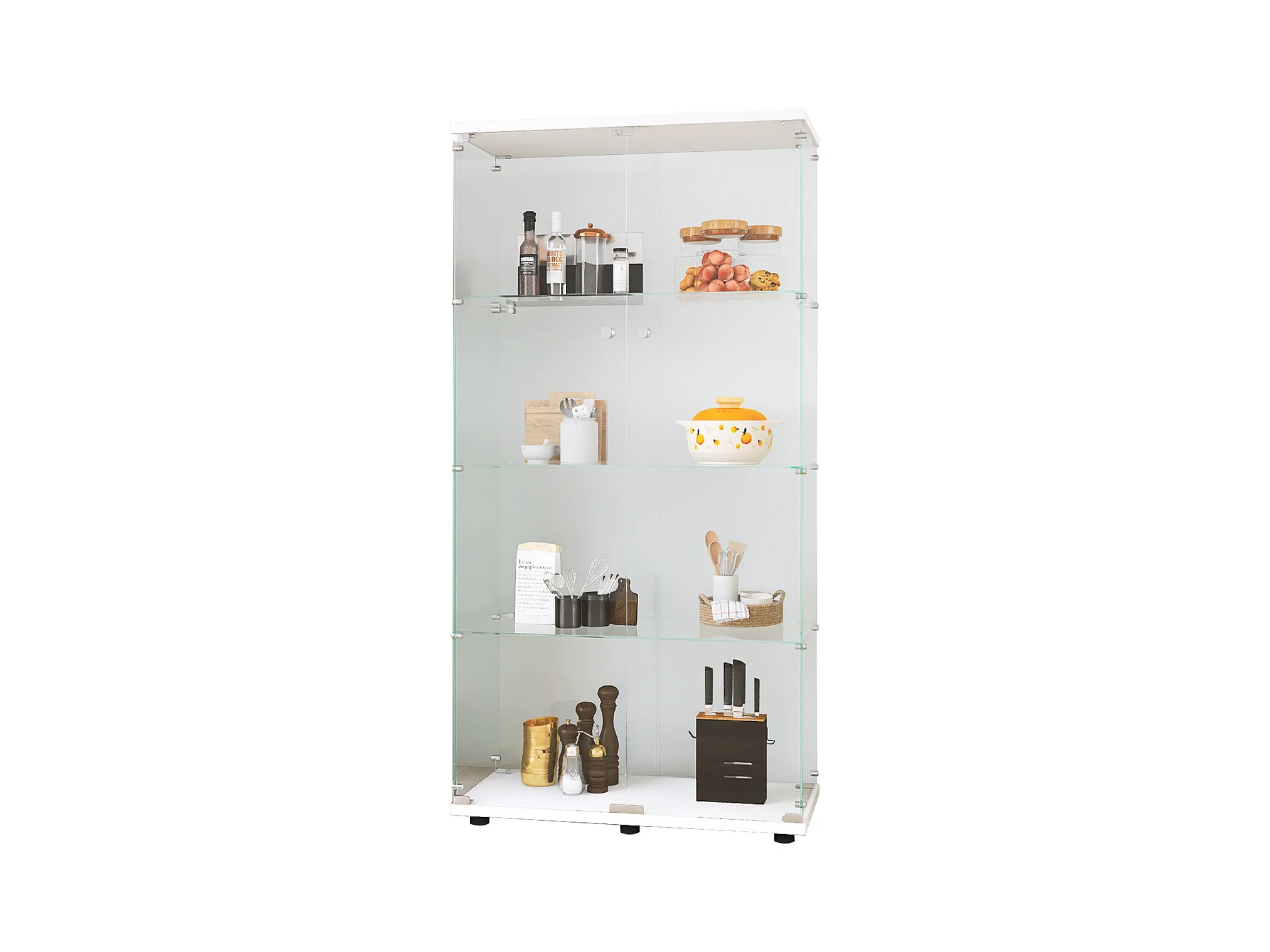 Vitrine en verre avec LED, Vitrine en verre avec serrure, Armoire pour collection, 2 portes, 4 étages, 80 x 36 x 164 cm, Blanc