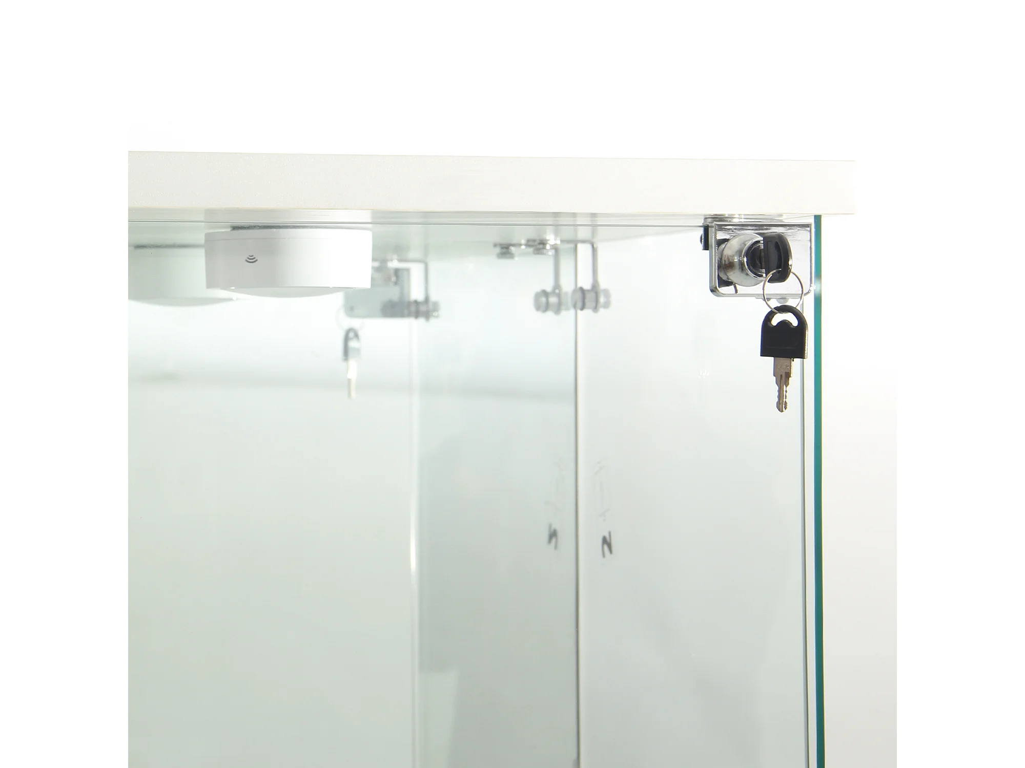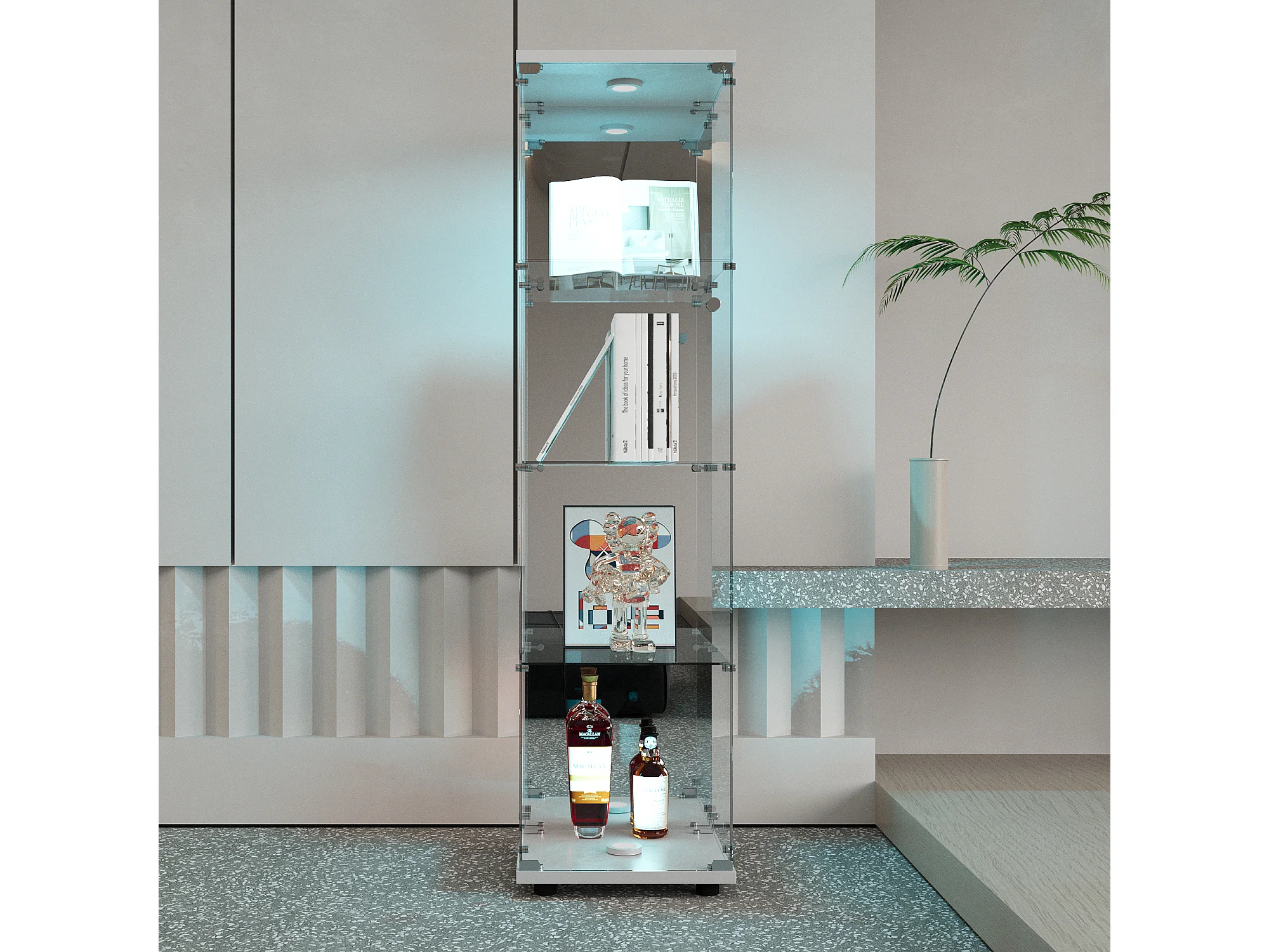 Vitrine en verre avec 3 étagères, armoires et éclairage LED – Design moderne, Blanc