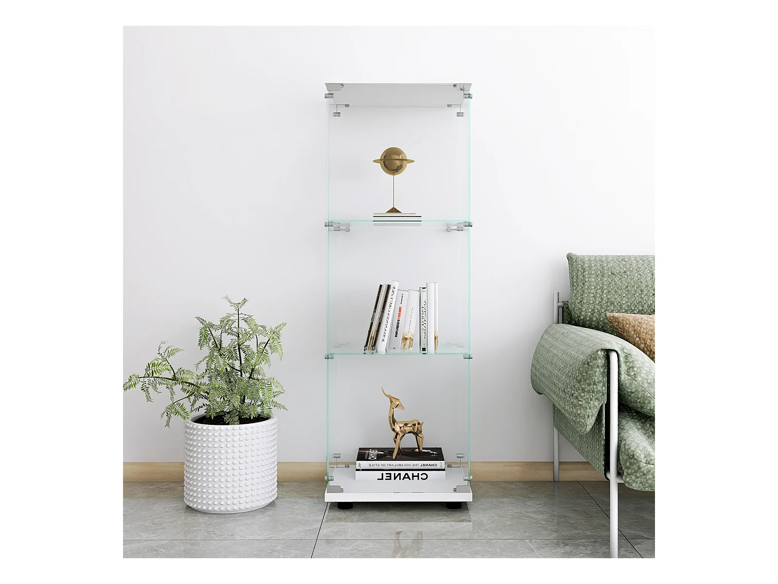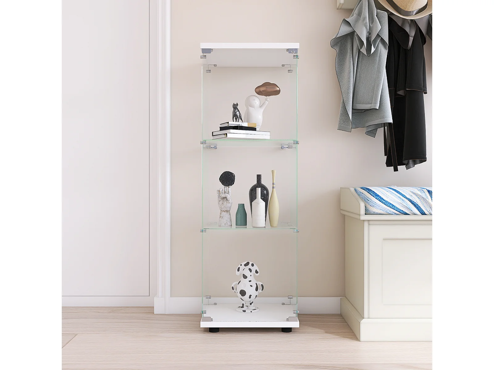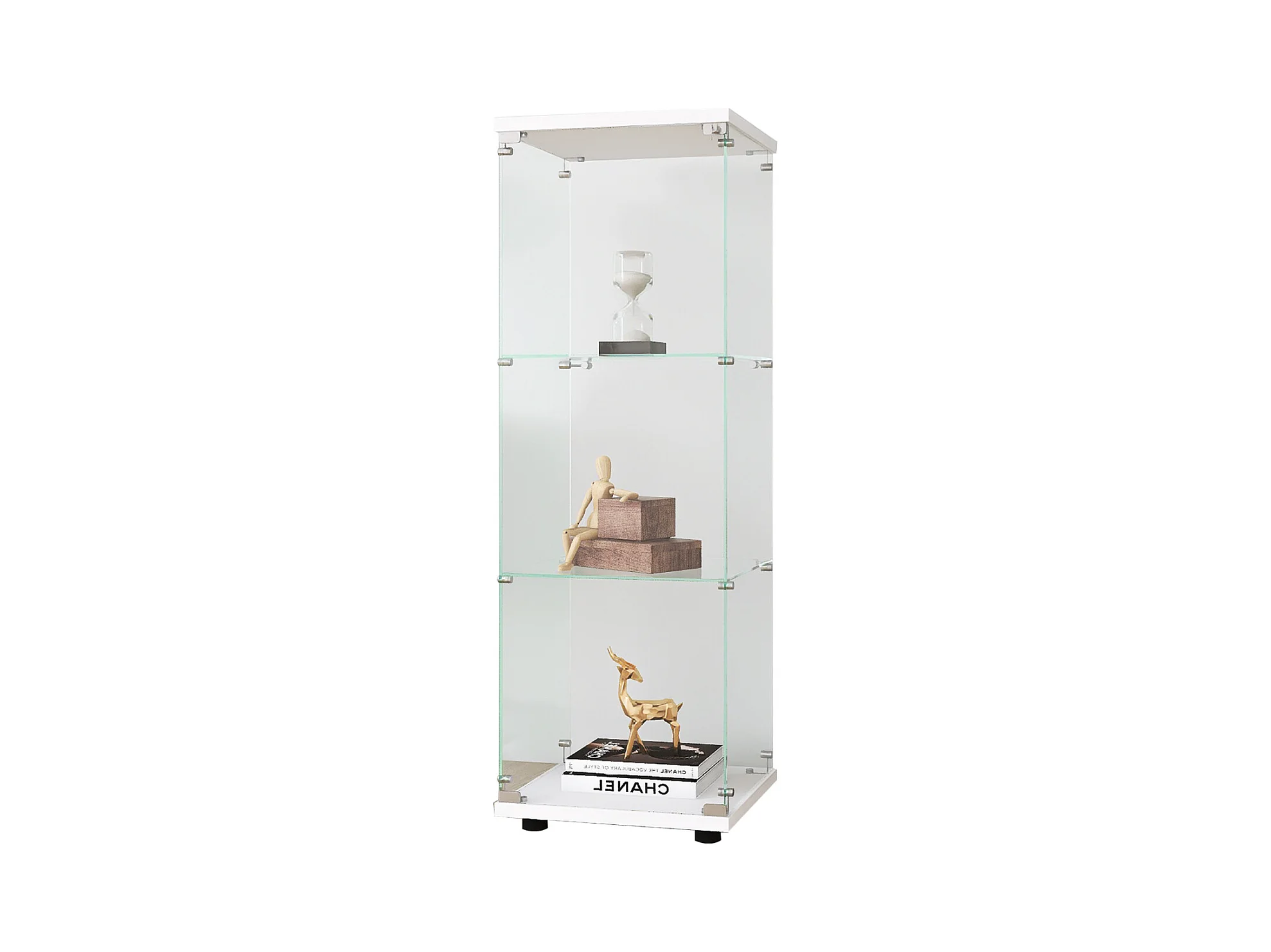 Vitrine en Verre GARHELPER – 3 Étagères, 1 Porte, Verre Trempé, Blanc, 42x36x125 cm