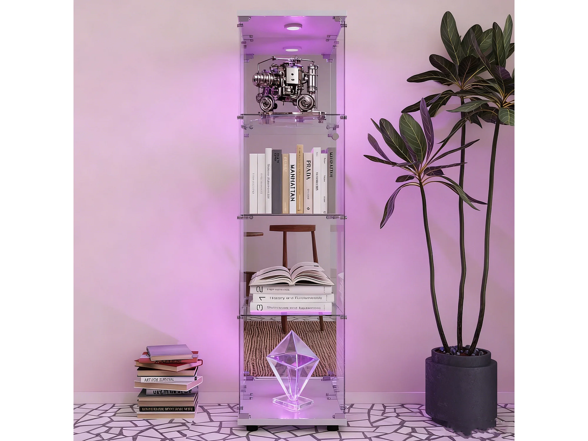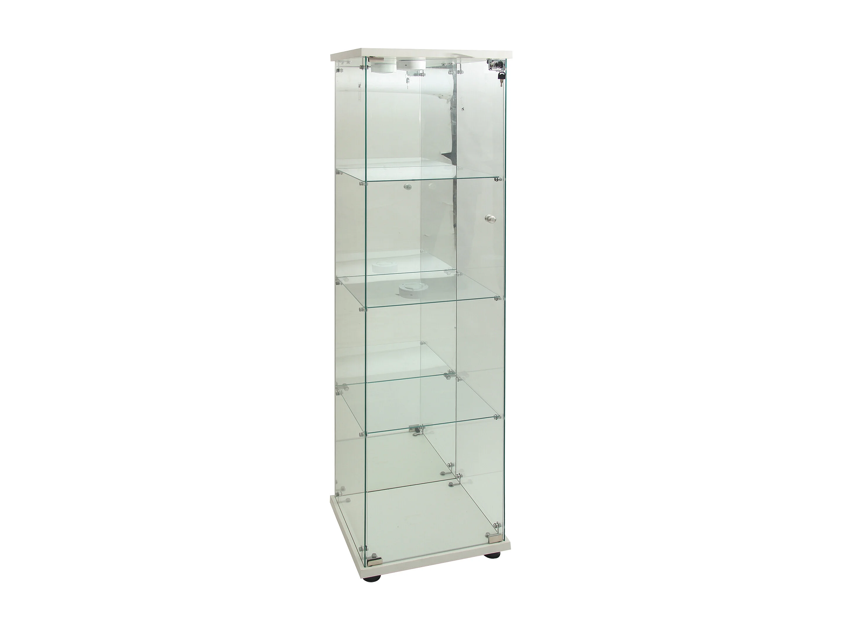 Vitrine en Verre Trempé étage 4 avec Lampe à Tapoter et Serrure – Style Moderne - pour Salon et Chambre or Bureau - Blanc