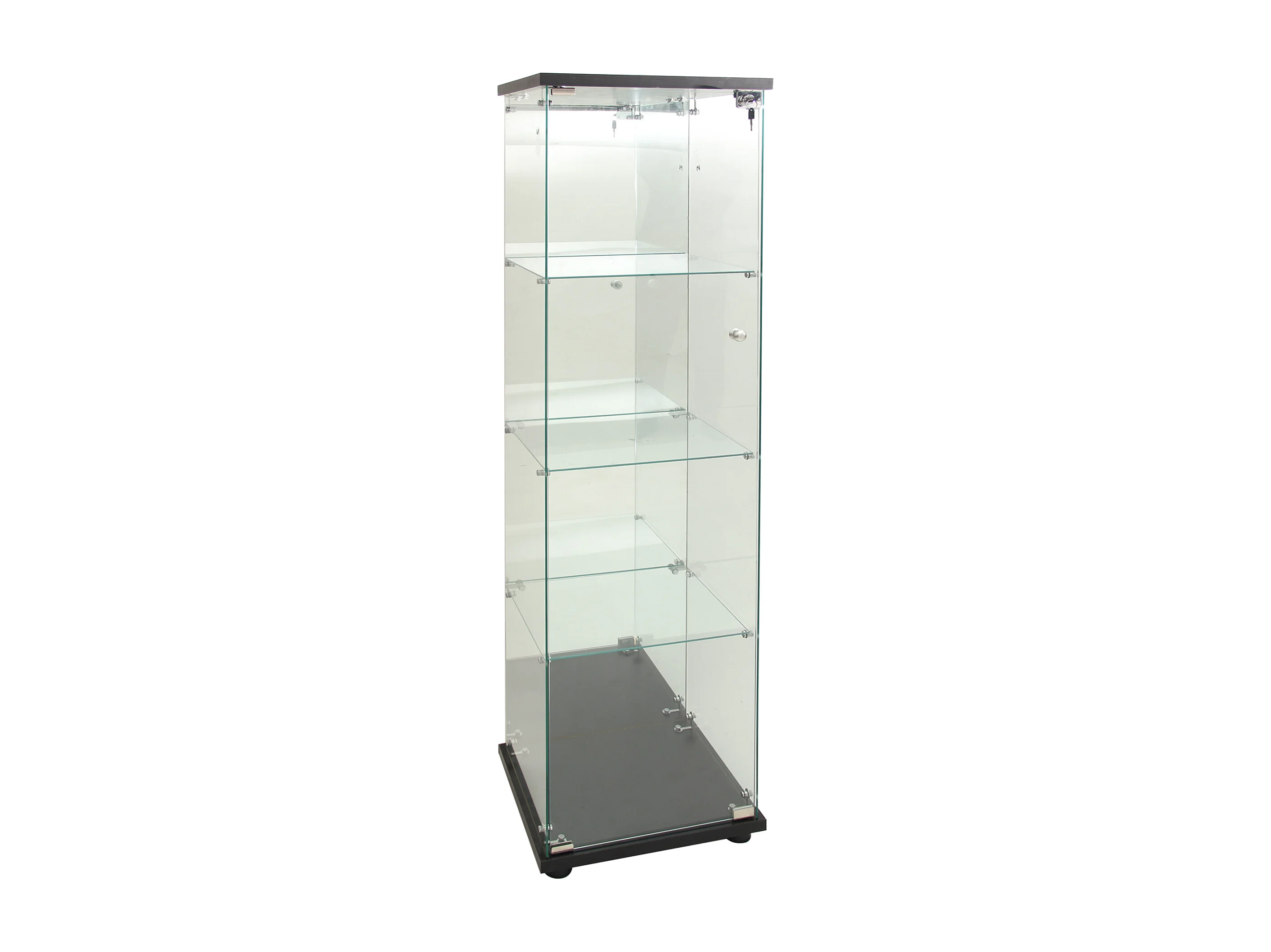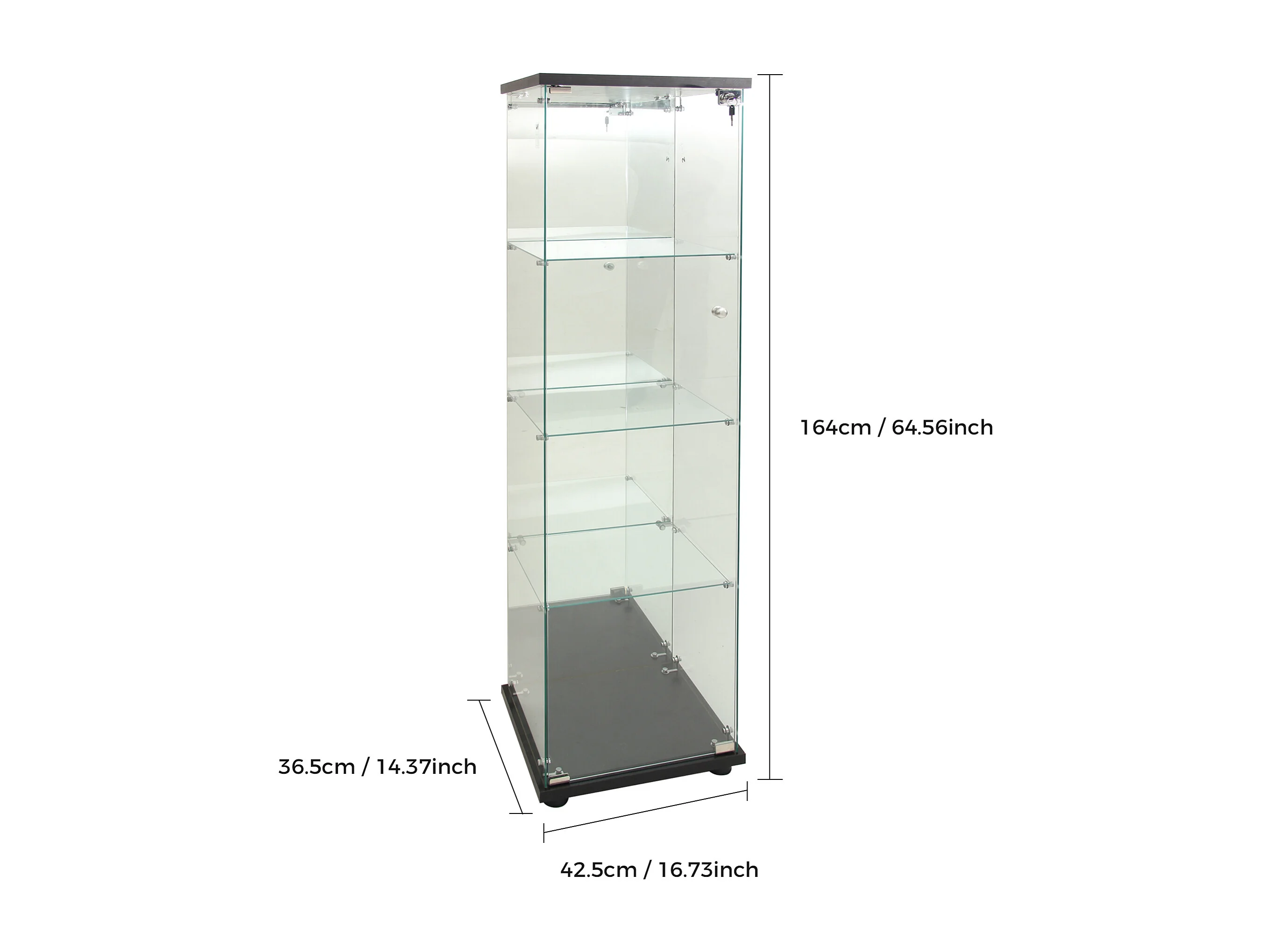 Vitrine en Verre Trempé étage 4 avec Lampe à Tapoter et Serrure – Style Moderne - pour Salon et Chambre or Bureau - Noir