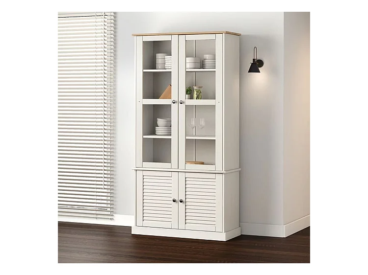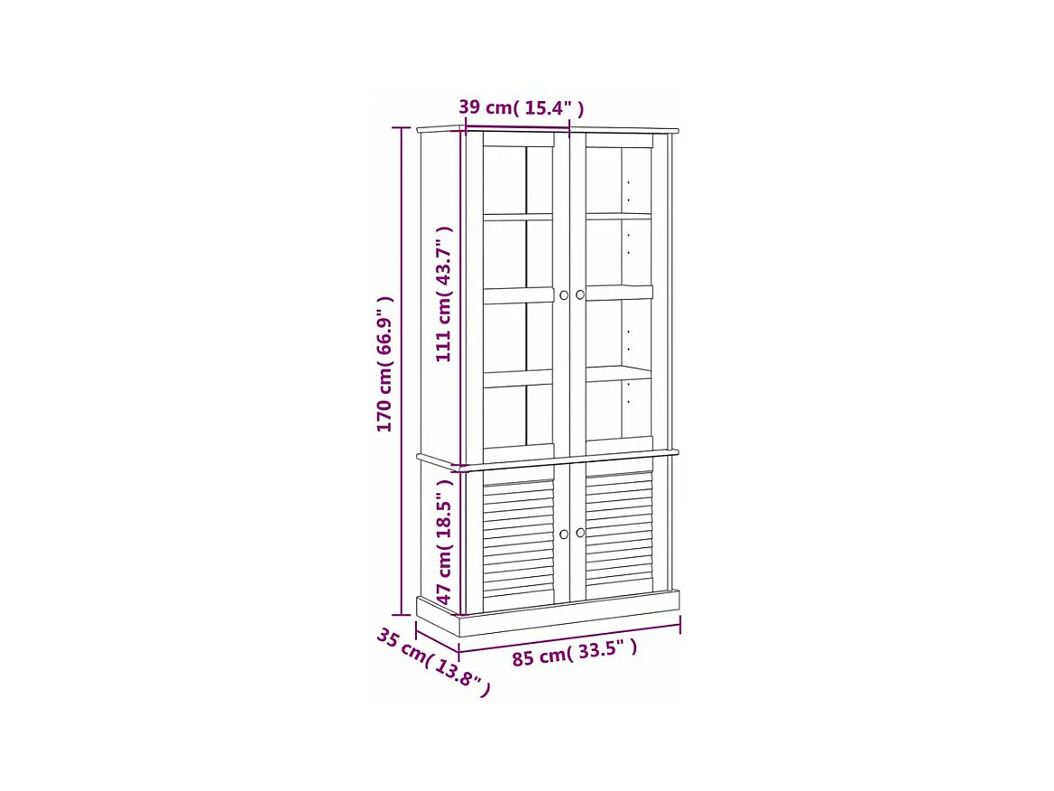 Vitrine en verre VIGO blanc 85x35x170 bois massif de pin