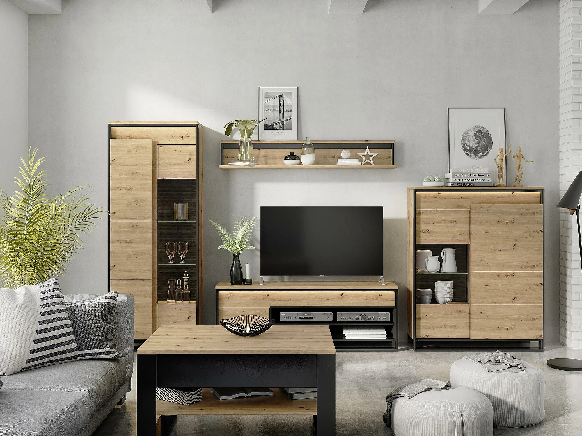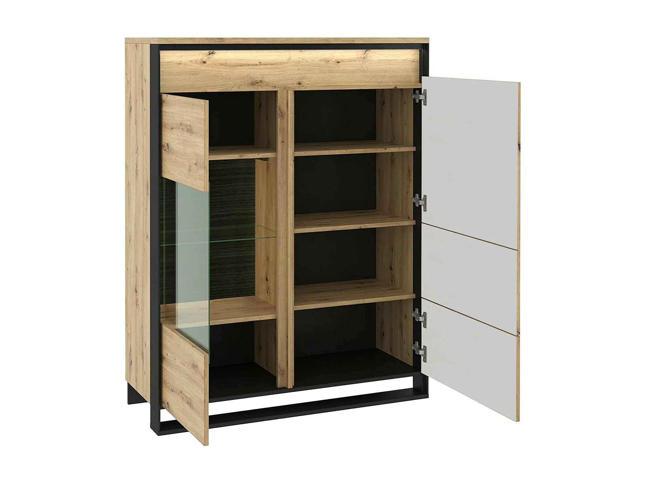 Étagère Luliru 105, Fermé|Avec des portes, Stratifié|Verre trempé|MDF, 140x110x41cm