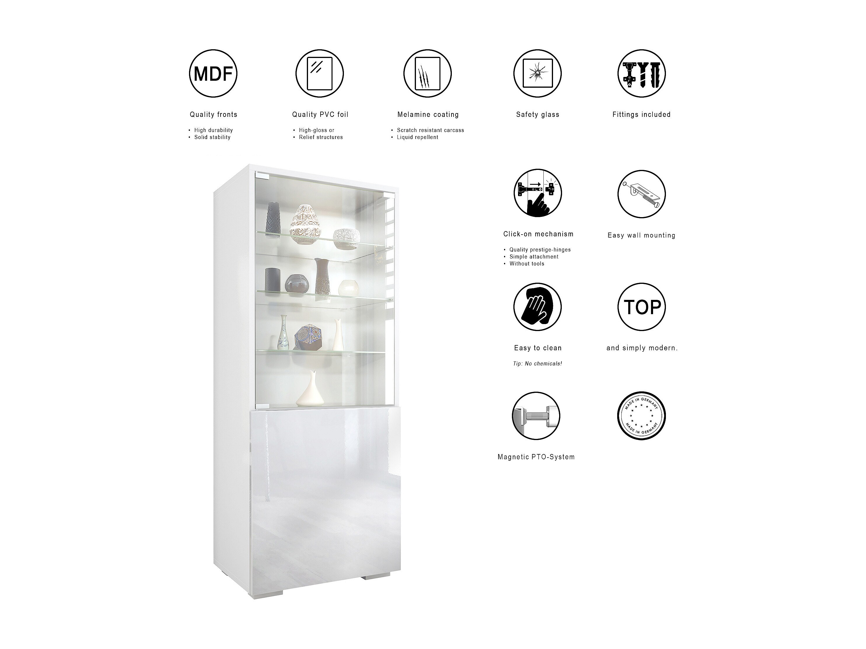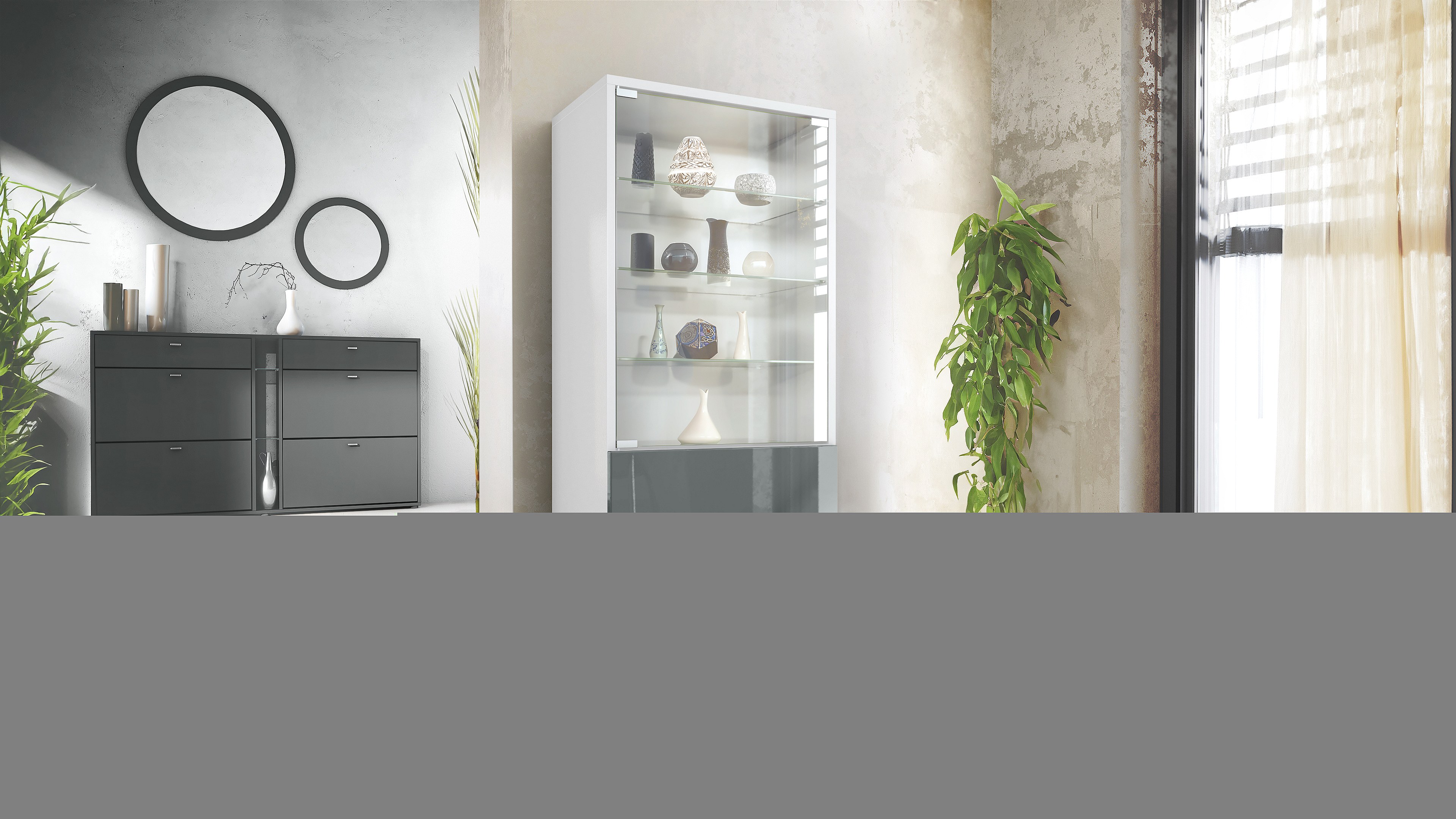 Vitrine Granada, Armoire Vitrée Made in Germany, avec Porte en Verre et Insert en Verre, blanc mat/gris haute brillance (50 x 122,5 x 34,5 cm)