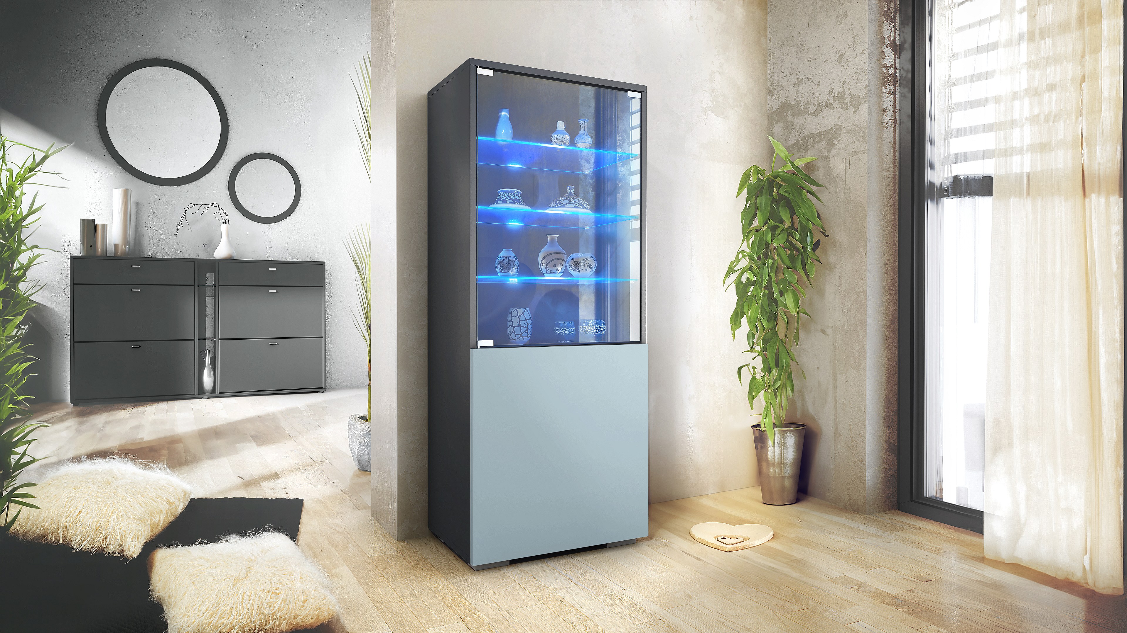 Vitrine Granada de , Armoire Vitrée Made in Germany avec Porte en Verre et Insert en Verre y compris LED, anthracite mat/denim mat (50 x 122,5 x 34,5 cm)