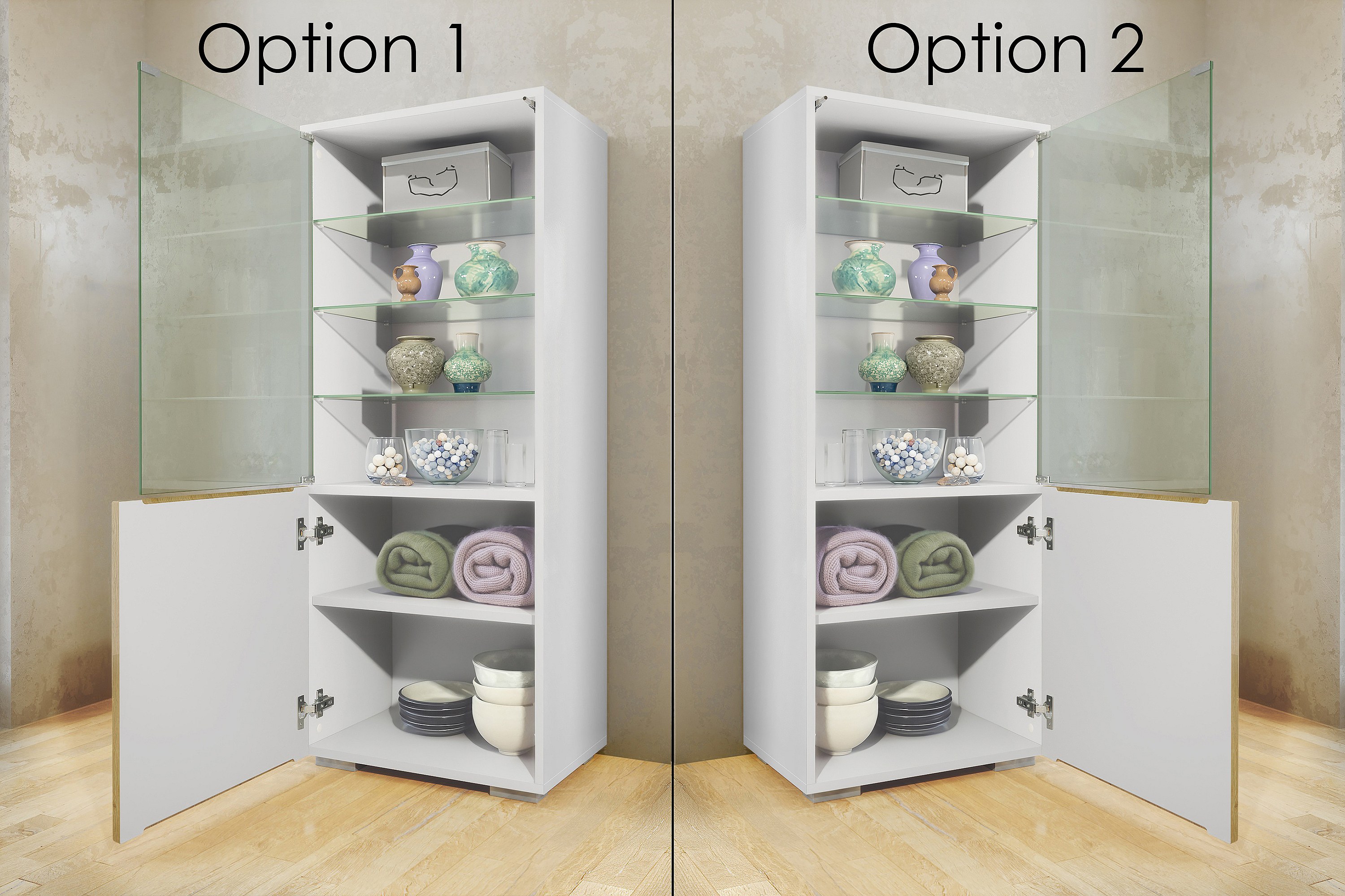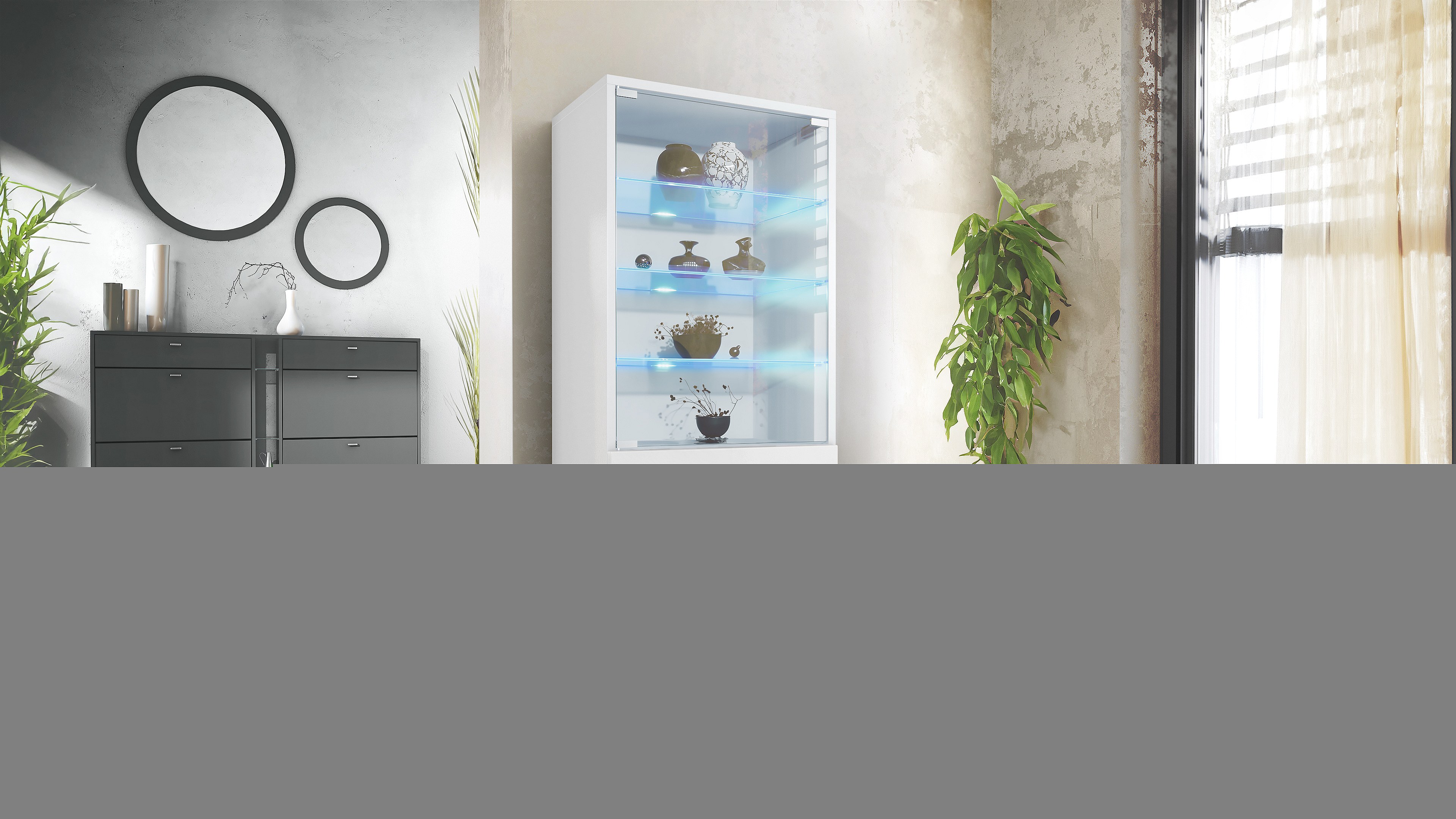 Vitrine Granada de , Armoire Vitrée Made in Germany avec Porte en Verre et Insert en Verre y compris LED, blanc mat/blanc mat (50 x 122,5 x 34,5 cm)