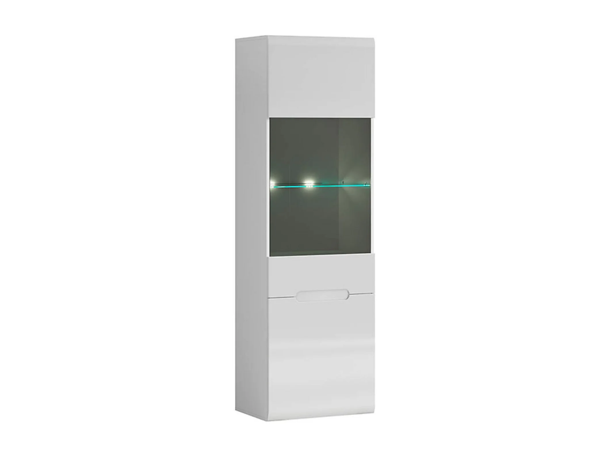 Vitrine haute à 2 portes avec éclairage LED, coloris Blanc/Blanc haute brillance - Longueur 60 x Profondeur 41 x Hauteur 193 cm