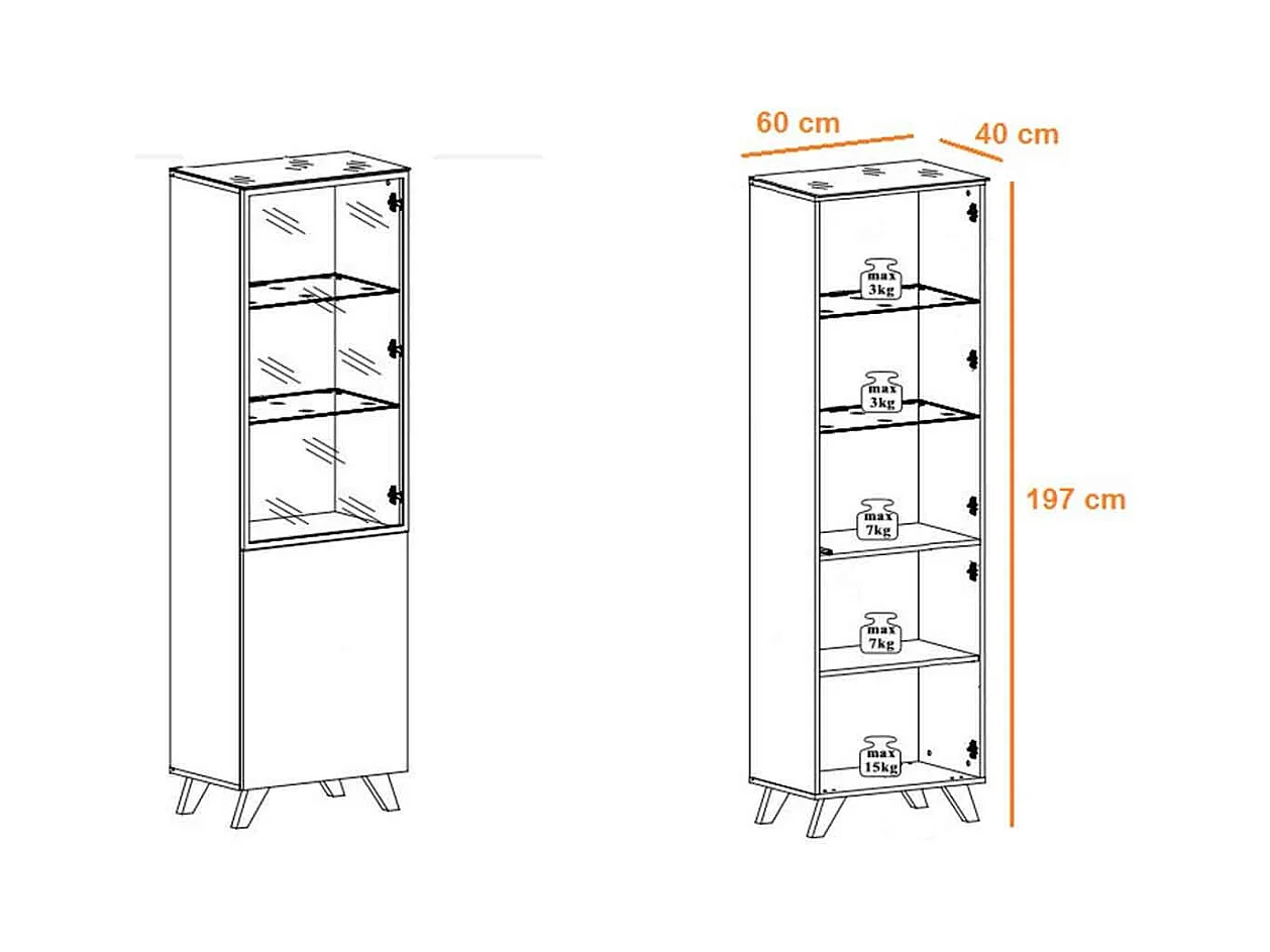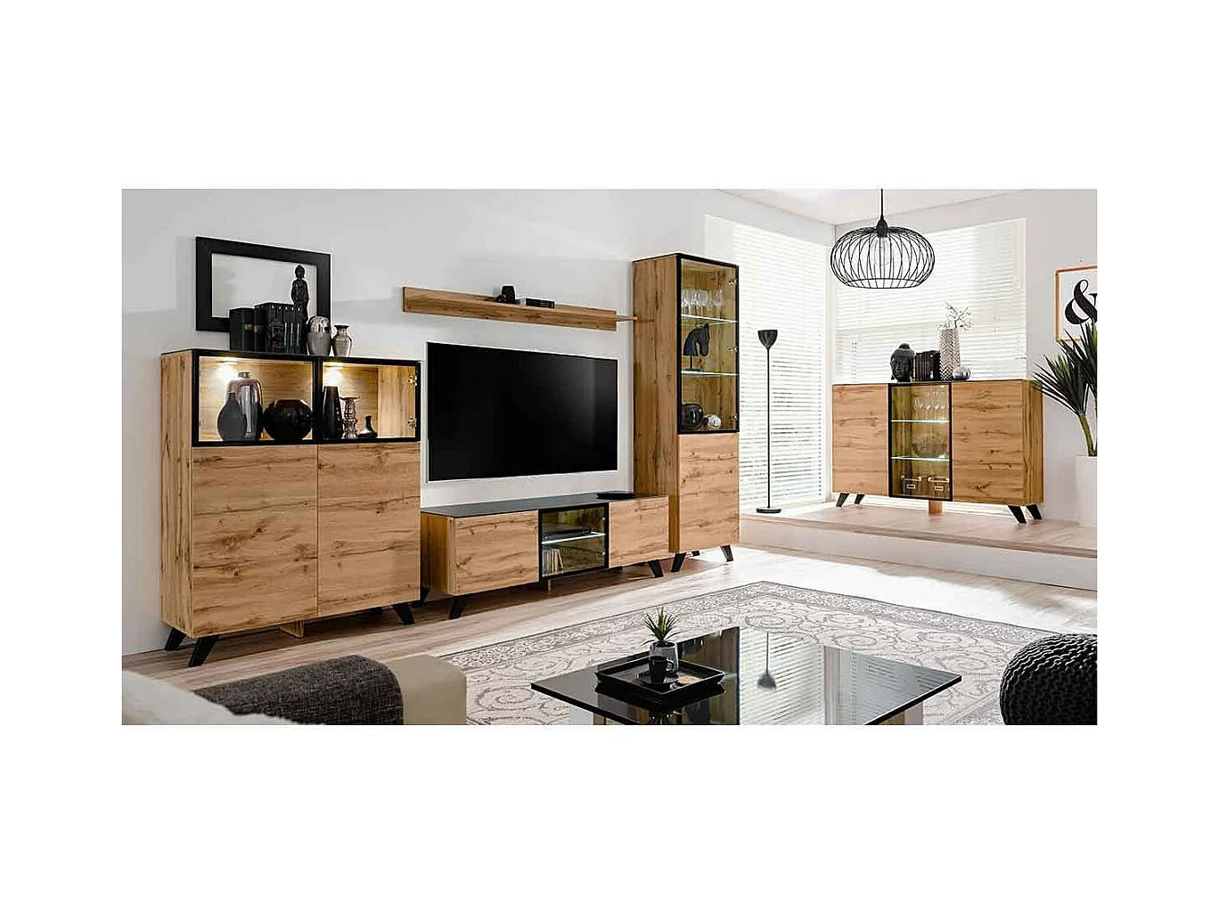 Vitrine LED "Thin" 197cm Noir & Naturel
