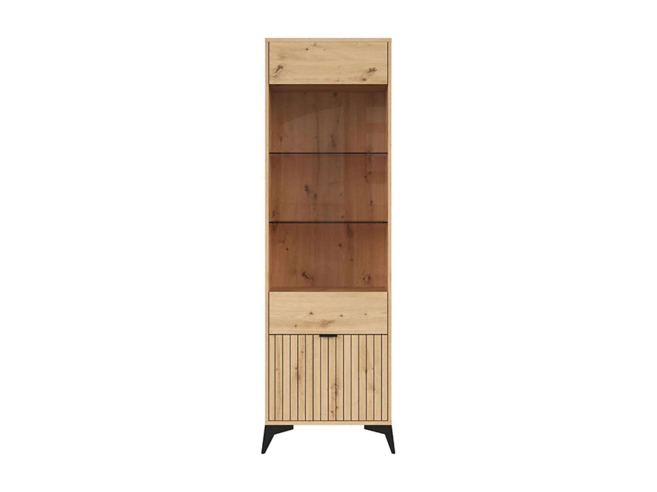 Vitrine haute avec 1 porte vitrée,coloris Chêne artisan - Longueur 60 x Profondeur 41 x Hauteur 197 cm