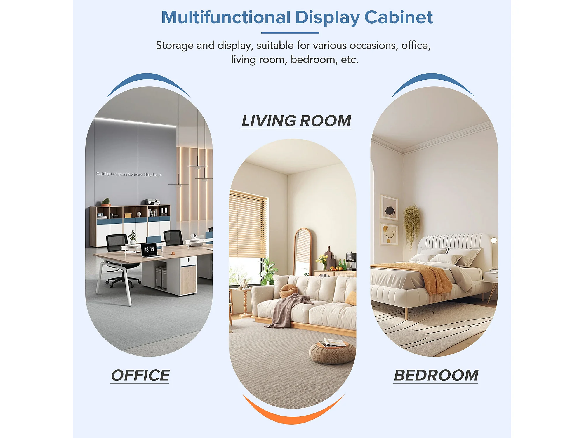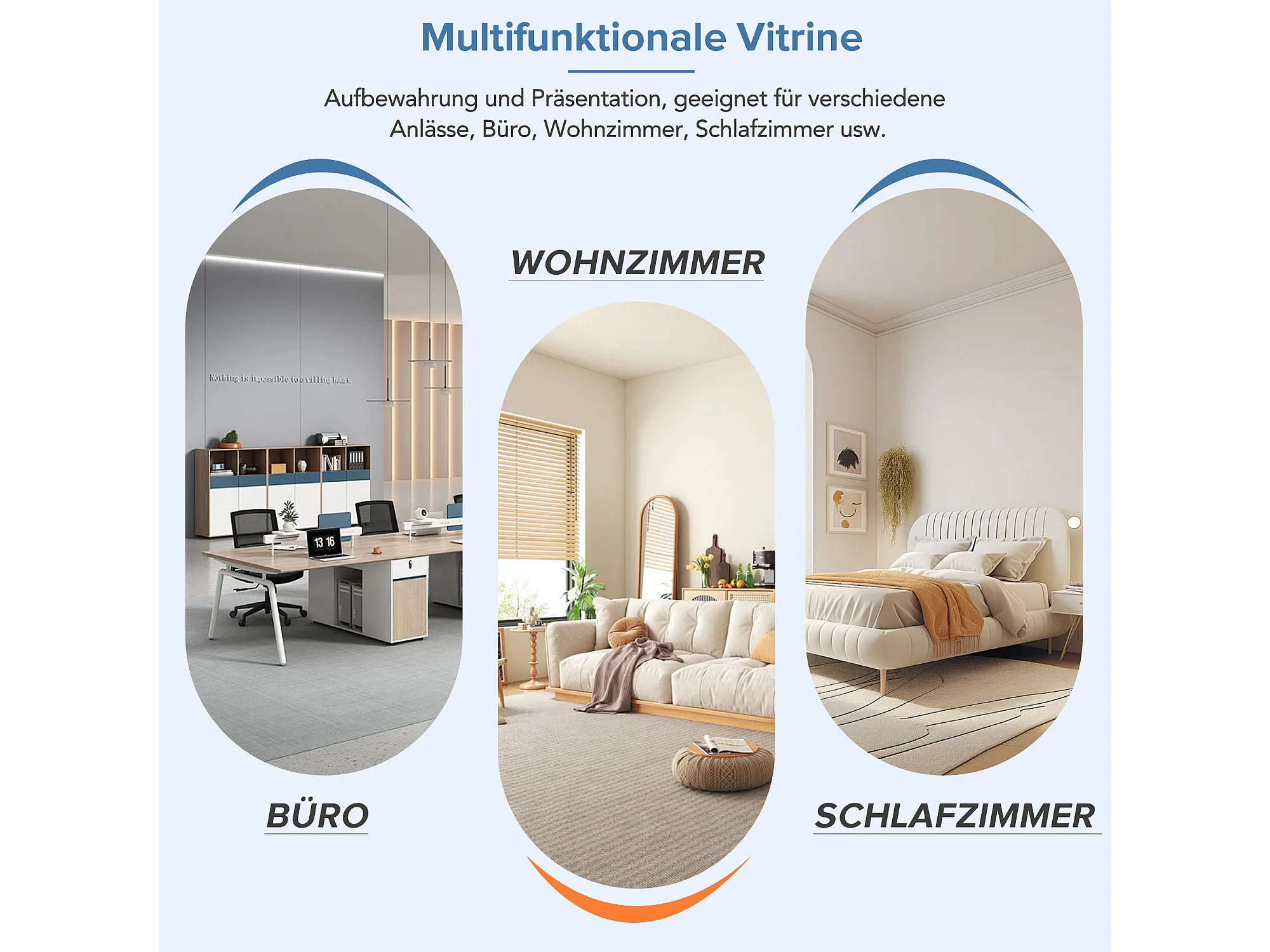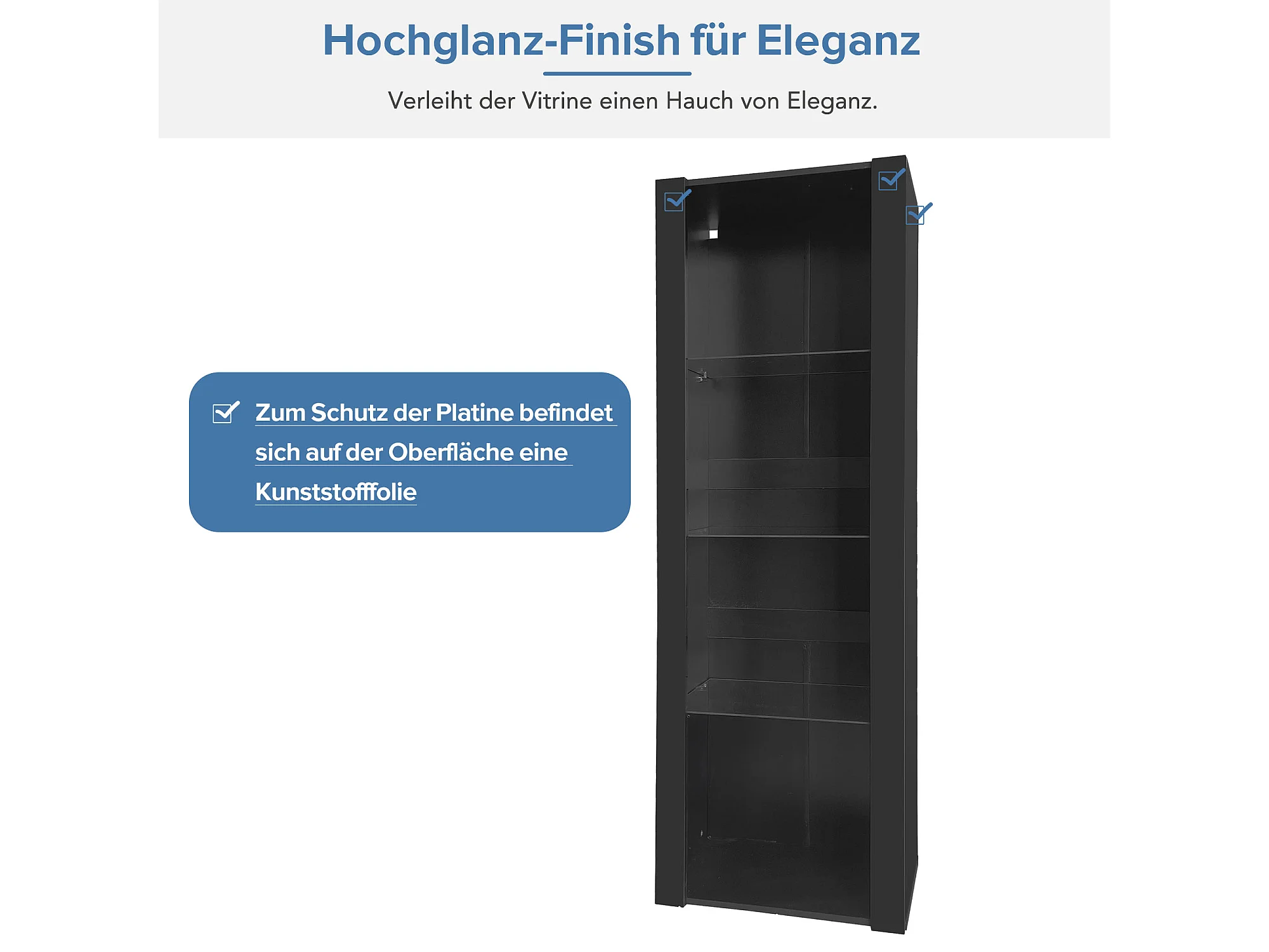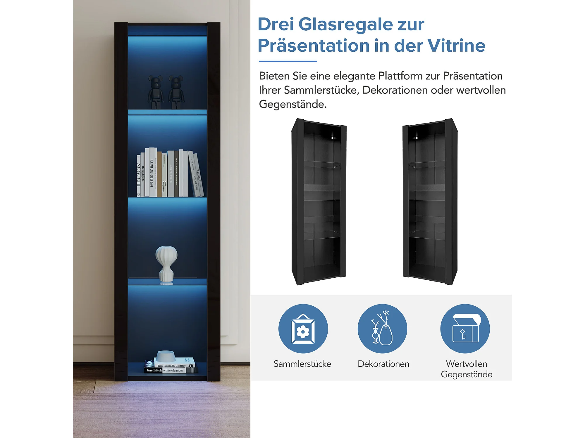 Vitrine haute brillance noire avec LED, 3 étagères en verre, MDF, noir (55x38x166 cm)