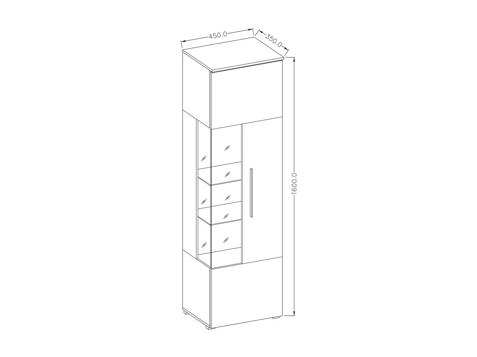 Vitrine haute design avec éclairage LED multicolore collection BOMBAY. Coloris gris brillant. Ouverture Droite