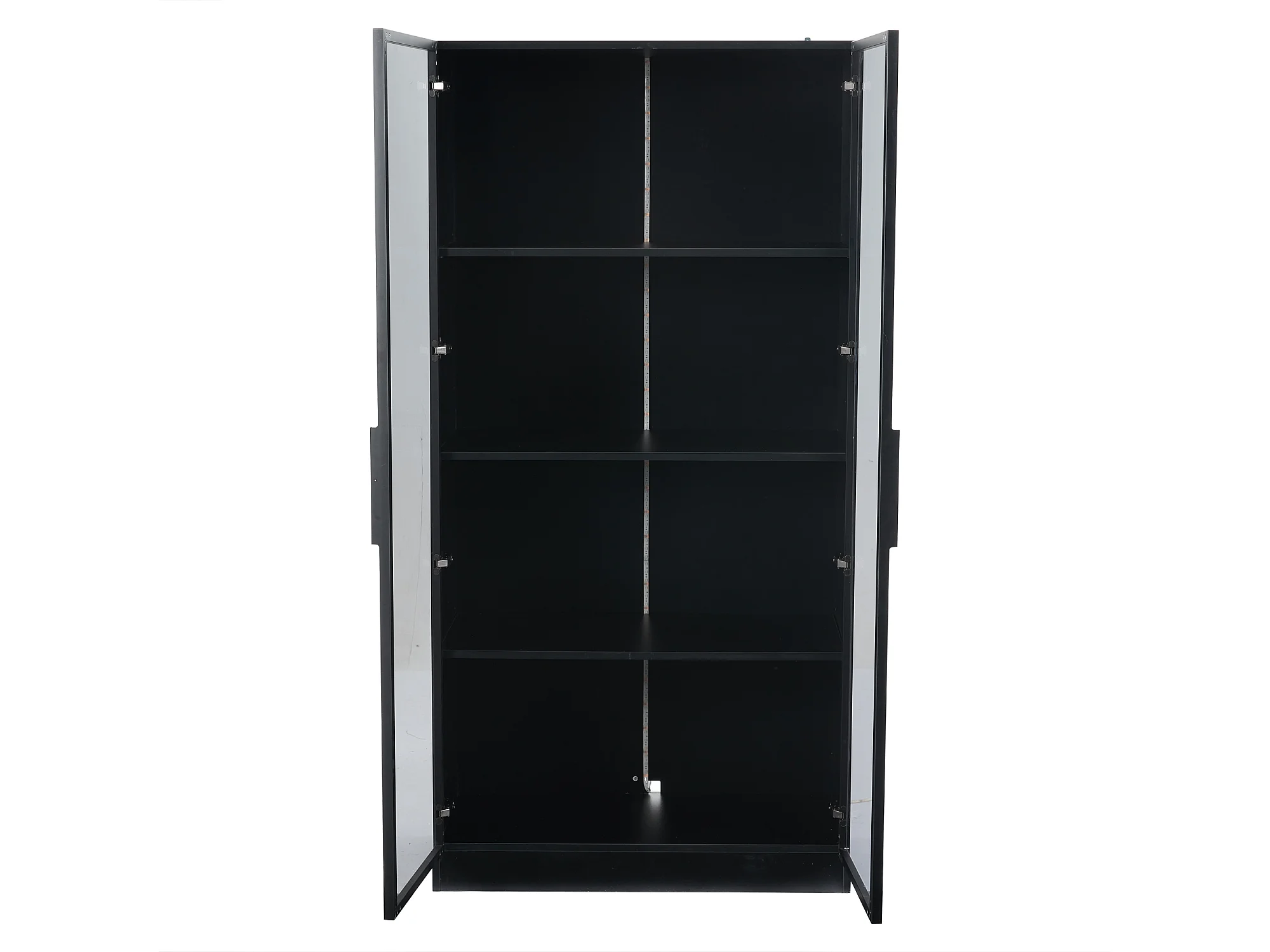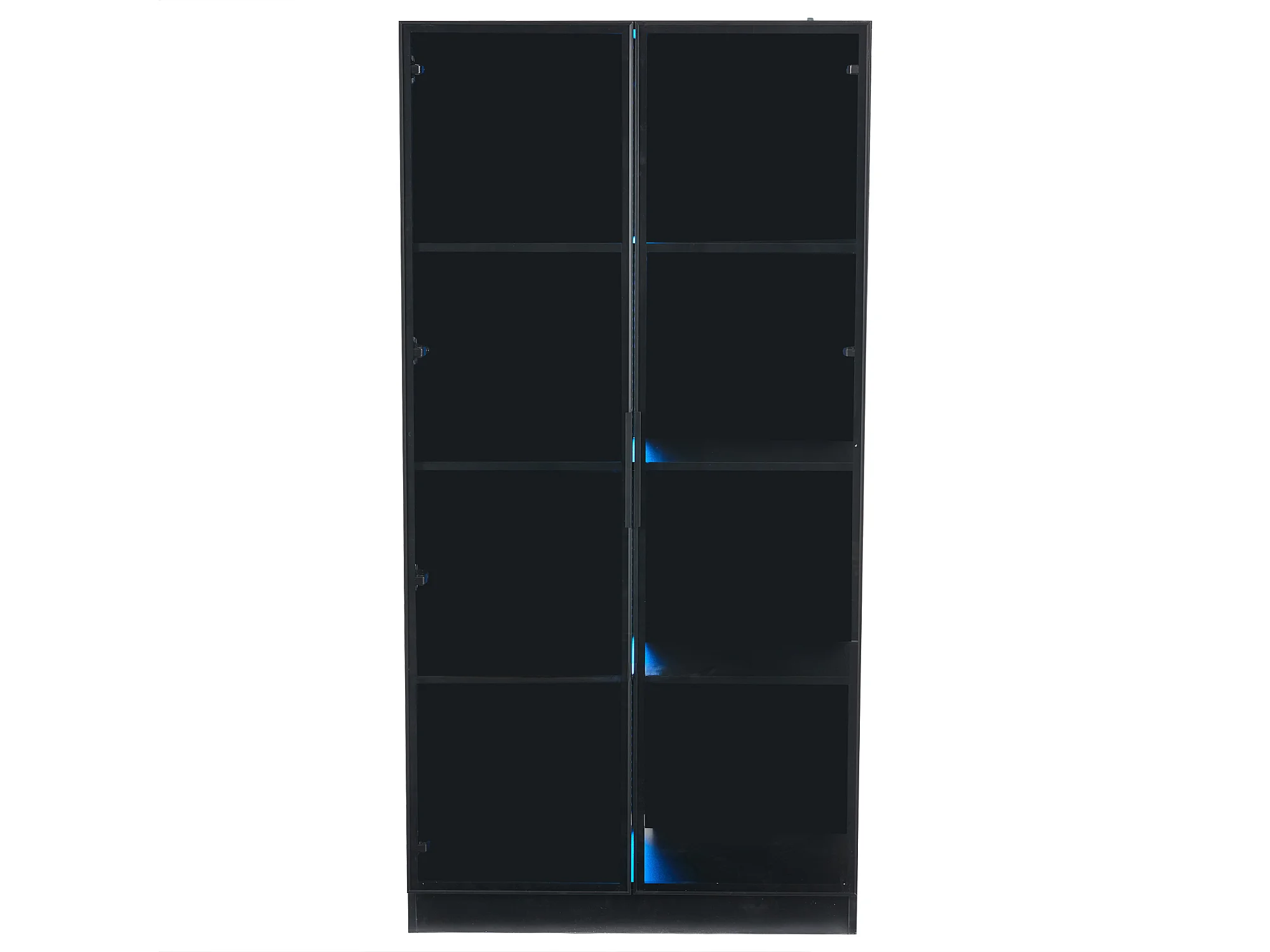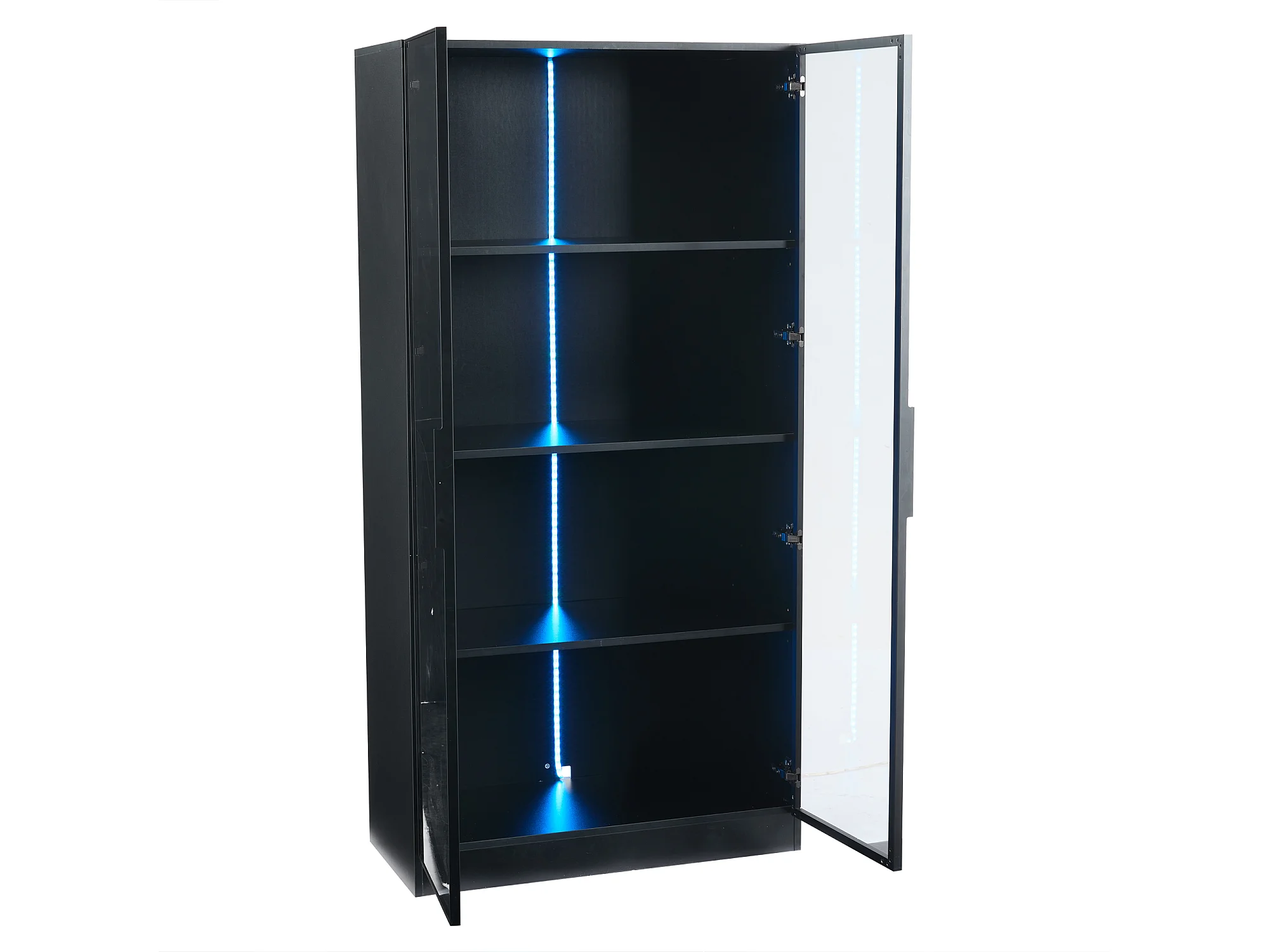 Vitrine LED 16 couleurs, 80x40x160 cm, avec 2 portes vitrées et étagères réglables, noir - pour salon et bureaux