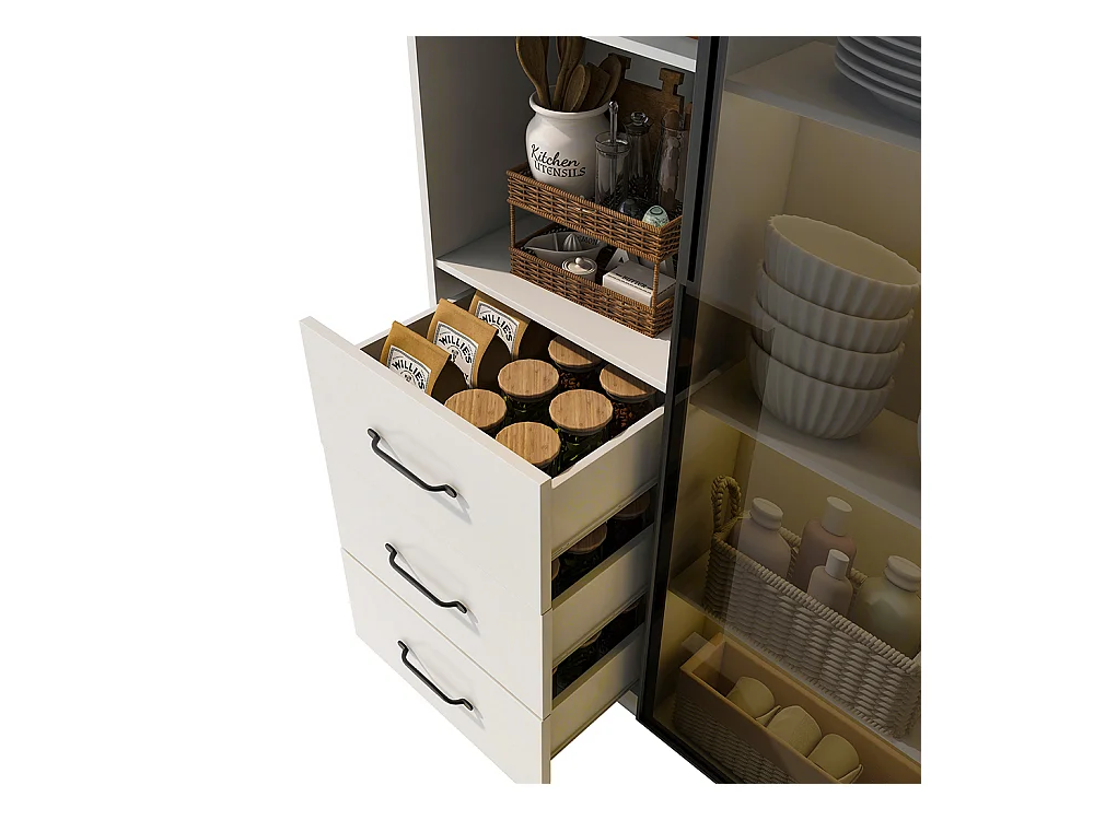 Vitrine LED armoire multifonction compartiments verre ouverts charnières douces LED multicolore étanche poussière