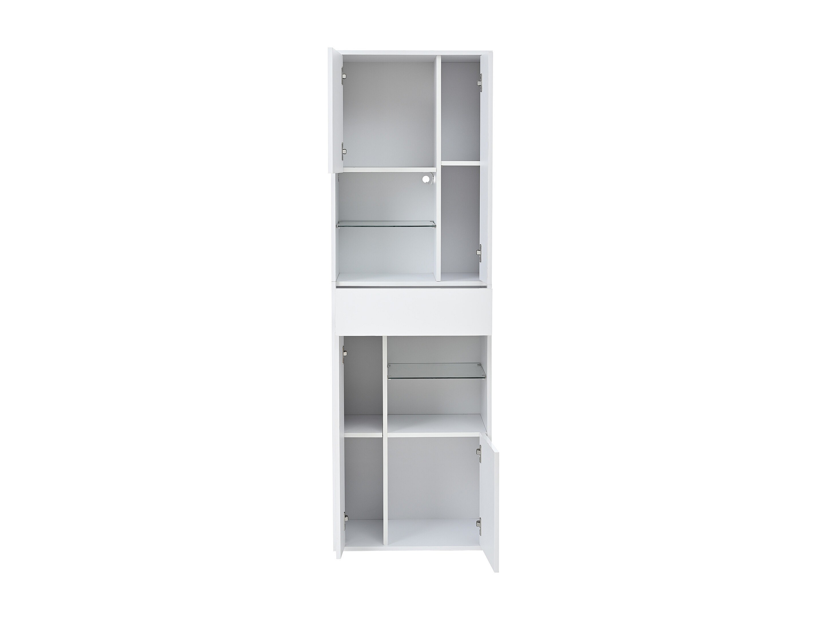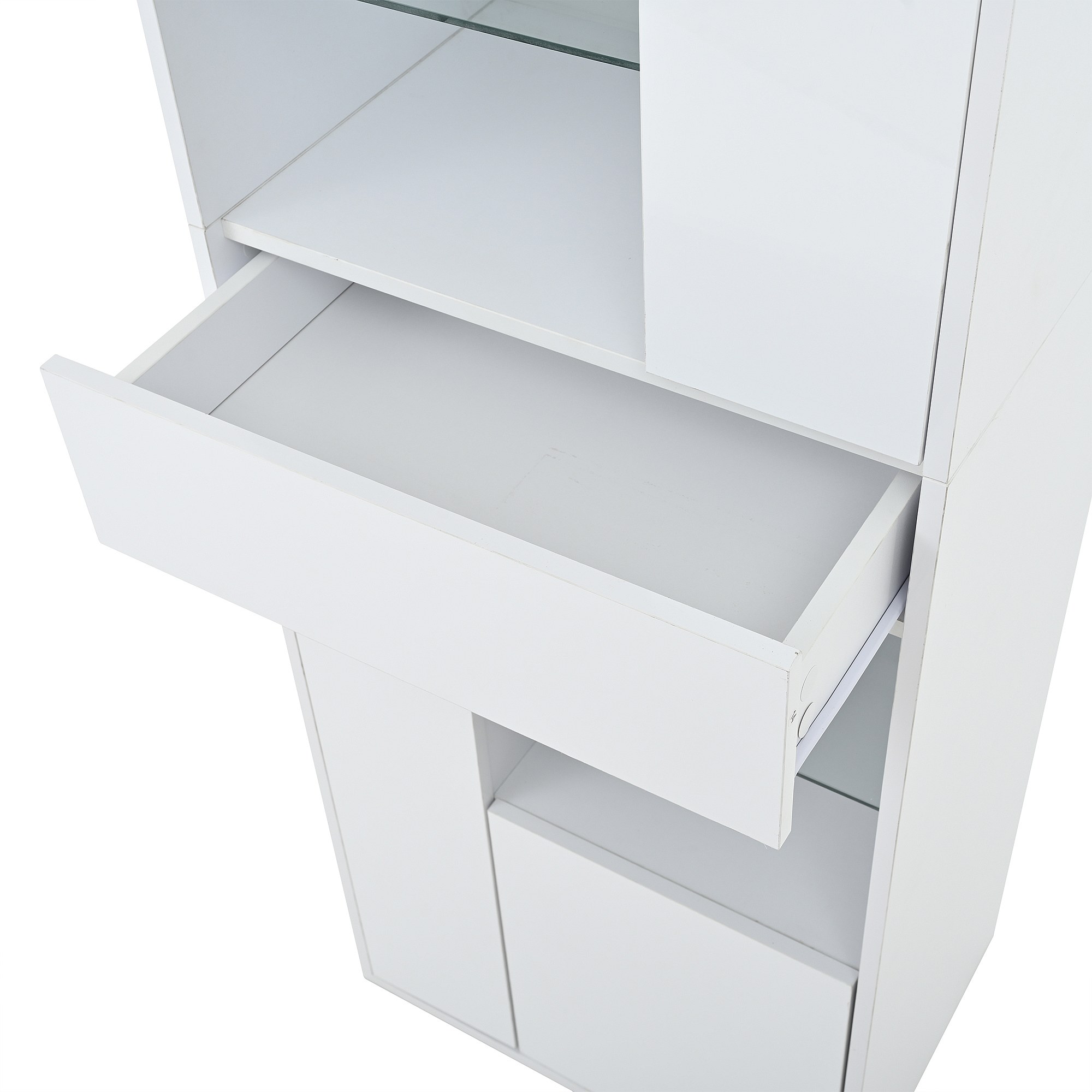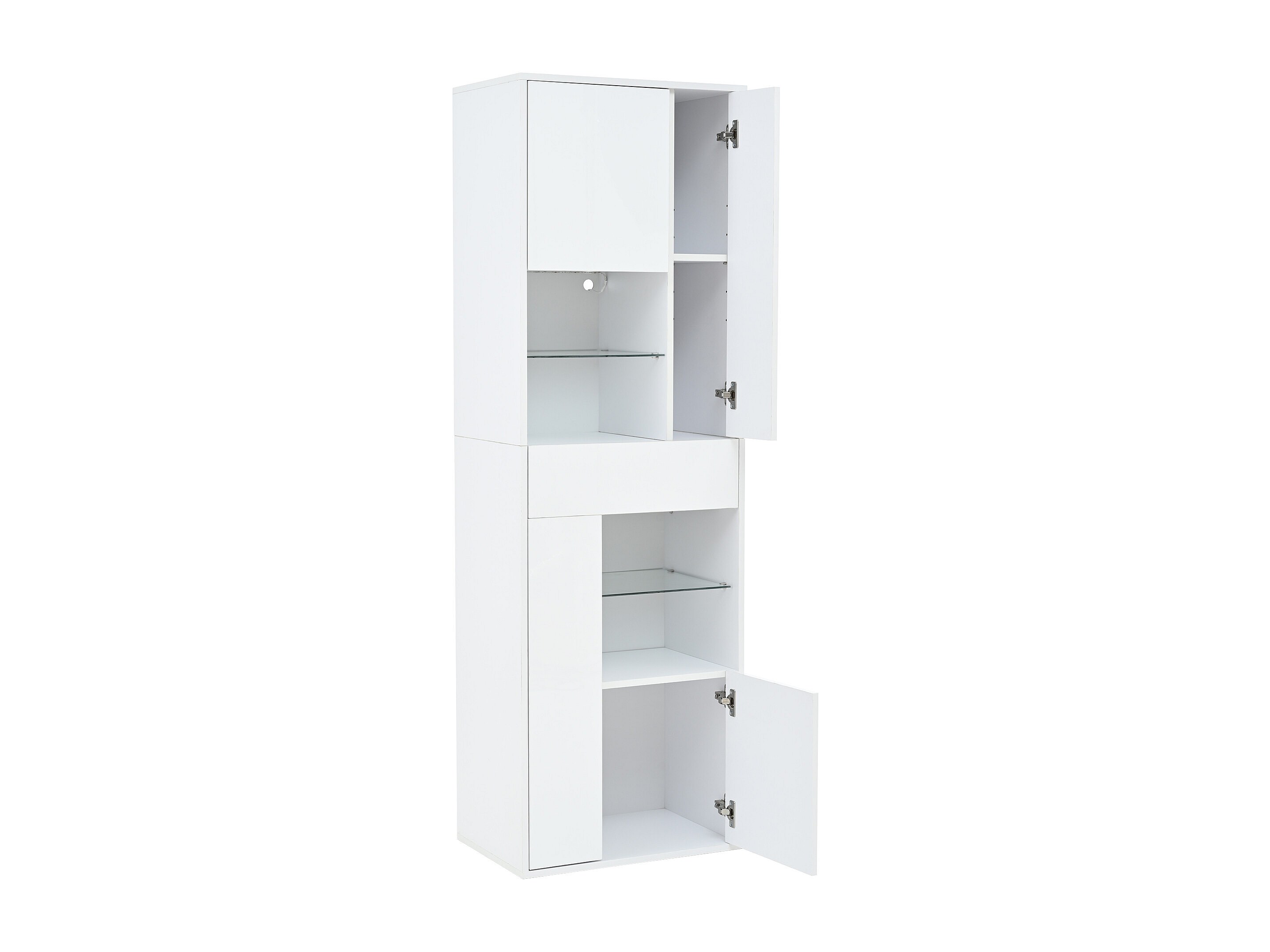 Vitrine LED avec 1 tiroir de rangement et 4 portes, étagères en verre - blanc