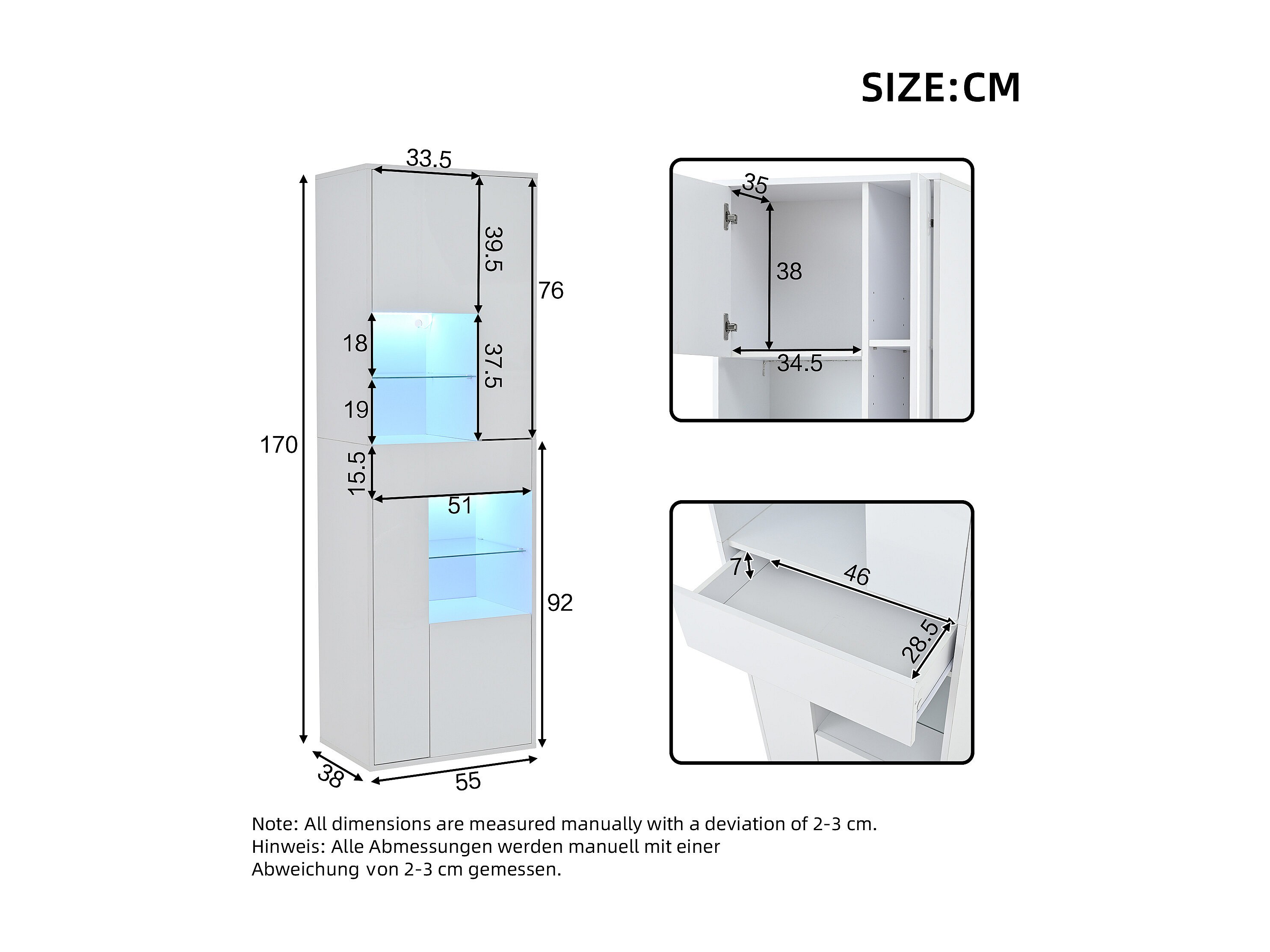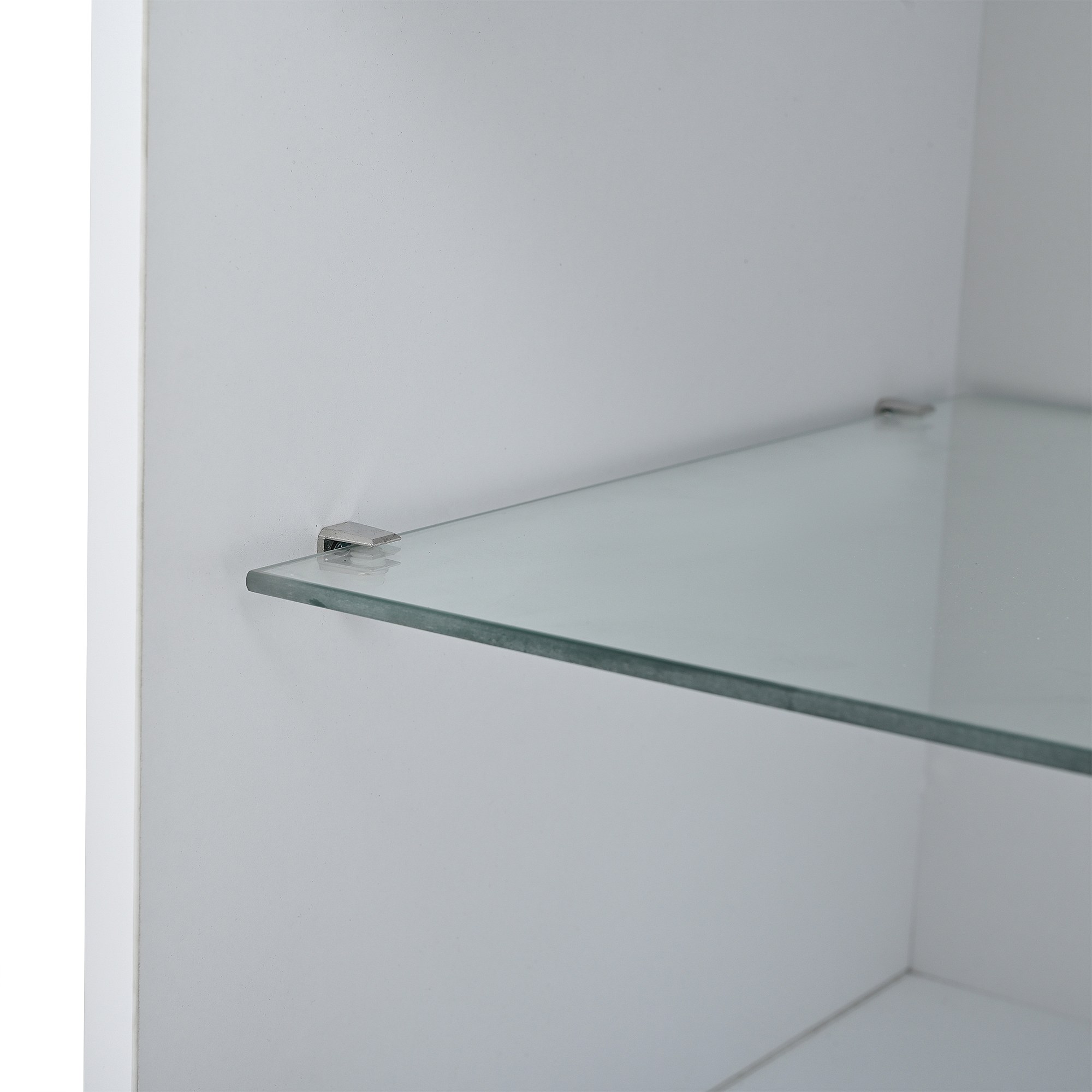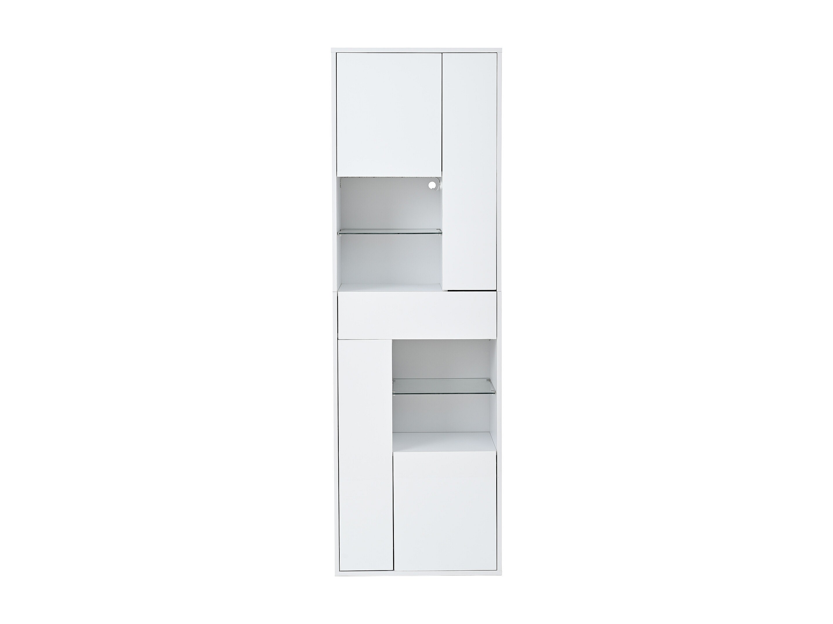 Vitrine LED avec 1 tiroir de rangement et 4 portes, étagères en verre - blanc