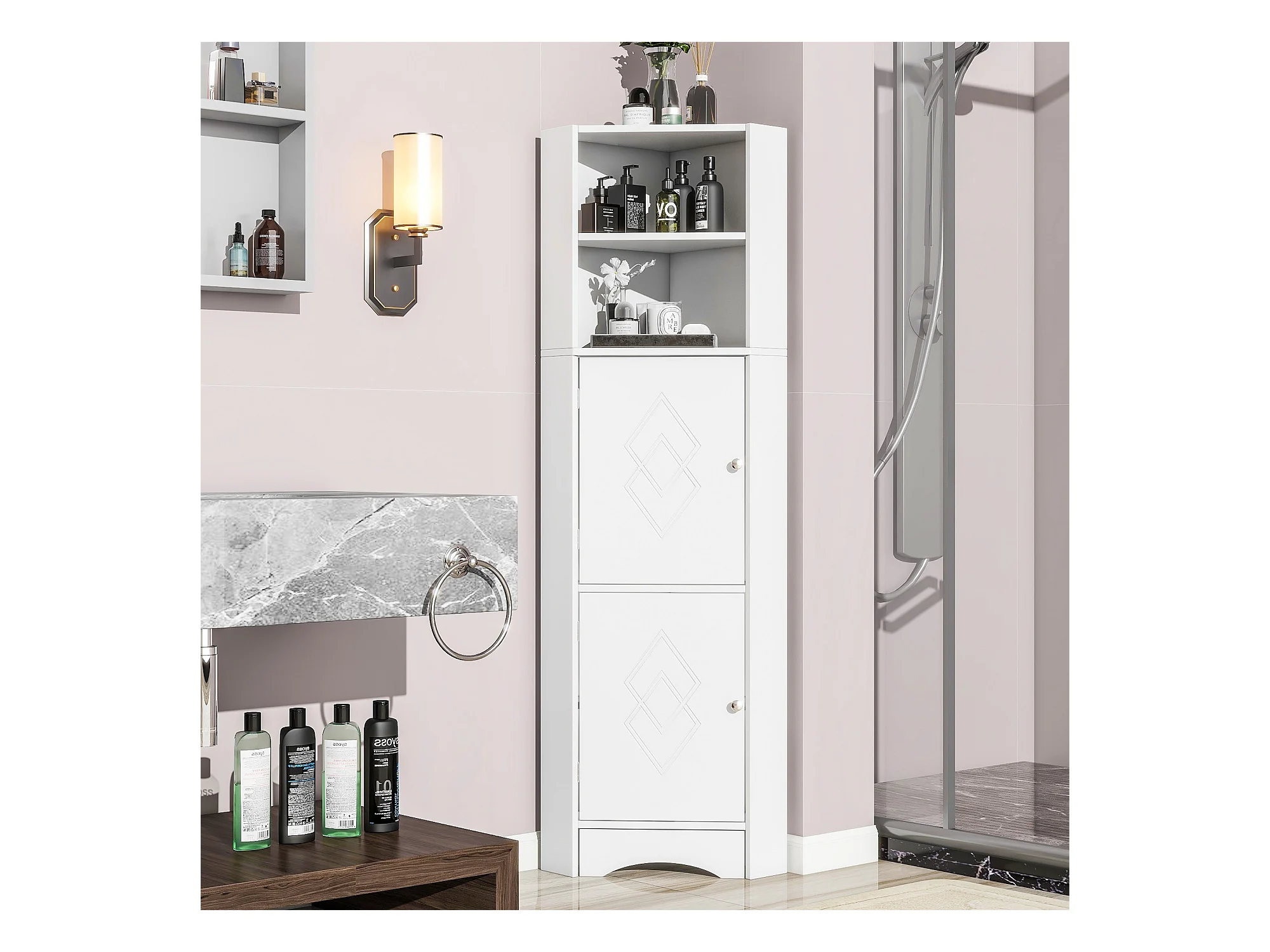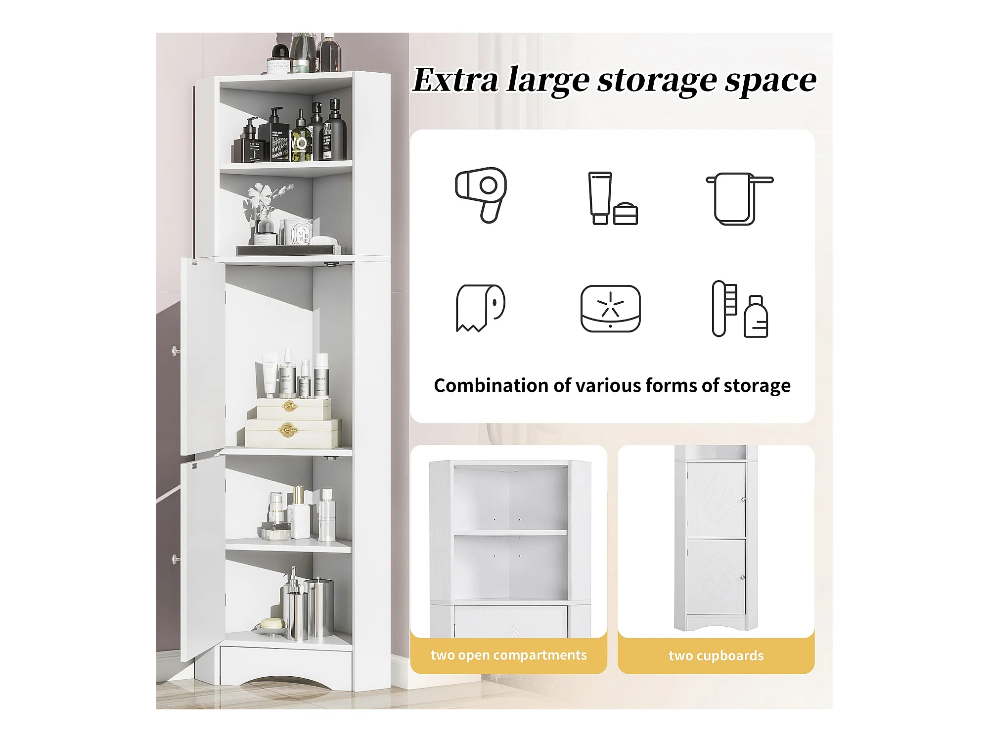 Vitrine, meuble d'angle avec deux compartiments, compartiment ouvert, 36,5 x 36,5 x 155 cm, blanc