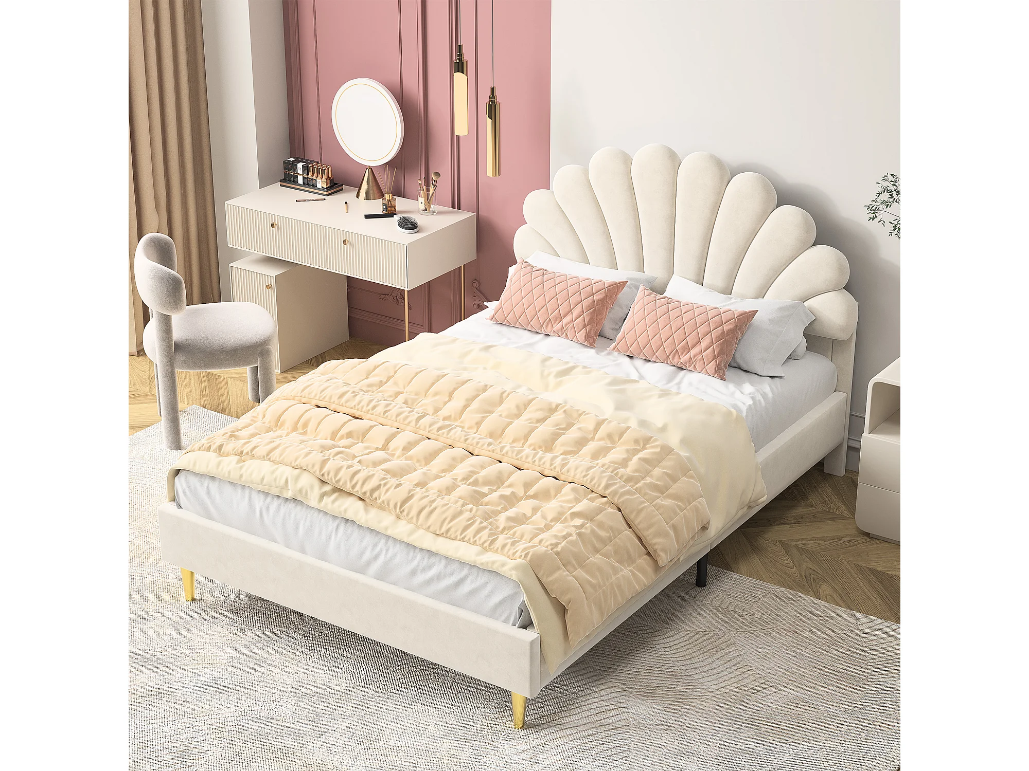 Lit rembourré 140x200 cm, lit double avec dossier de tête de lit en velours en forme de nuage, lit rembourré sans matelas, sommier à lattes, lit jeune, lit enfant