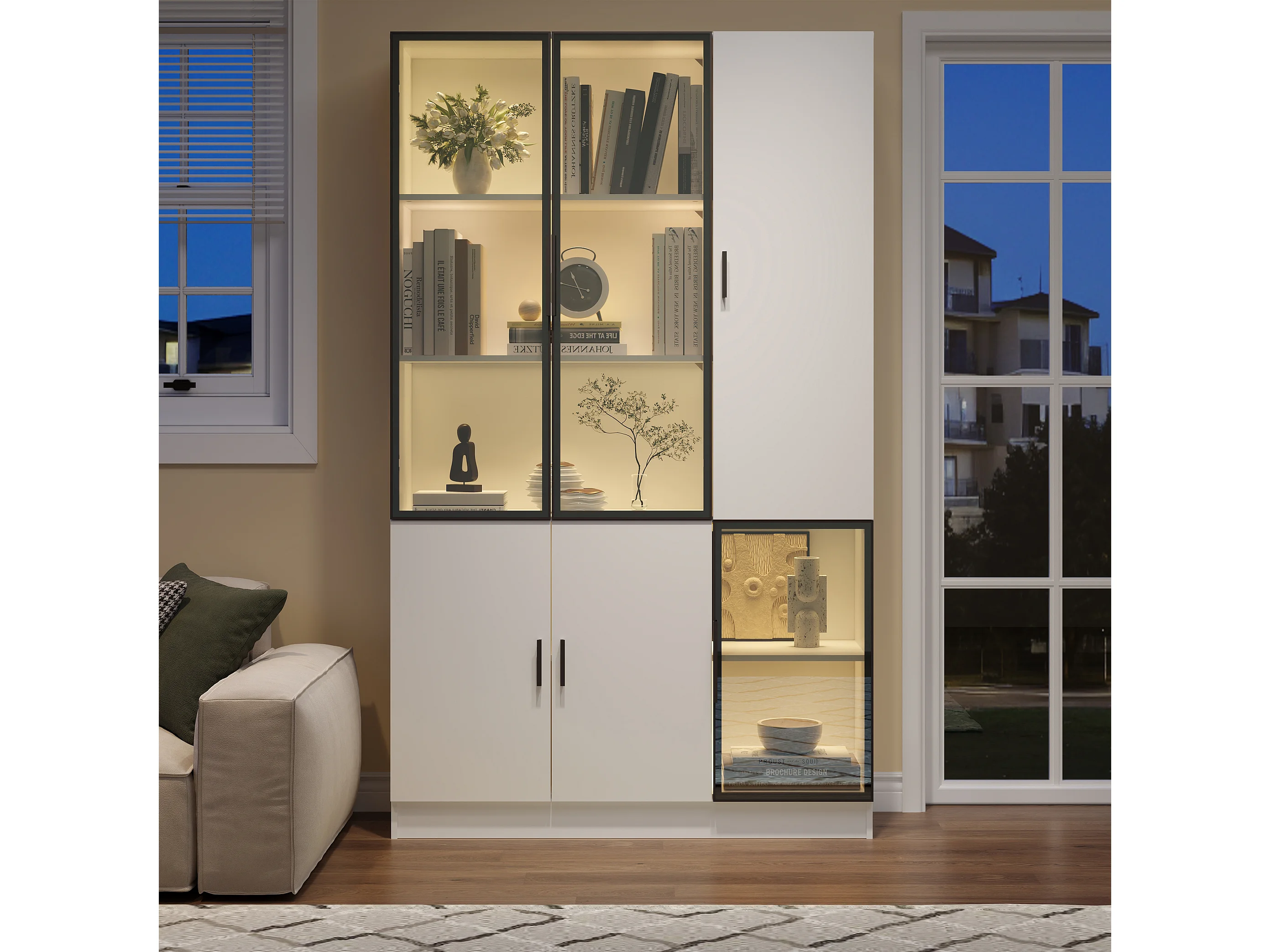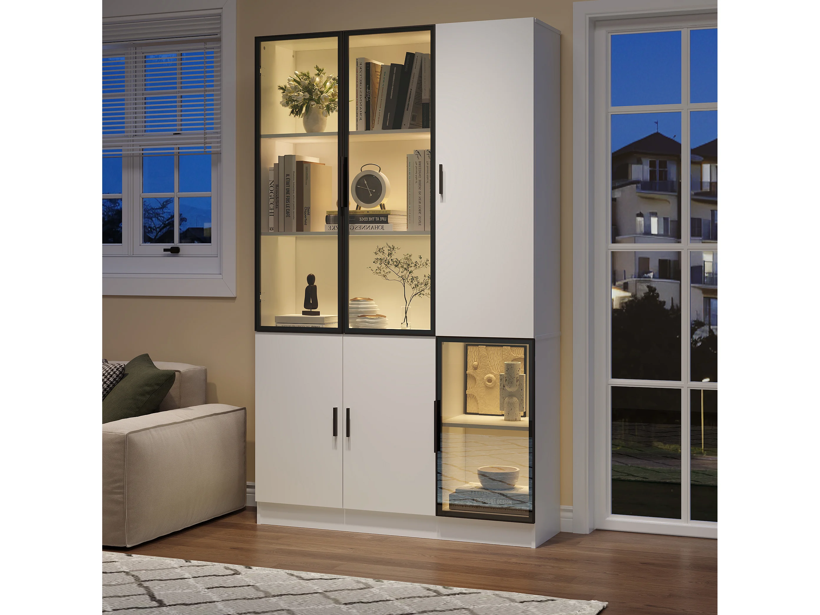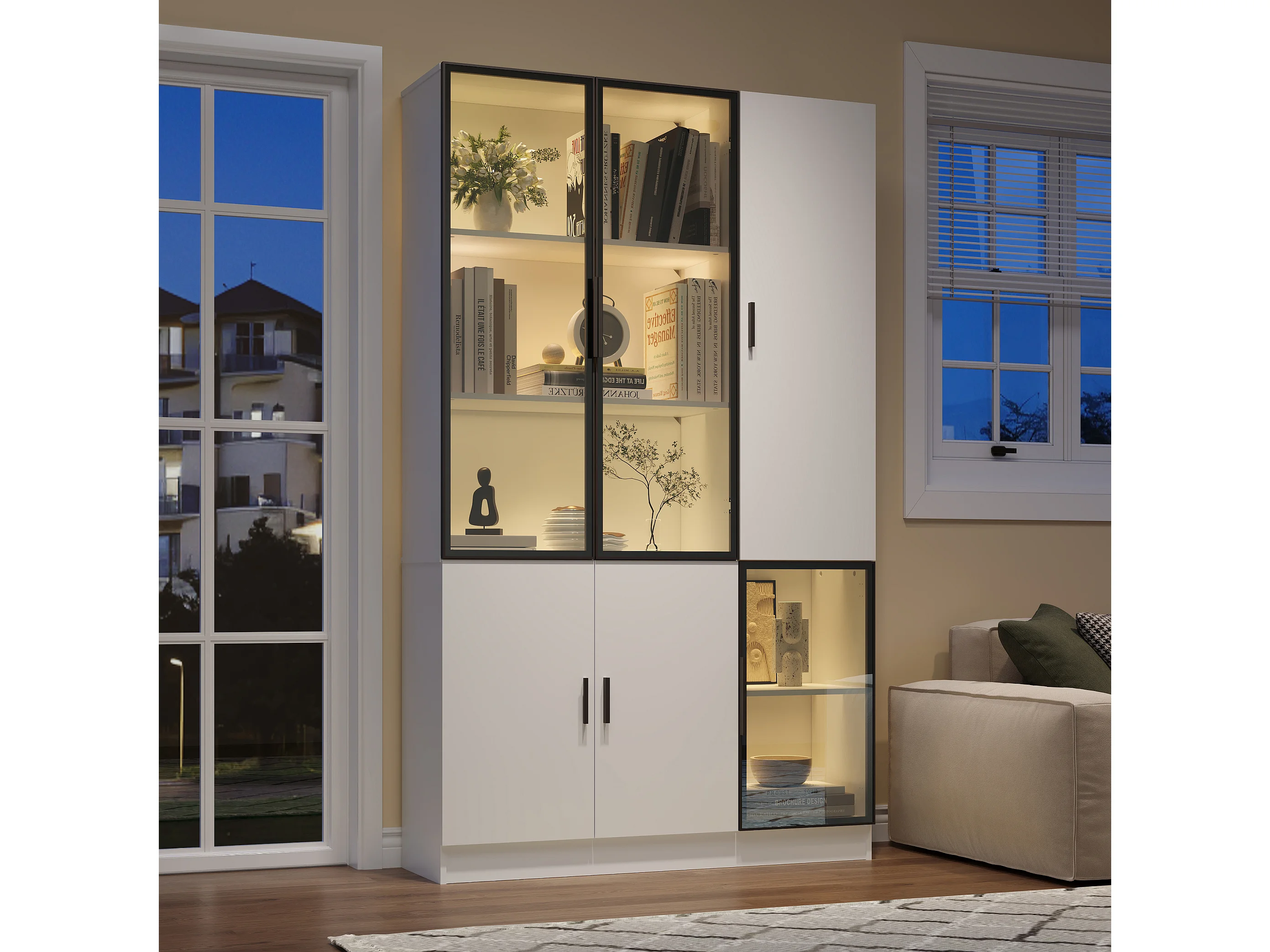 Vitrine moderne - 120 x 35 x 200 cm - avec 3 portes en verre + Leds - MDF + verre - blanc