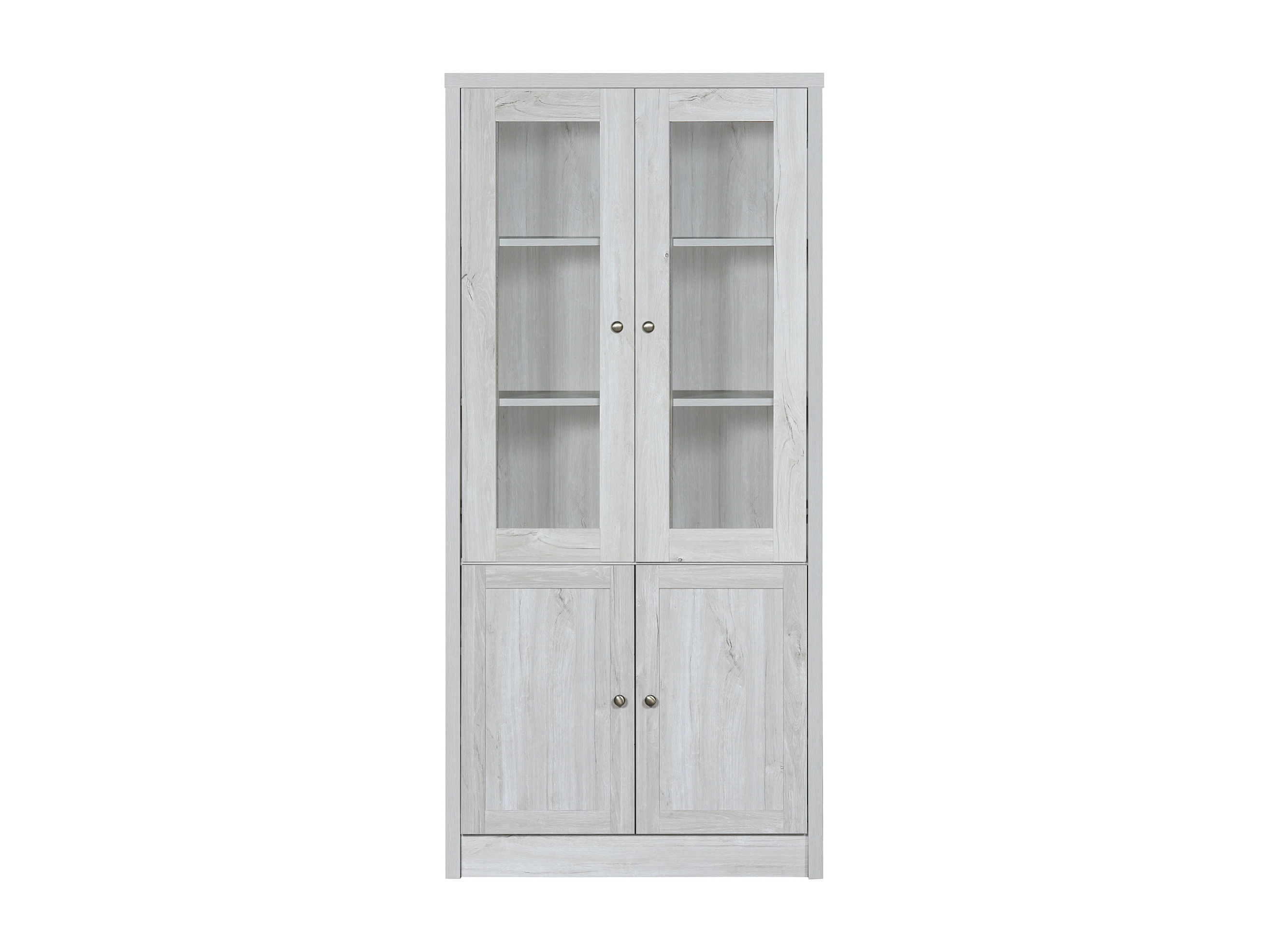 Vitrine moderne 80x34x171 cm - Extérieur en bois, portes en verre, 2 portes en bois et poignées en laiton
