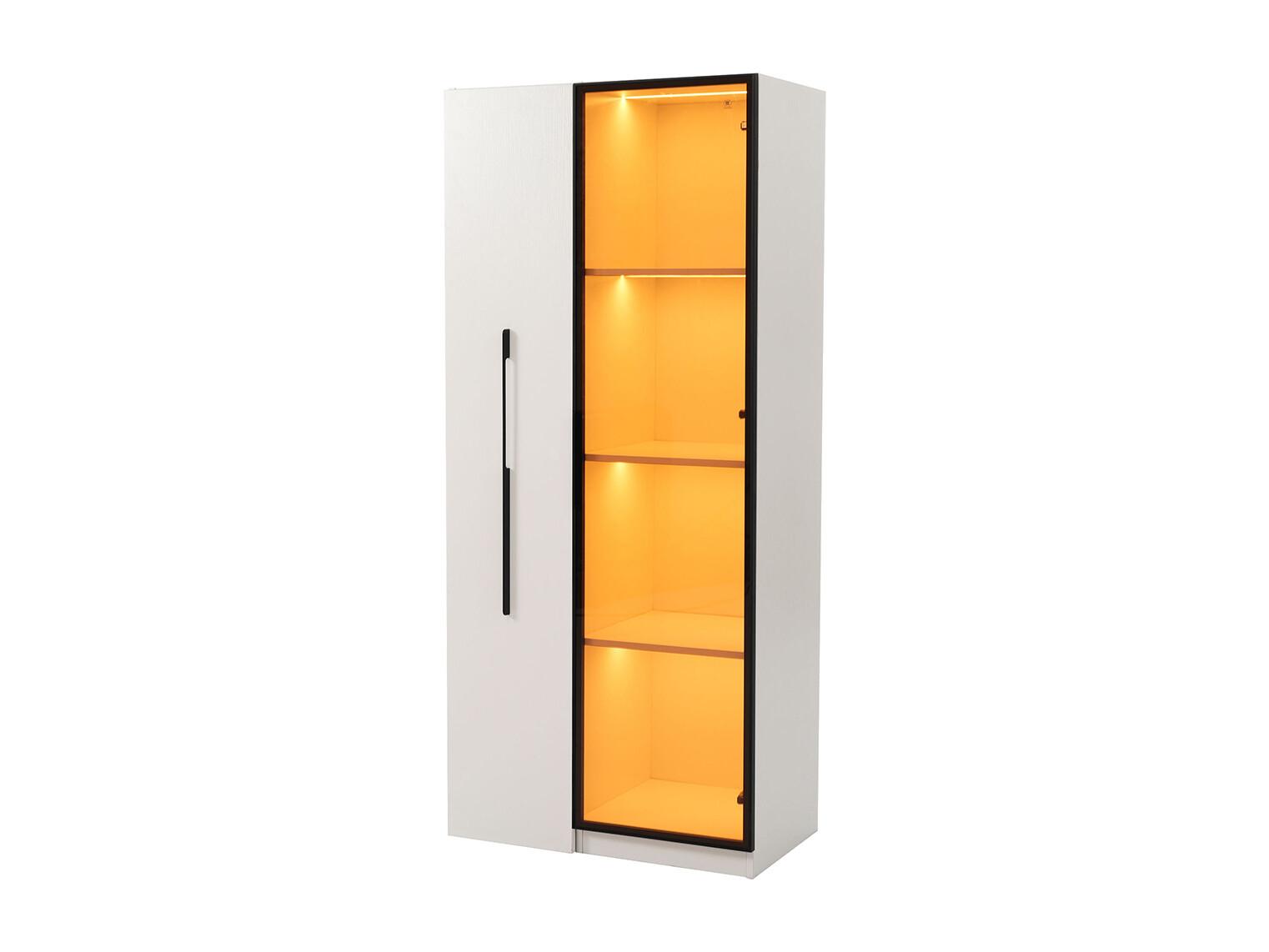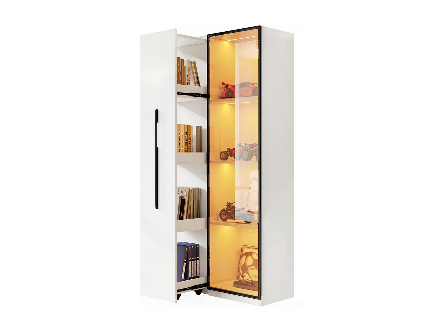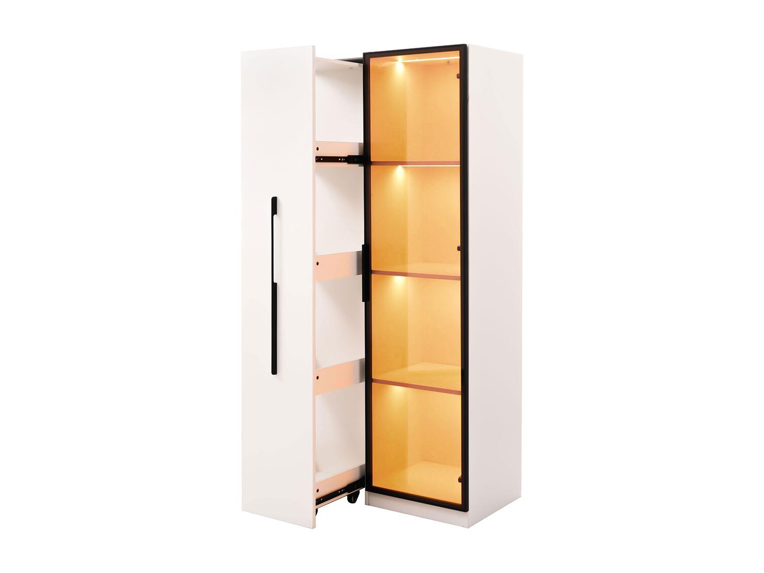 Vitrine multifonction bibliothèque portes verre trempé aluminium 1 porte 1 tiroir roulettes LED salle manger