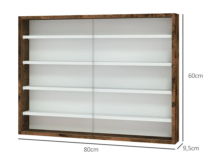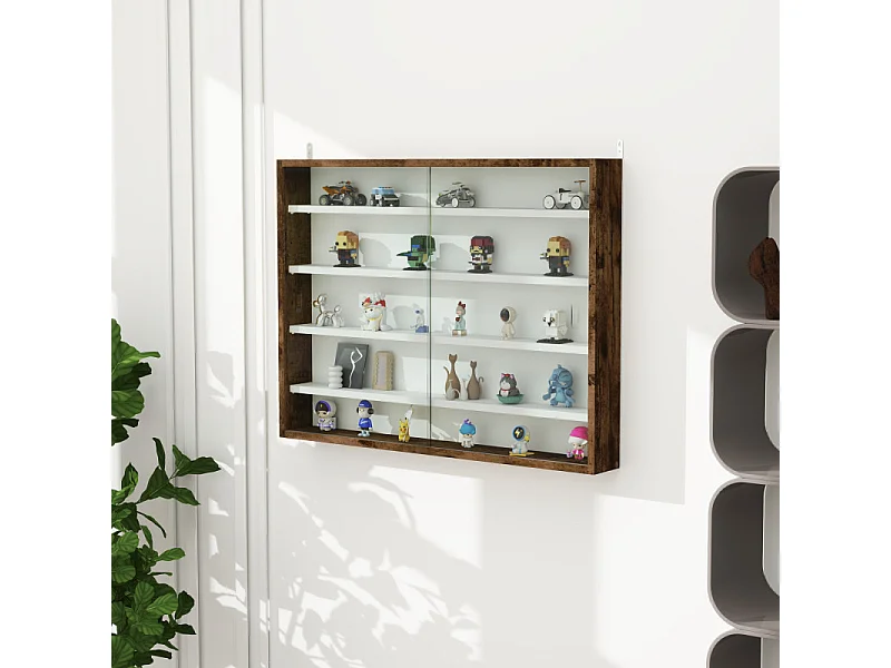 Vitrine murale 5 niveaux HEROISMO blanc et effet bois vieilli