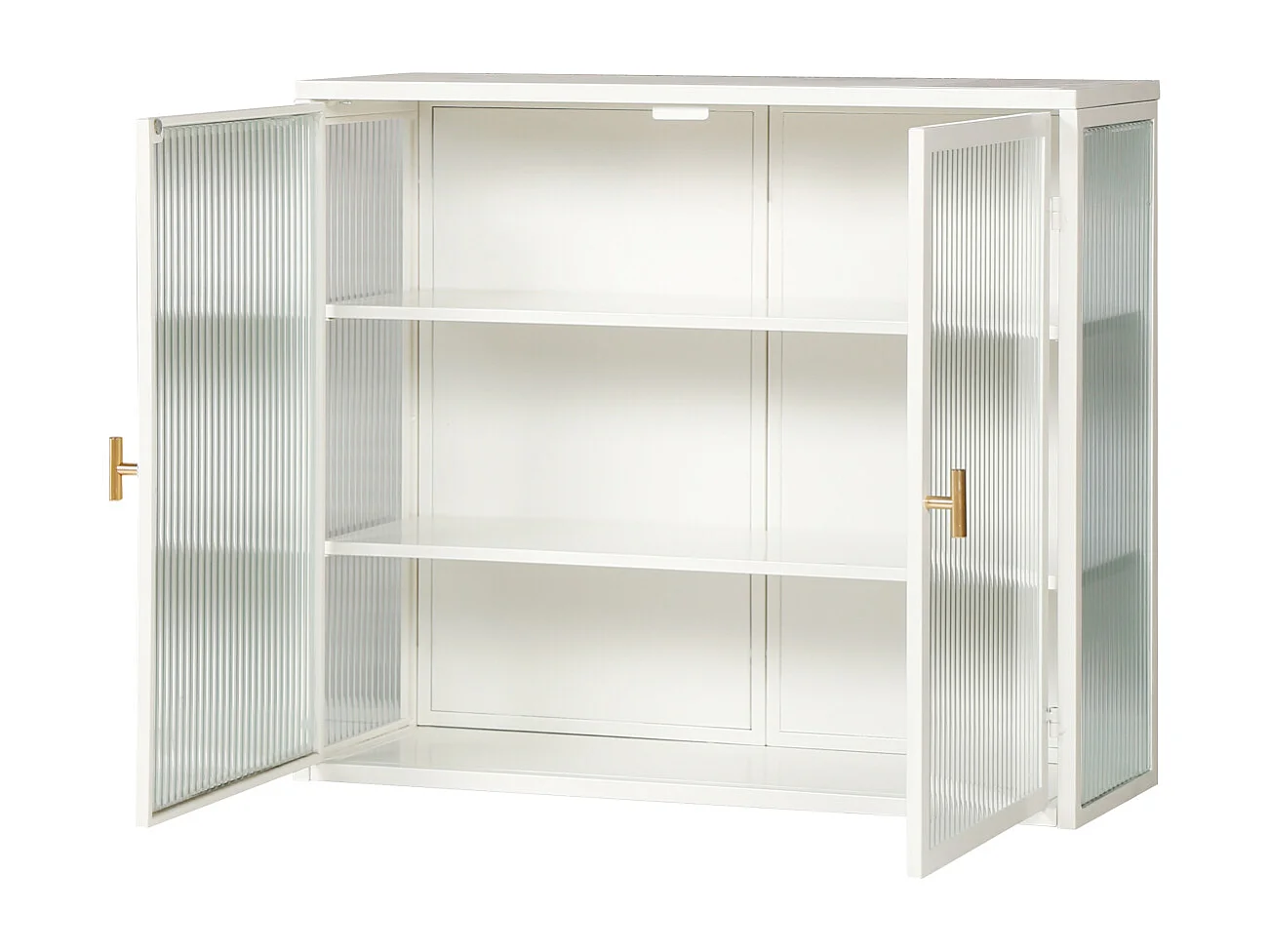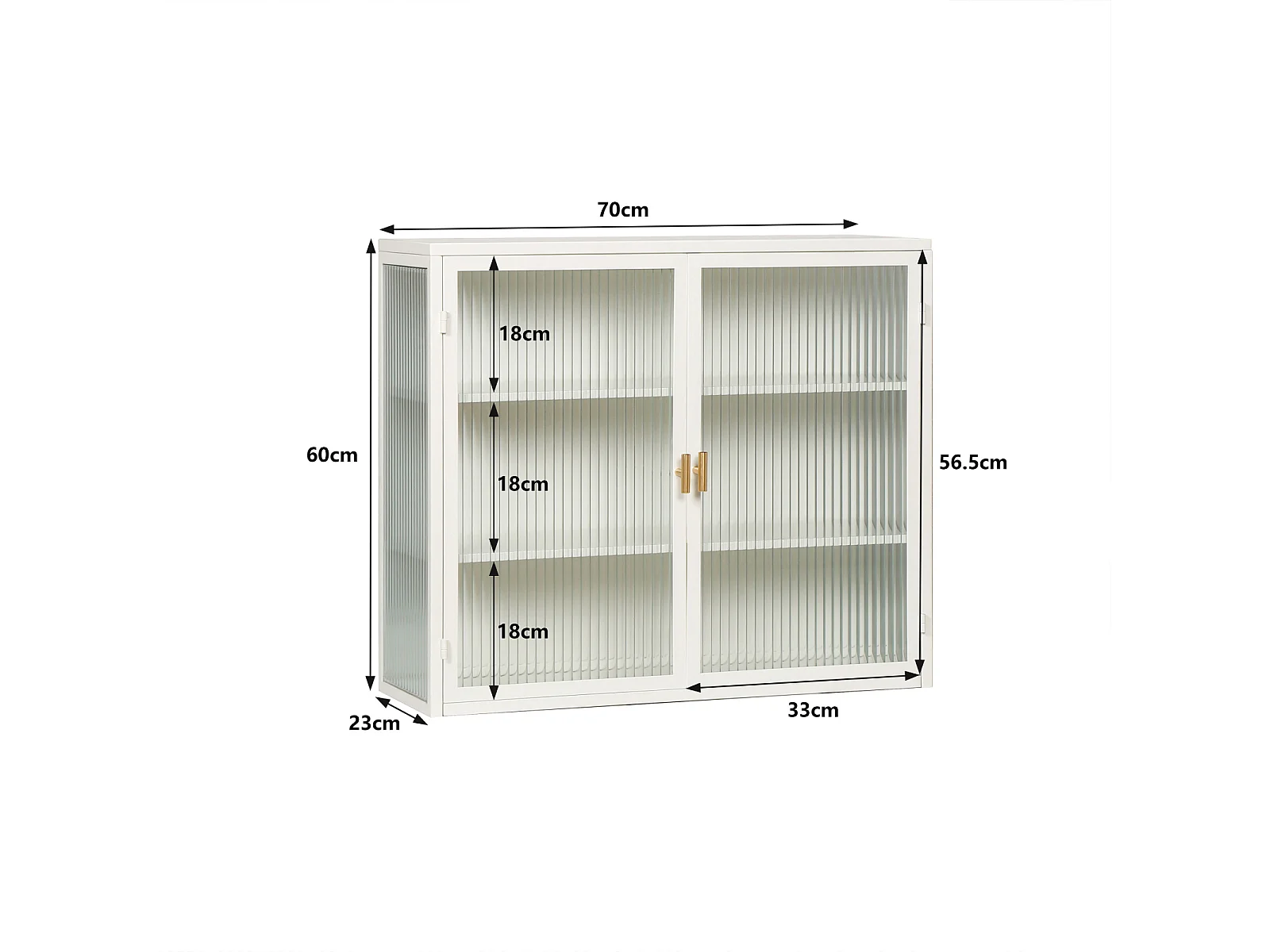 Vitrine Murale de Cuisine avec Portes en Verre, 3 Niveaux de Rangement, Salon ou Salle de Bain,Blanc