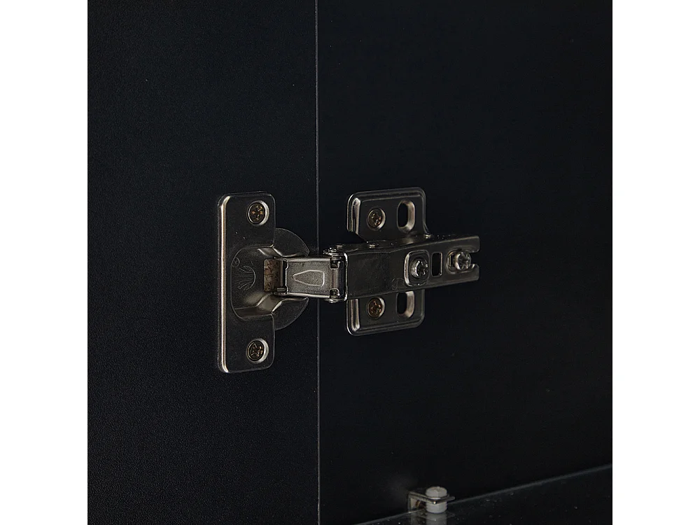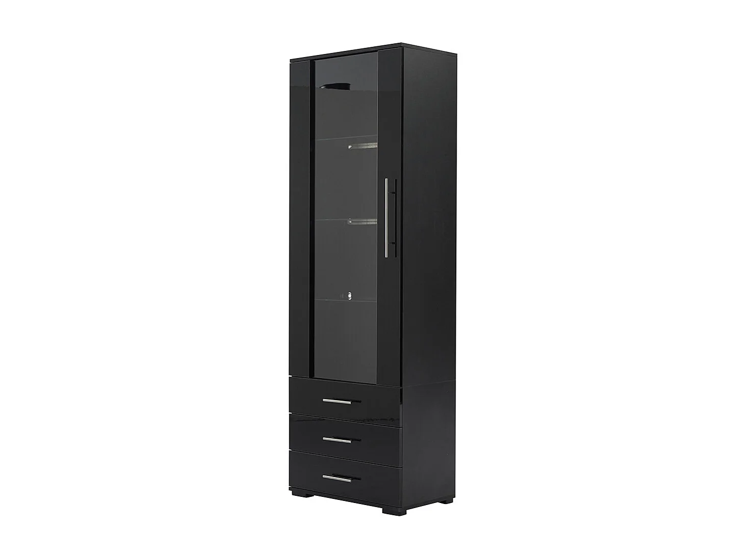 Vitrine noire brillante verre pied éclairage LED verticale 3 tiroirs