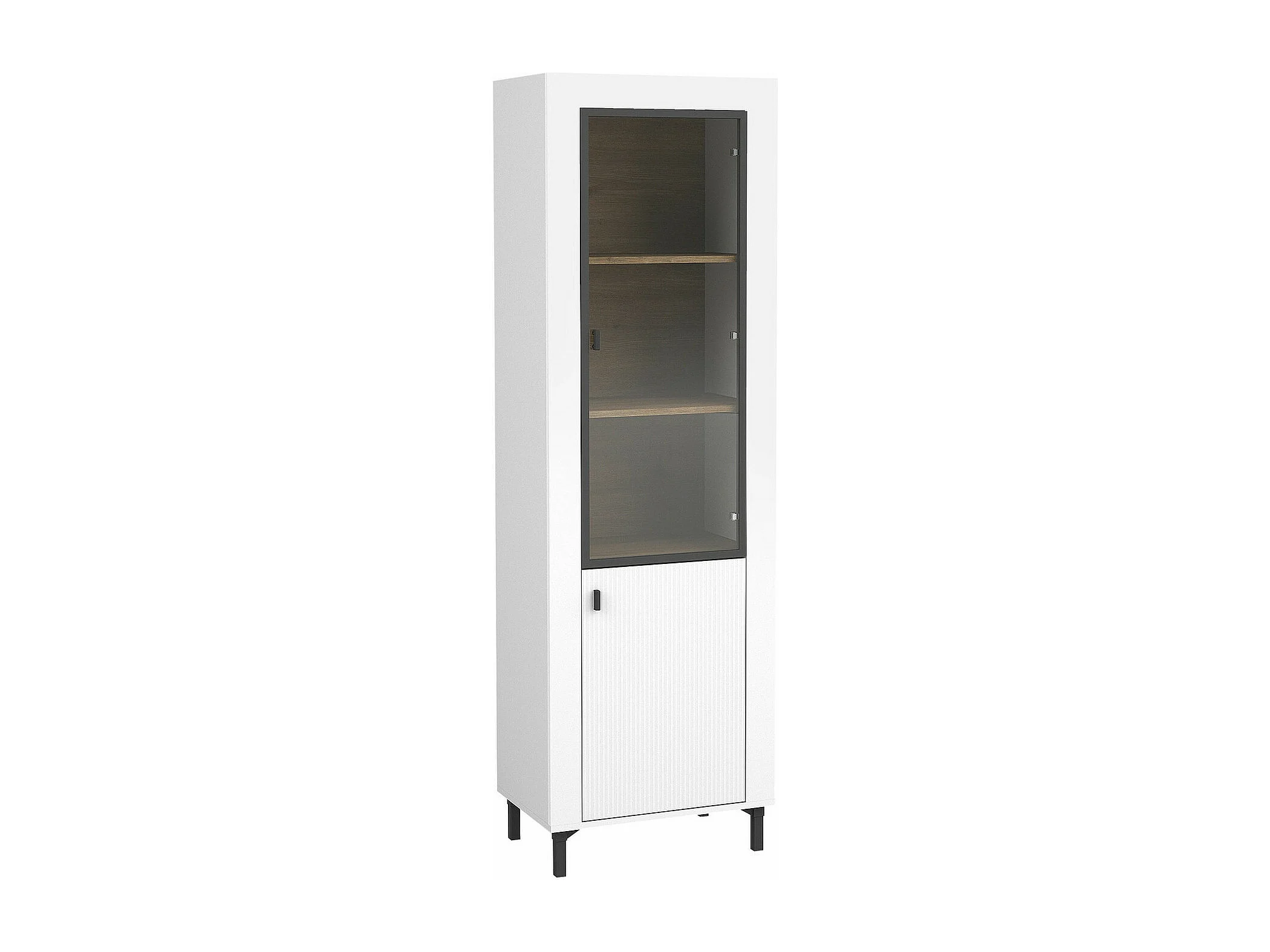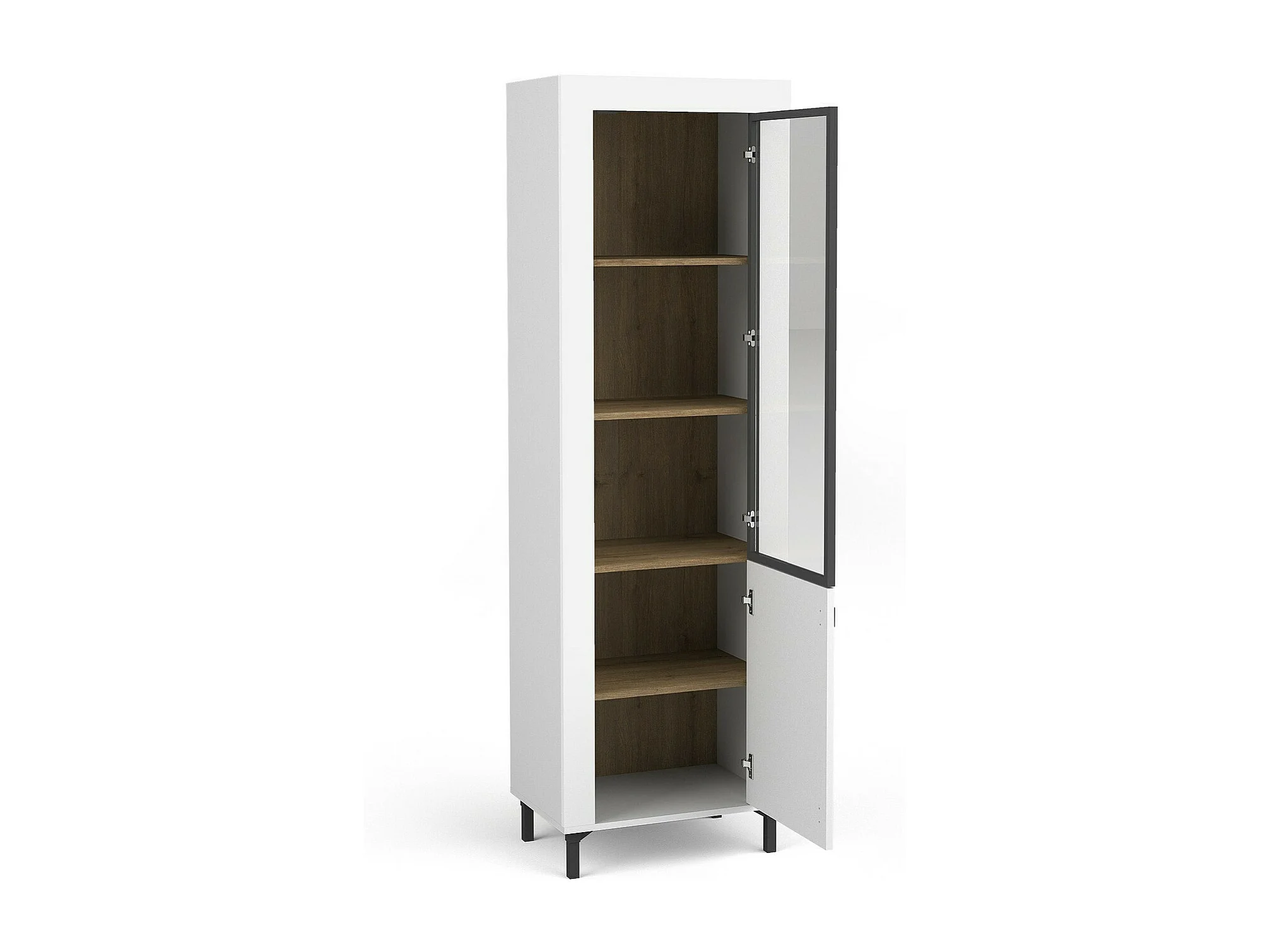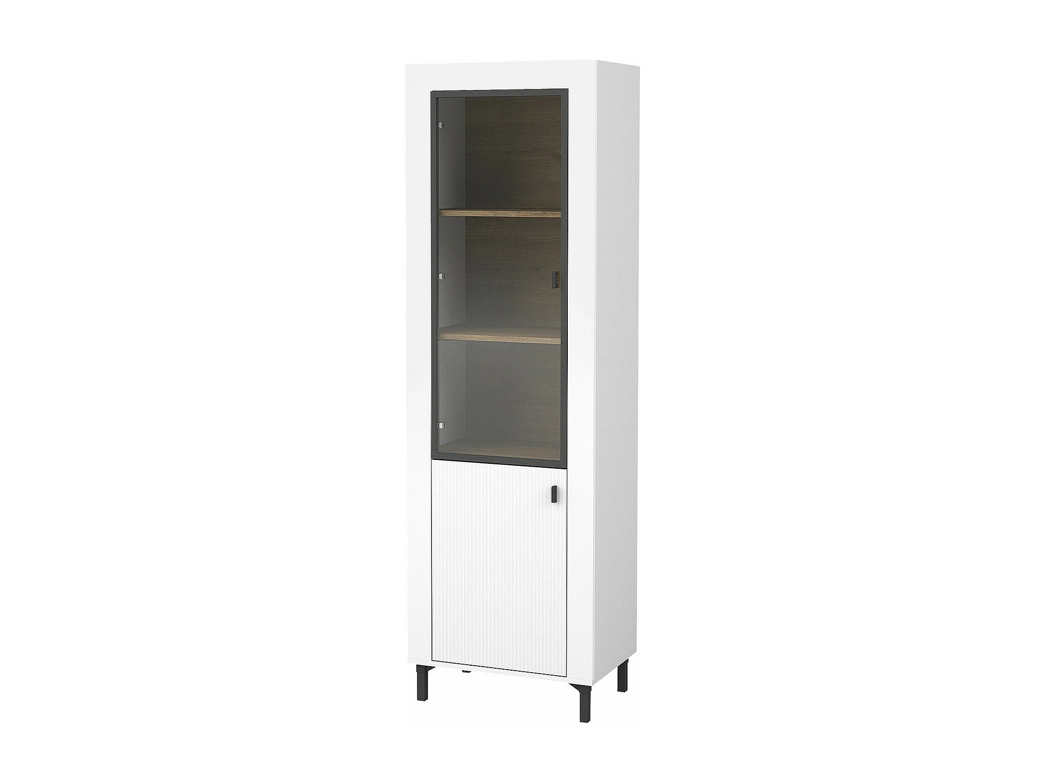 Étagère Mormavu 104, Avec des portes|Fermé, Verre|Stratifié, 194x60x40cm, Chêne|Mat blanc