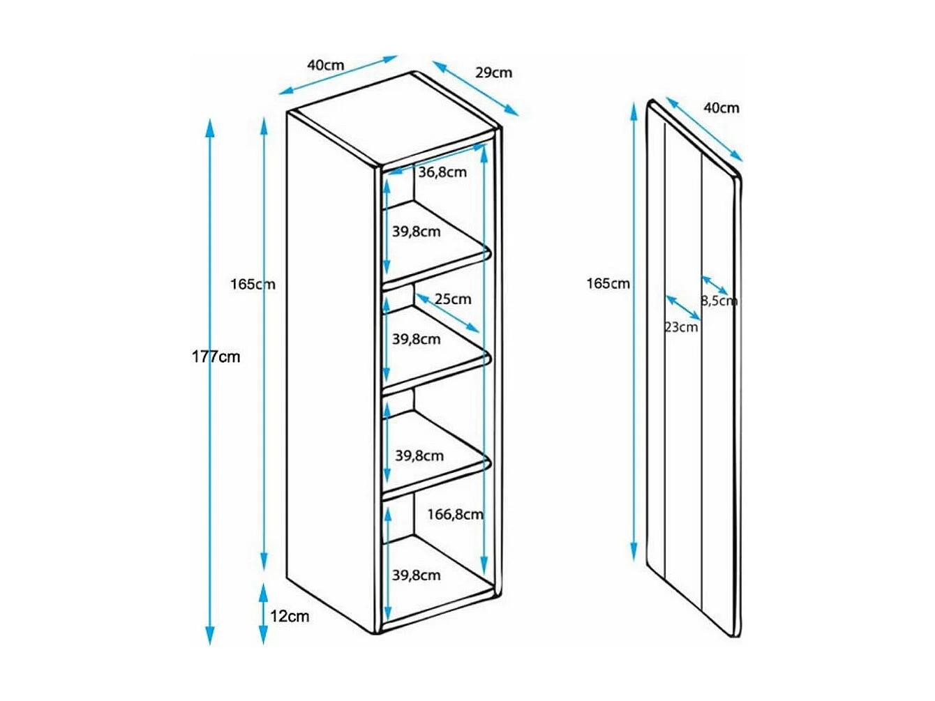Vitrine pour Salon Salle à manger en Noir et Blanc avec LED 40x29x177cm Luke V5