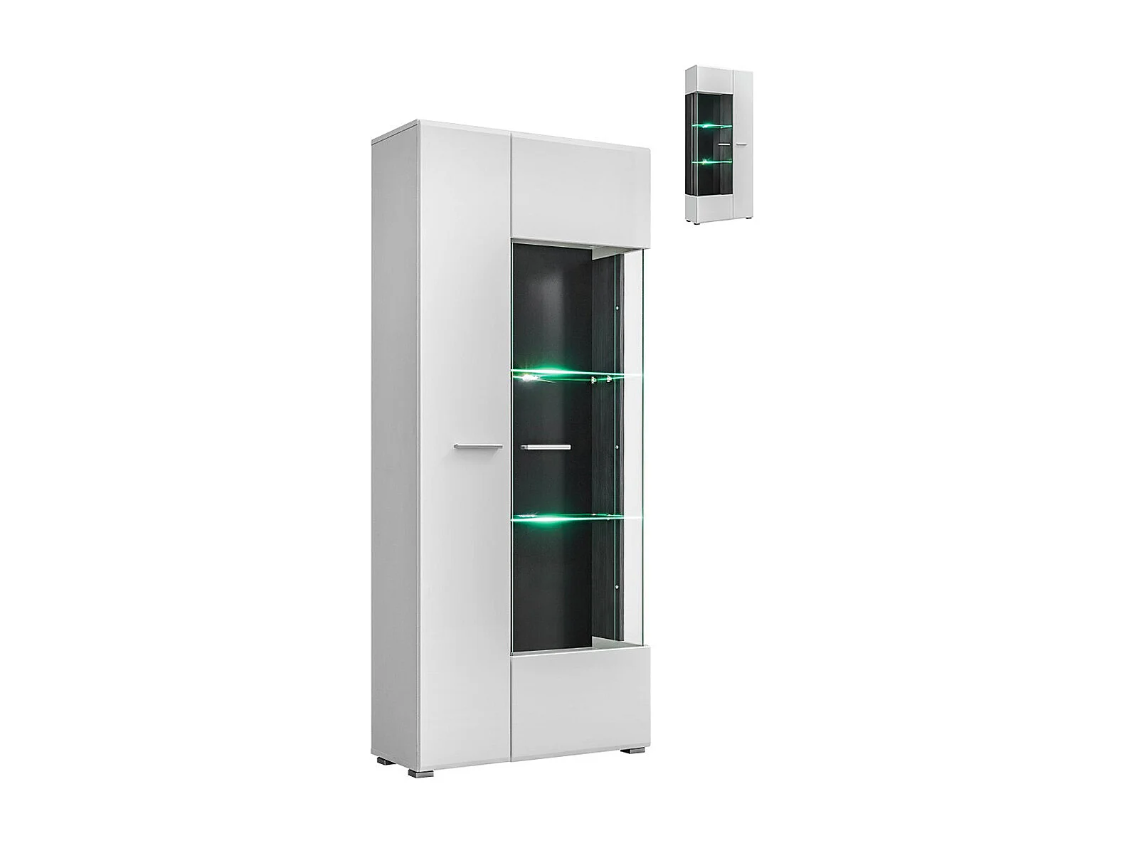VITRINE REVERSIBLE WARNER BLANC LAQUE ET BOIS NOIR AVEC LED 80 X 190 CM