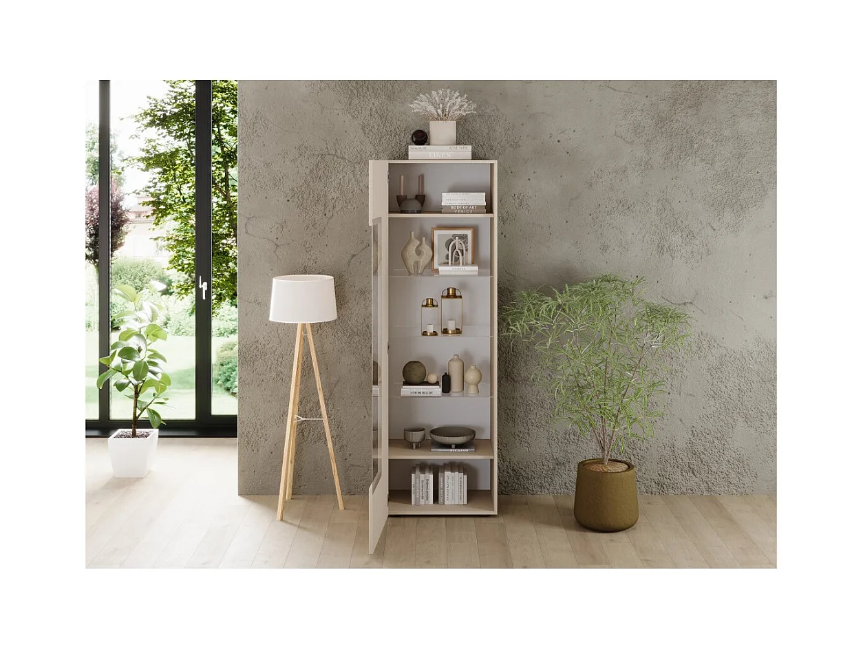 Vitrine SCENA – L60 x H187 x P42 cm – 1 porte – Coloris Cachemire