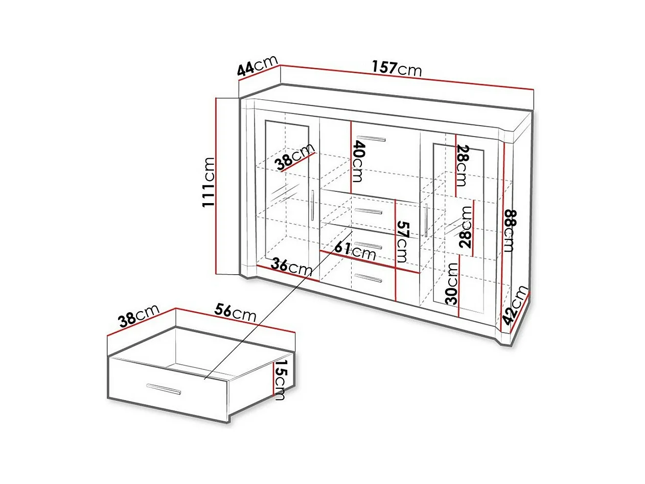 Commode Lorelie 106, Sonoma chêne, Avec tiroirs et portes, Nombre de tiroirs: 3, 111x44cm