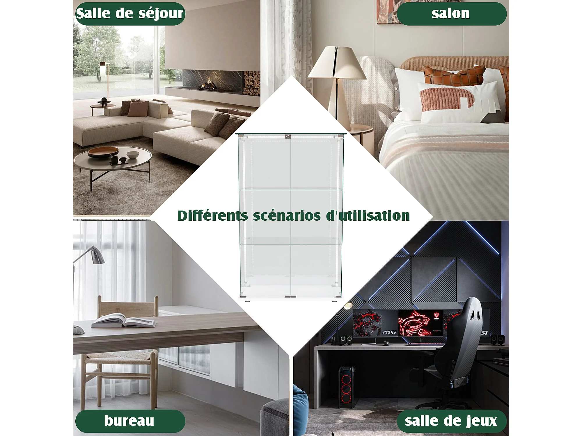 Vitrine sur pied en verre - Vitrine sur pied avec LED - 3 couches - 2 portes et serrure - blanc