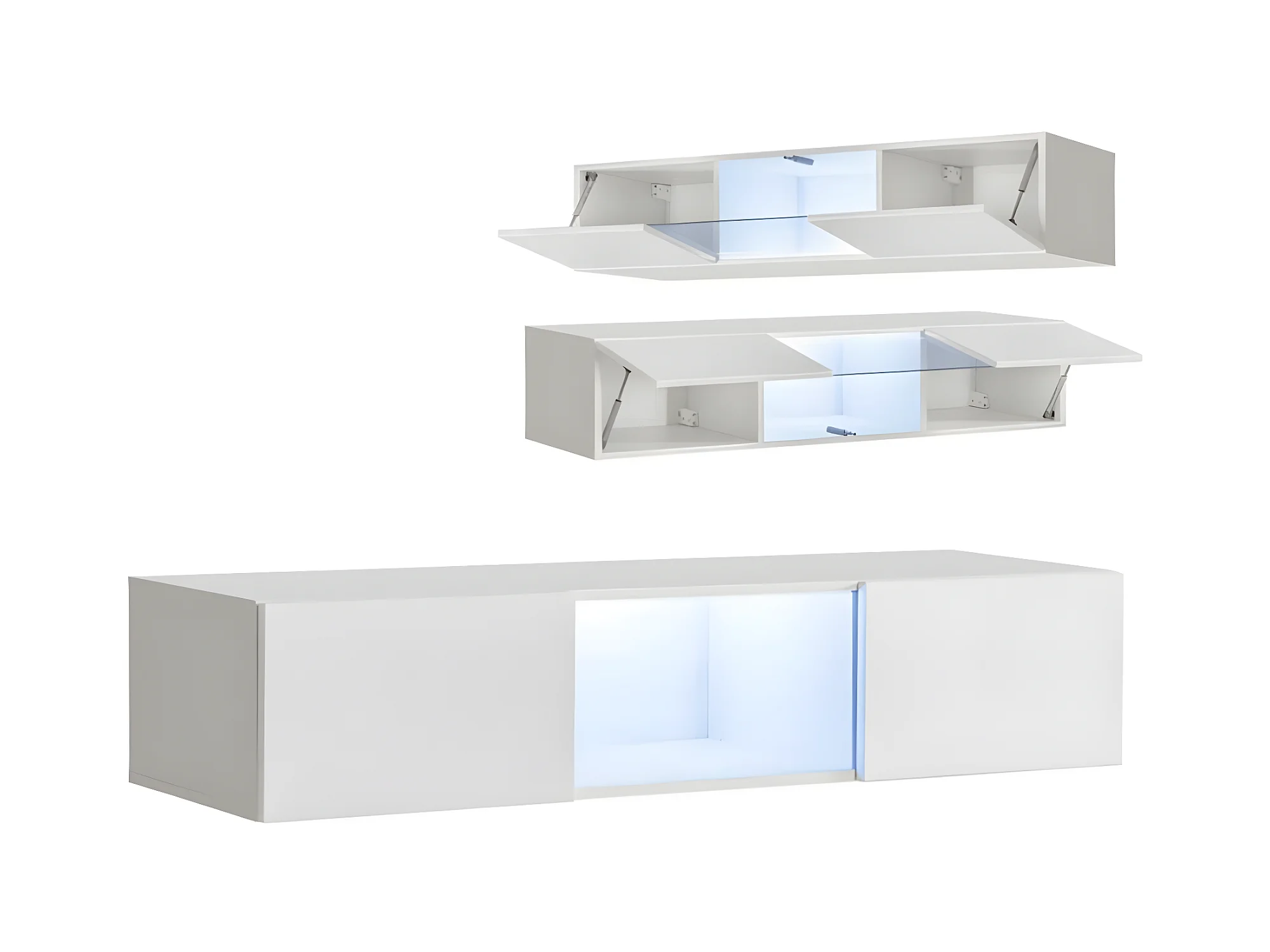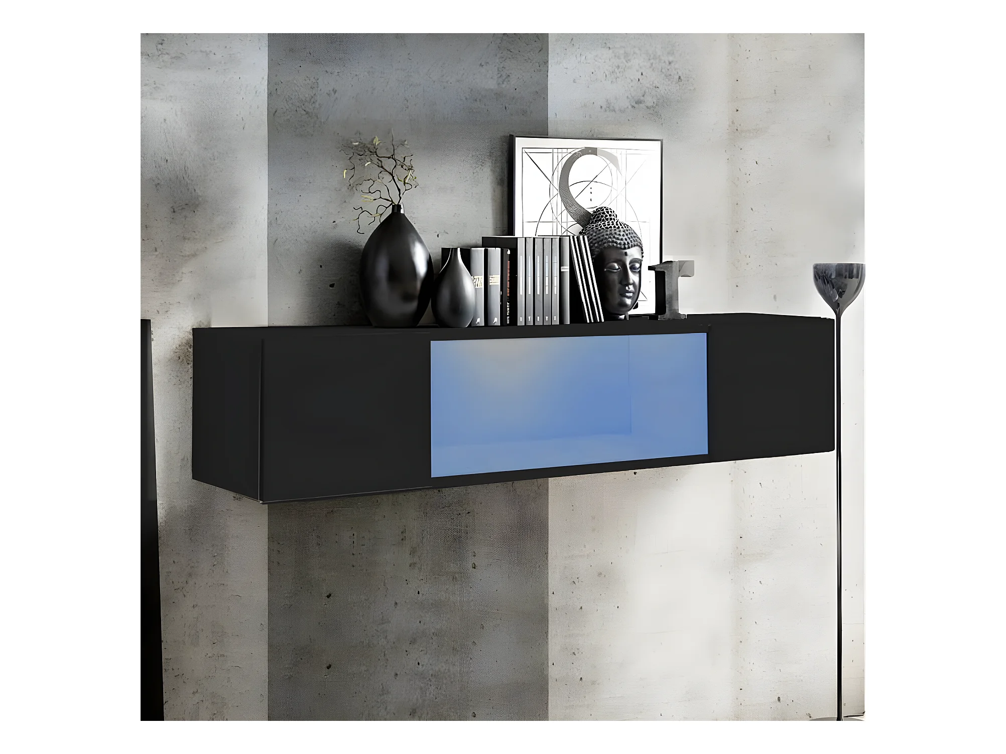 Vitrine suspendue pour Salon Salle à manger en Noir avec LED 160x29x30cm Krista H160CC