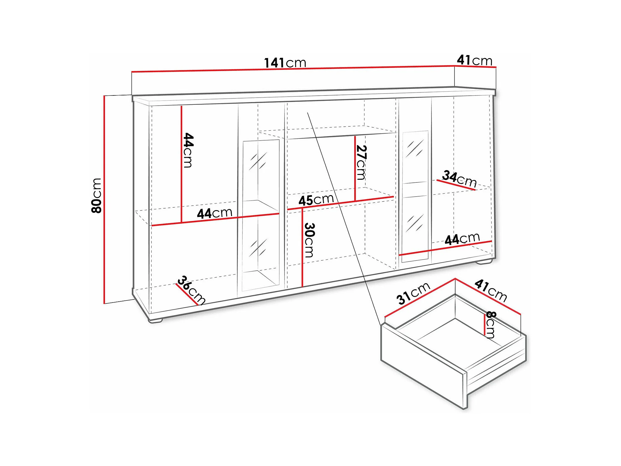 Commode Tucson 114, Sonoma chêne, Tiroirs et portes, Nombre de tiroirs: 1, 80x141x41cm